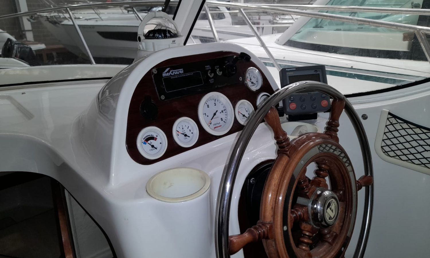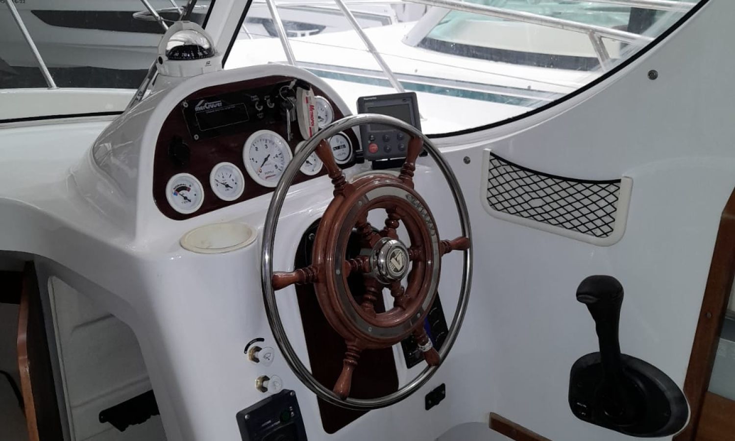 Electric windlass - Transom shower - Bow Thruster - Marine toilet - Gps/Plotter - Deep fish finder - Vhf - Autopilot - Audio equipment - Offshore power 220 v. - Battery charger - Rod holders - Swim platform.Boat description