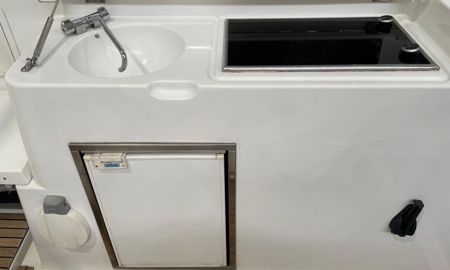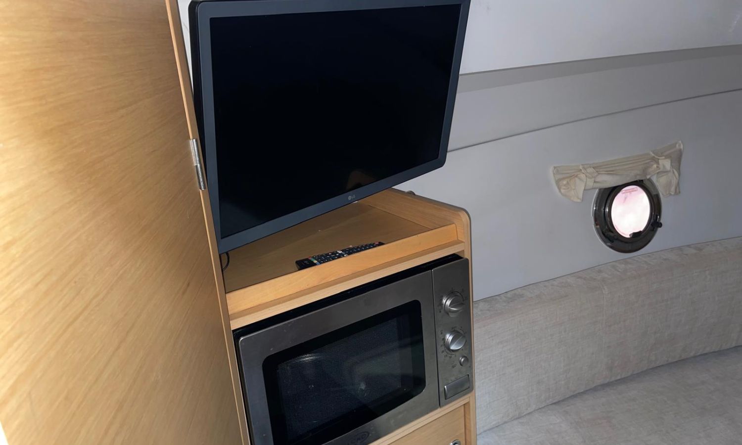 Bimini top - Bathing platform with ladder - Shower - Table in the bathtub - Fridge - Electric plate - Microwawe - Satellite Tv - Teak - Audio equipment - Gps/Plotter/Deep finder - Compas - Electric windlass - Bow cushions - Bow thruster - Electric Wc - Antifouling.Boat description