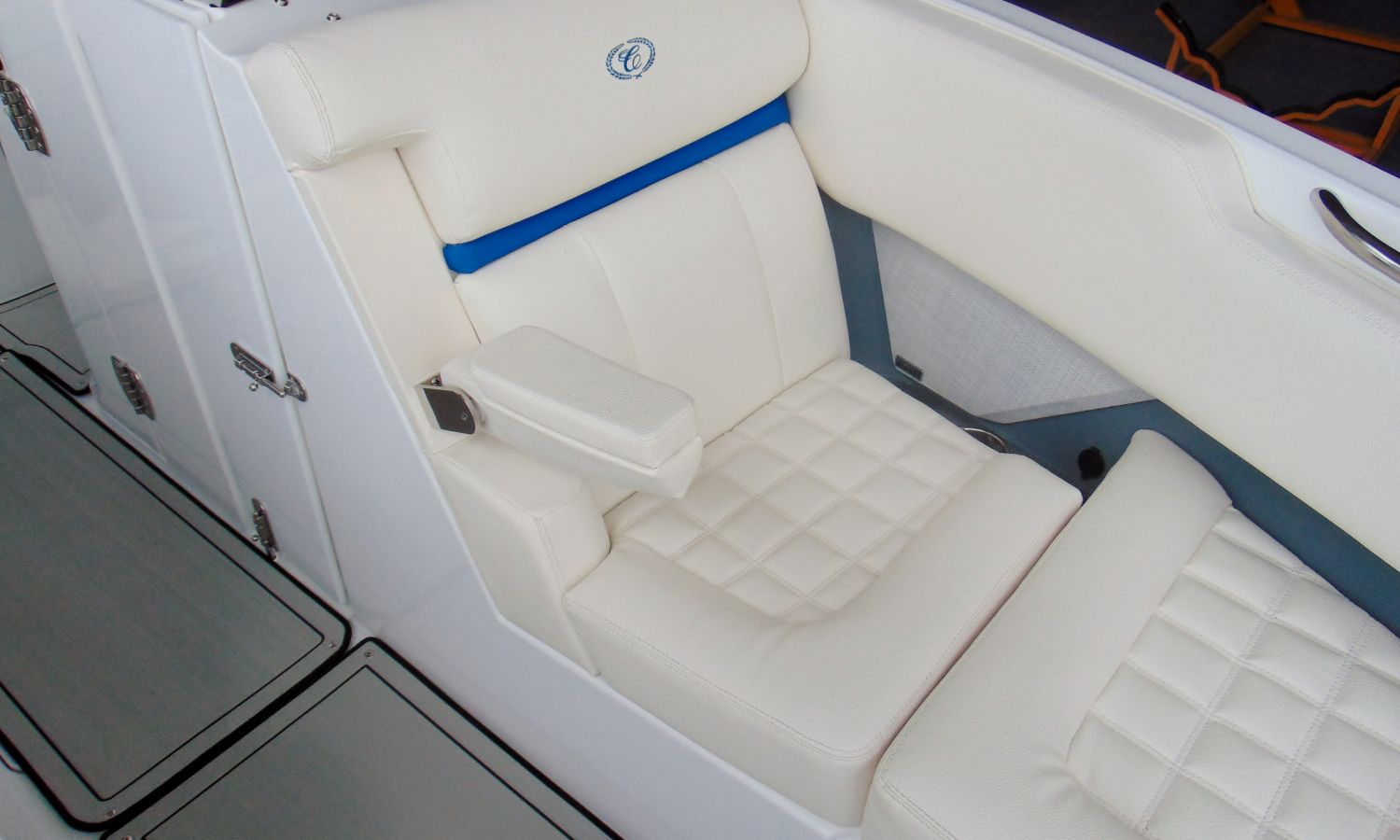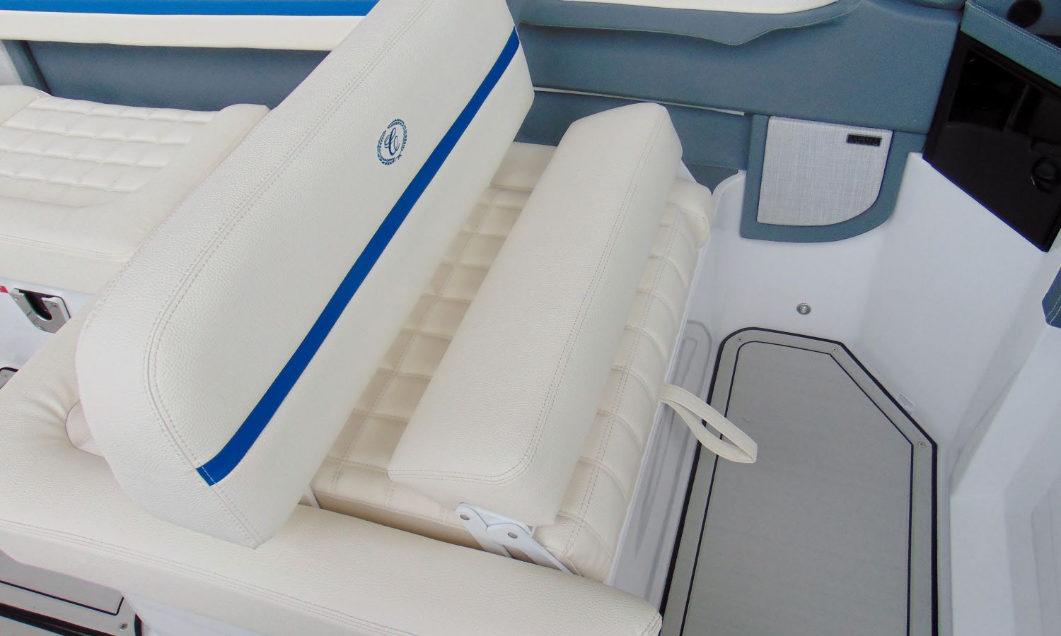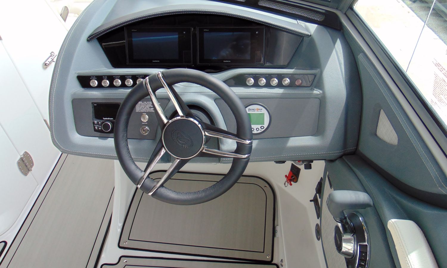 PACIFIC BLUE HULL WITH WHITE LINE (EDGE STRIPE) - BOW ANCHOR CANVAS AND COCKPIT COVER PACIFIC BLUE - TAIL POSITION INDICATOR - STAINLESS STEEL BOW LIGHTS - ENGINE ROOM HOOD WITH ELECTRIC OPENING - BATHROOM HATCH - TRITON WAKEBOARD SUPPORTS - SWIMMING PLATFORM SHOWER - BOW CUSHION CENTRAL SUPPLEMENT - COCKPIT TABLE - INTERIOR LED COCKPIT LIGHTS - TOILET SINK - GRAY SYNTHETIC MATERIAL ON COCKPIT FLOOR - STERN SOLARIUM EXTENSION - BATTERY CHARGER - AUTOMATIC EXTINGUISHING SYSTEM - ELECTRIC WINDLASS WITH ANCHOR AND CHAIN - DUAL BATTERY DISCONNECT - SHIPYARD-COSTA-BRAVA TRANSPORT.