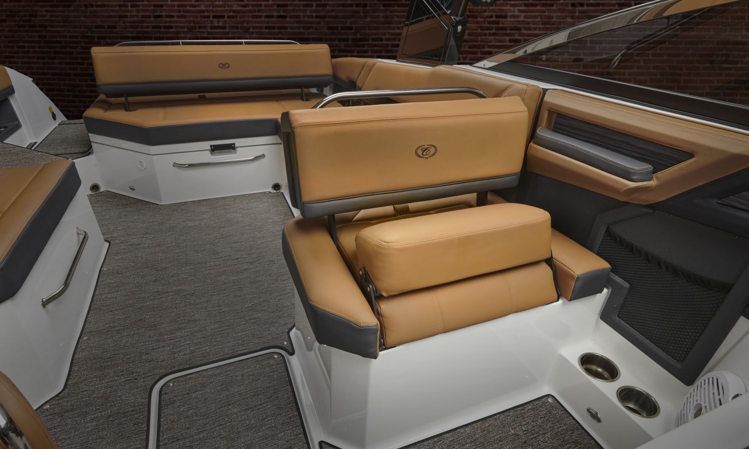The R8 represents the next generation of R Series boats from Cobalt. At 27’10”, what really makes the R8 stand out on the water is the added size. We didn’t just make it longer…we totally rethought and redesigned every aspect of the R8 resulting in a higher profile and more freeboard, a roomy, expansive interior, with both bow and cockpit larger fore to aft, providing extra comfort for passengers and plenty of room for their things.
