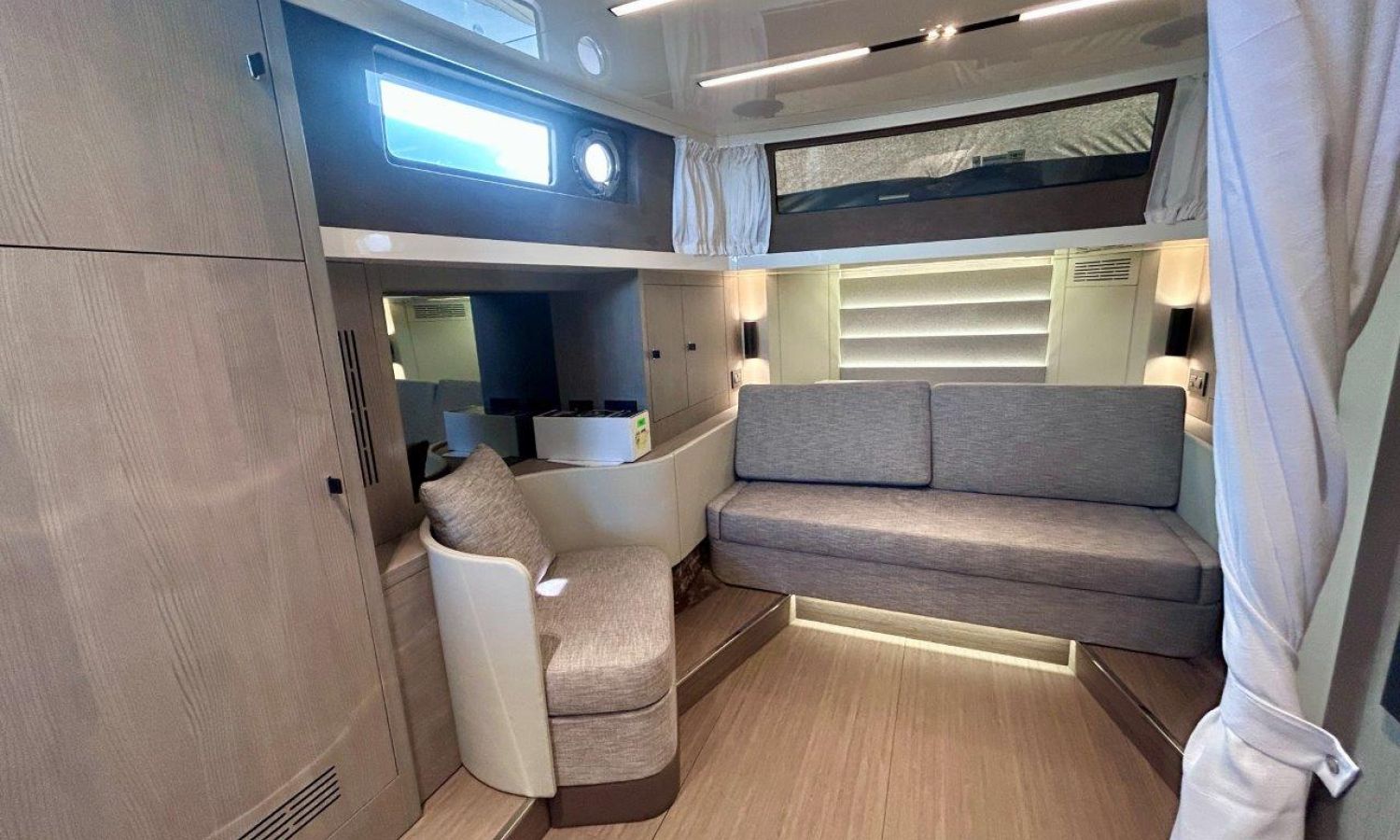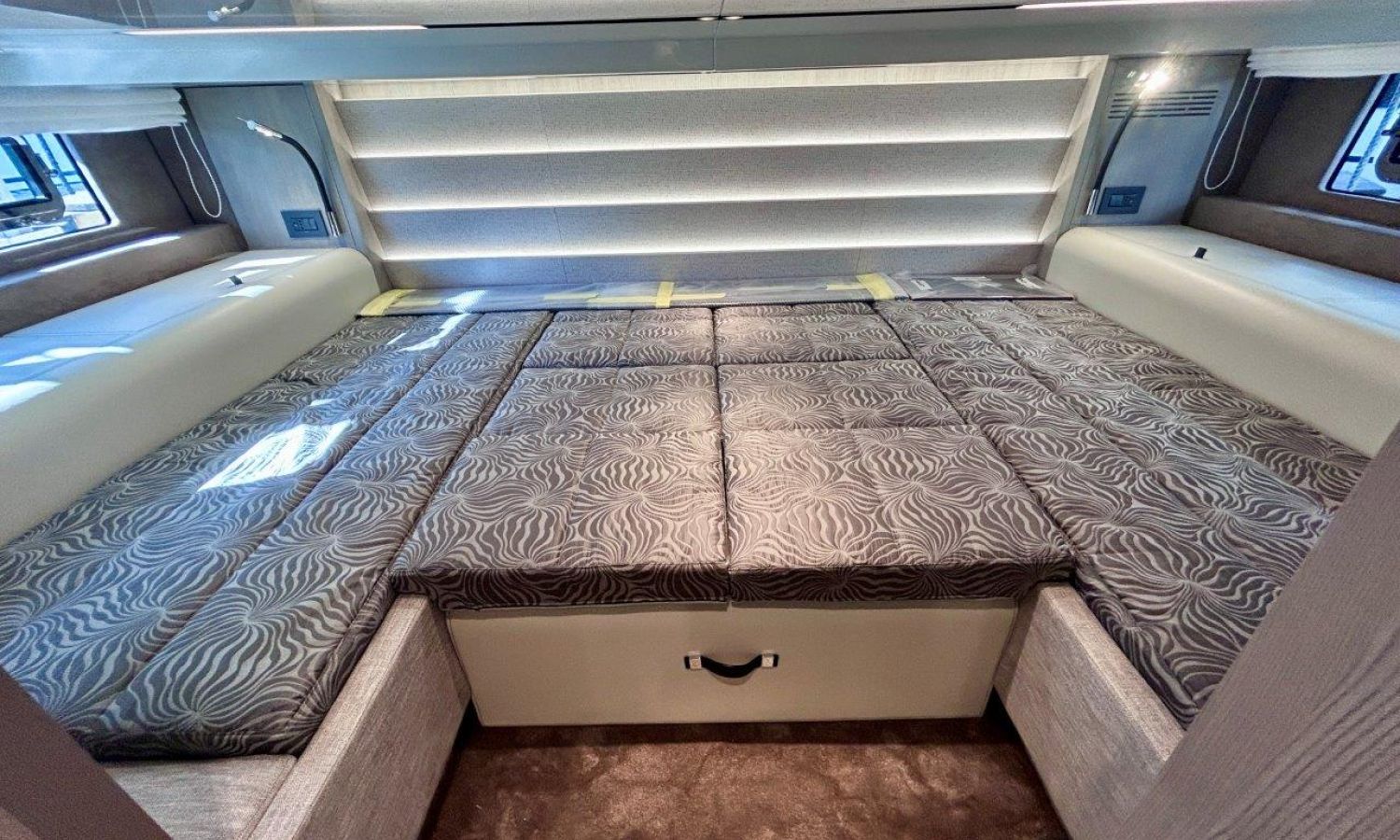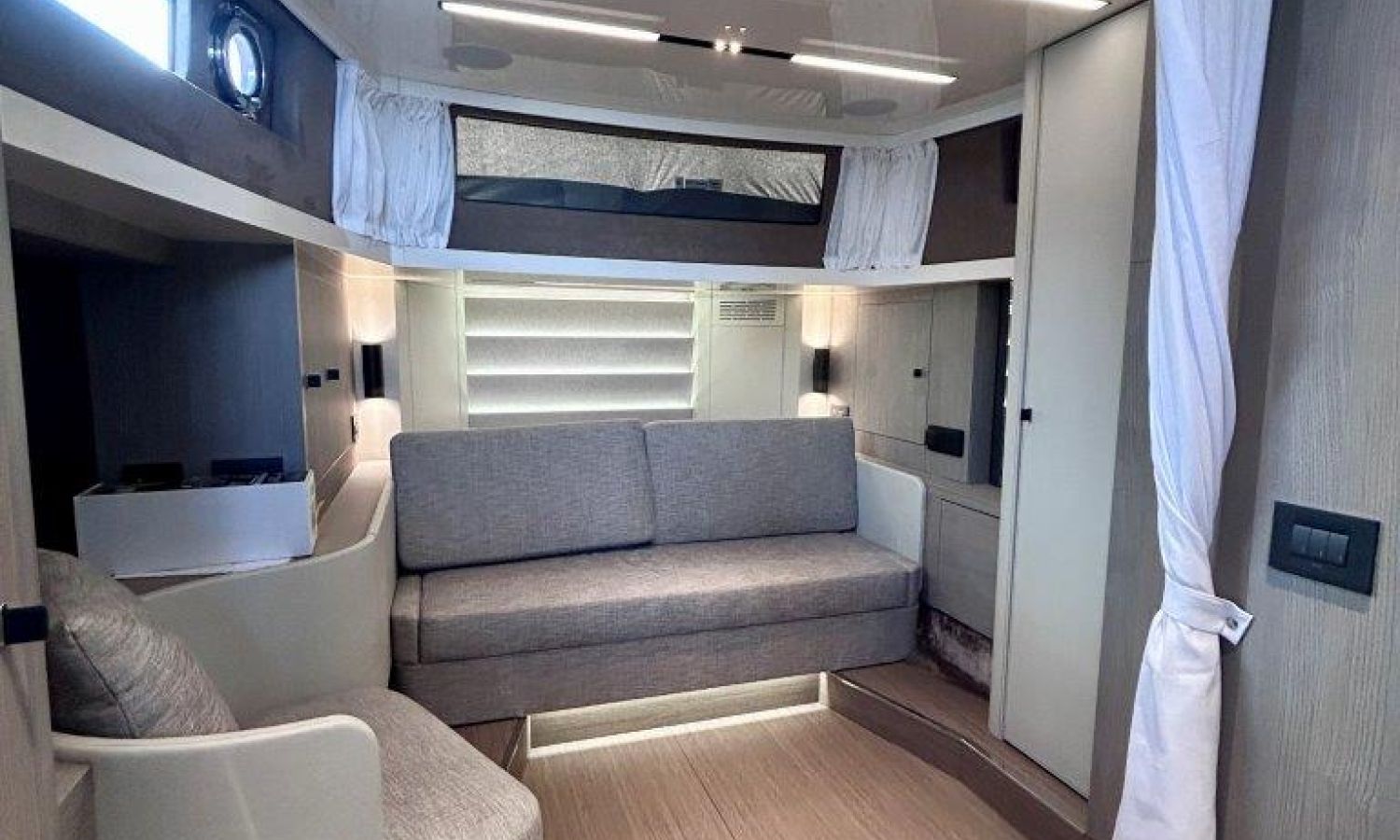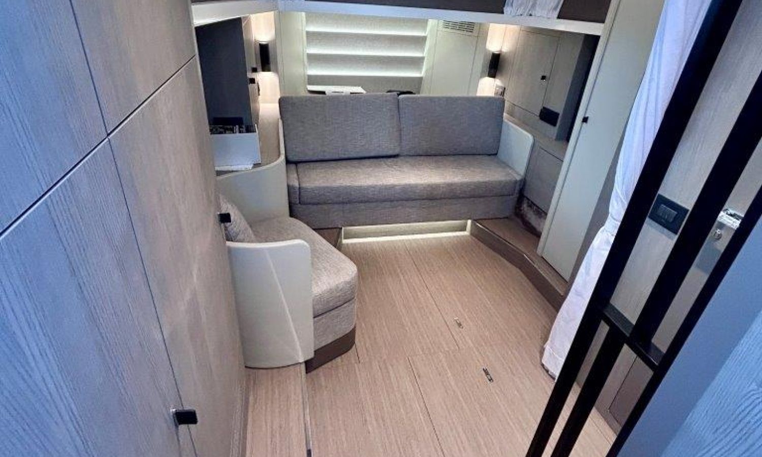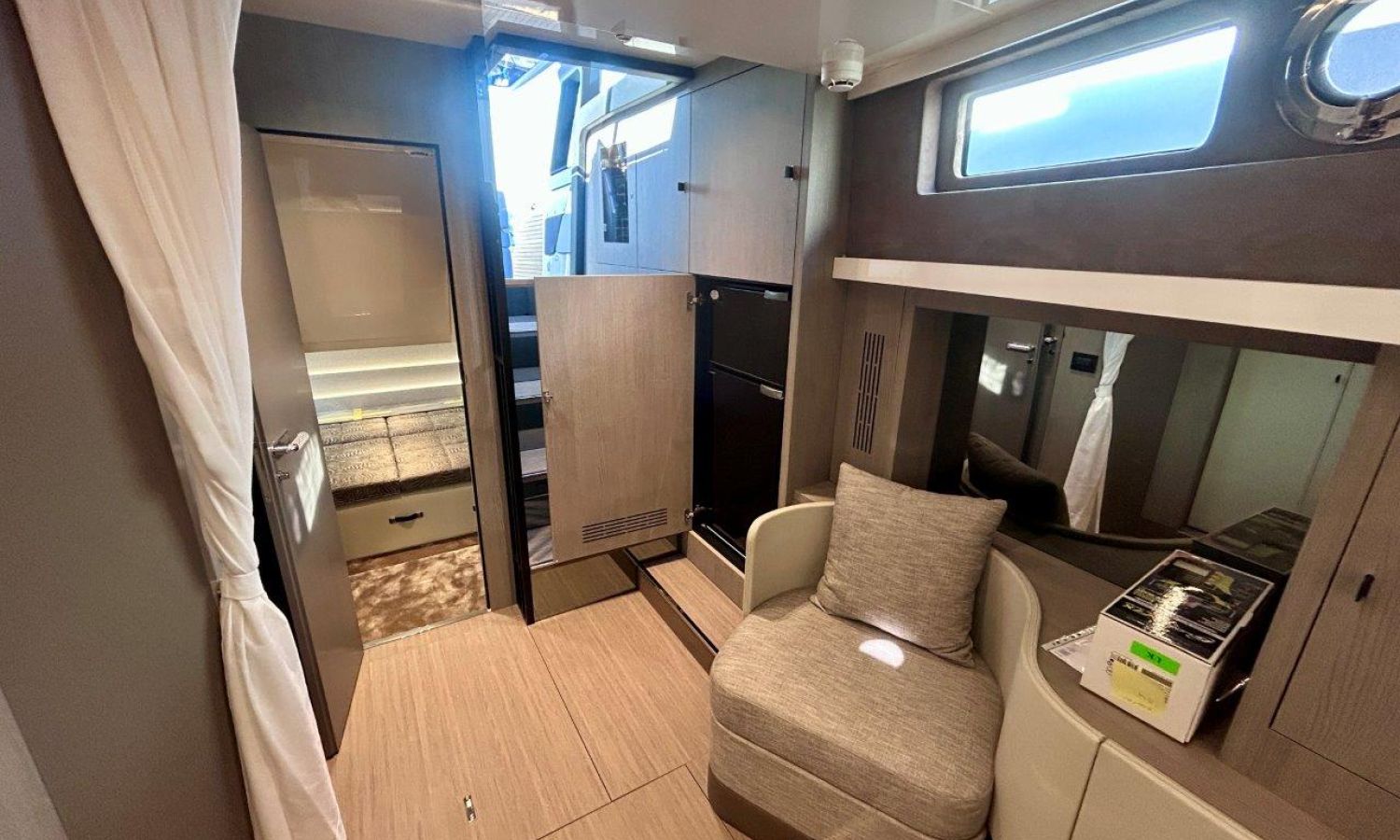 Bilge micro-suction system - Waste water tank - Air conditioning 16.000 BTU in cabins with heat pump - Set covers (for dashboard, pilot seat, stern sofa, cockpit table, cockpit wetbar and stern sun cushion) - Automatic List Control + Coordinated Turn Control - Bow thruster - Cockpit refrigerator - Generator 8 kW - Electric cockpit grill - Ice-maker - Aft lowering bulkwarks right and left - Black microperforated privacy screen with white logo A 46 Luxury Tender - Hydraulic gangway - Autopilot - Up/down hydraulic stern platform - 2 Plotter screens 16" - Teak laid cockpit and teak on aft lowering bulkwarks - Solid teak coverings on lateral stringers - Electric sunshade - T-Top - VHF - CE Certificate - Fender covers (alternative colour to standard one) - Exterior upholstery (alternative colour to standard one) - T-Top lacquered - Preparation, launch and delivery with sea trial - Transport shipyard to Costa Brava.Boat description