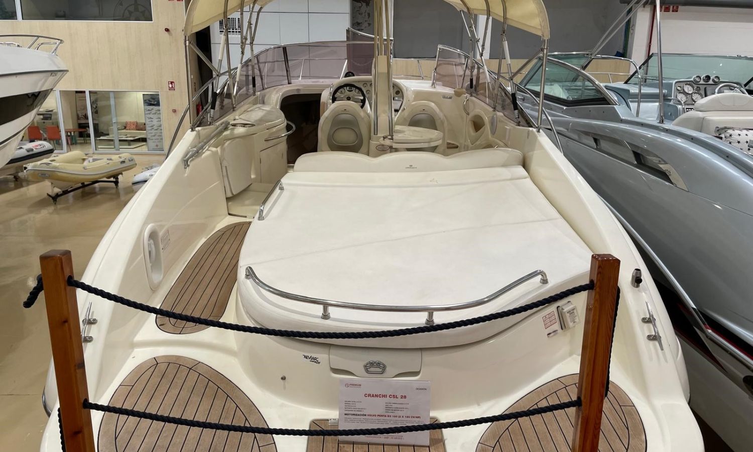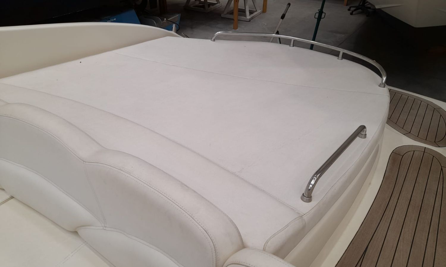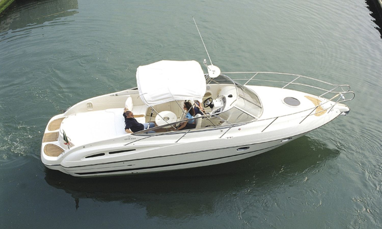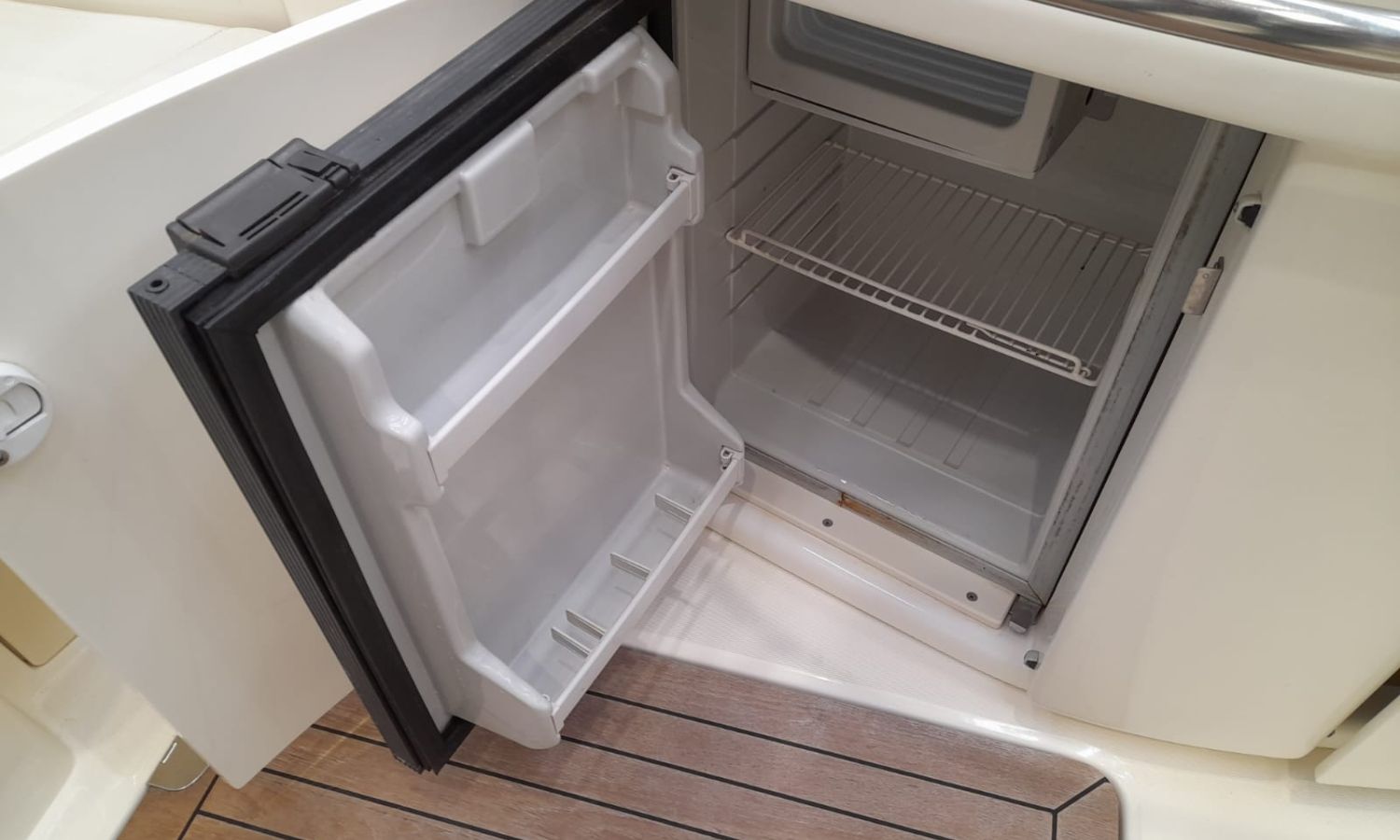 Bimini top - Stern shower - Stern platform with bathing ladder - Stern sundeck with hydraulic opening for access to the engine room - Gps/Plotter/Sondeur - VHF - Cockpit table - Offshore power 220 V. - Battery charger - Flaps - Wet-bar with sink - Cockpit refrigerator - Electric anchor winch with chain and anchor - Marine WC with waste water tank - Cabin - Cockpit cover - Antifouling.Boat description
