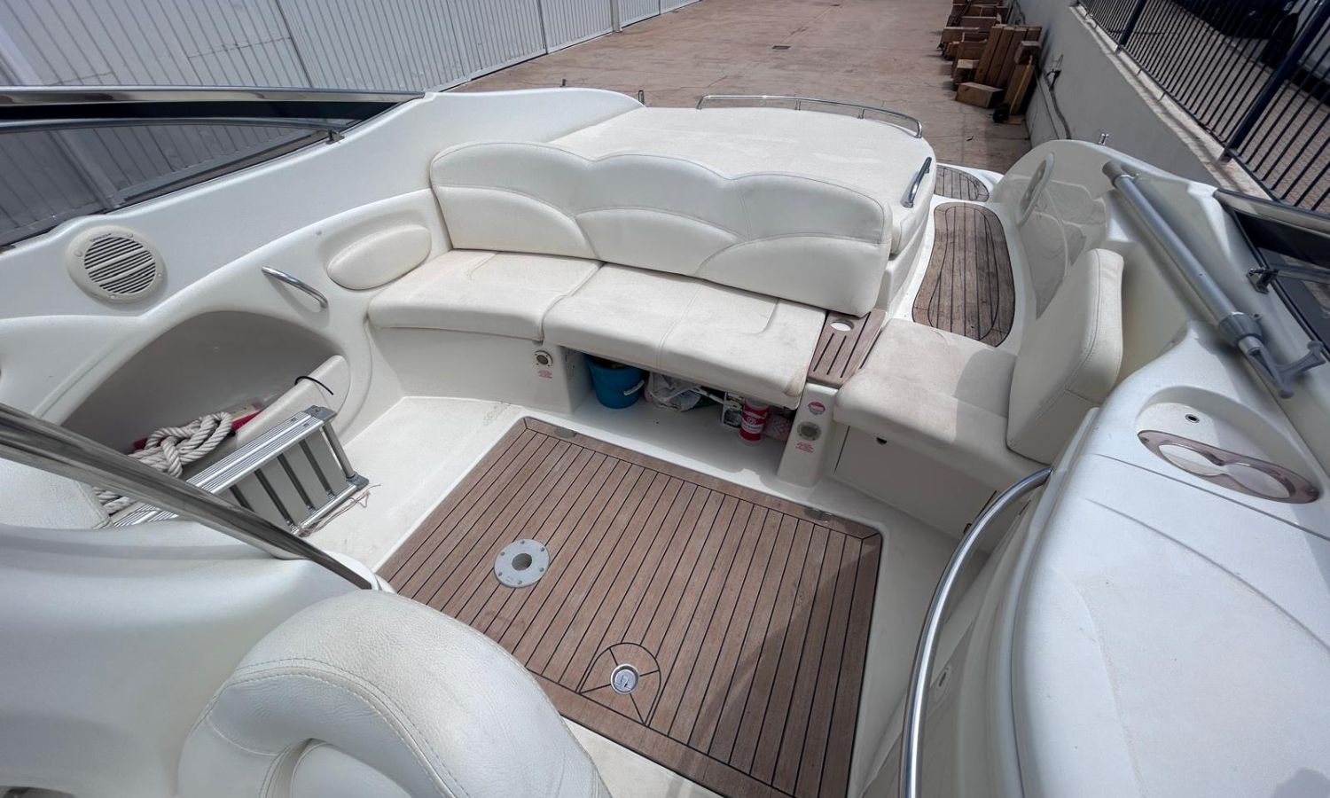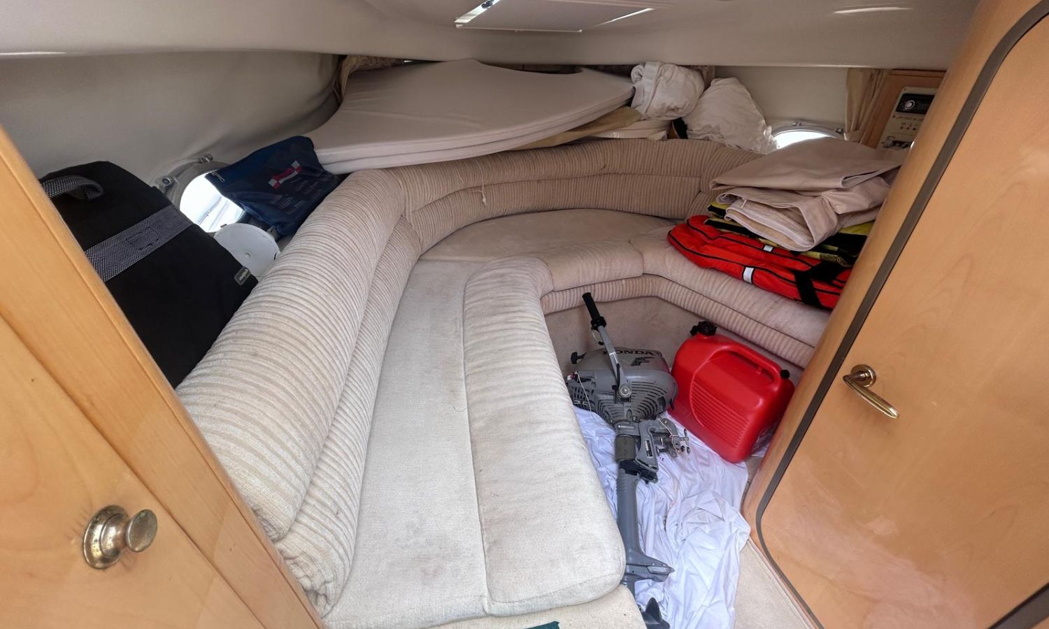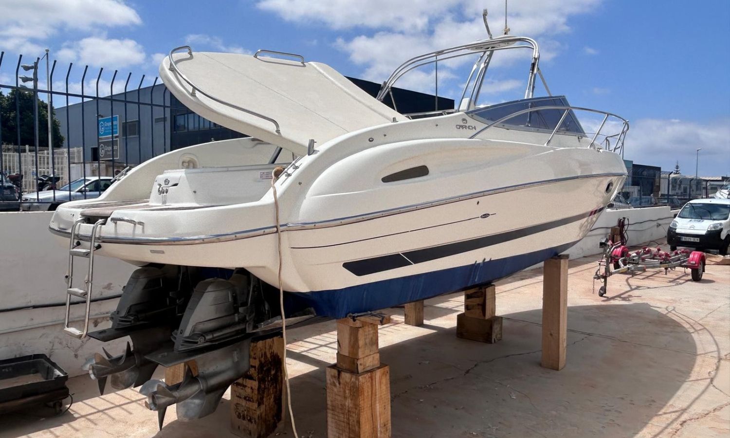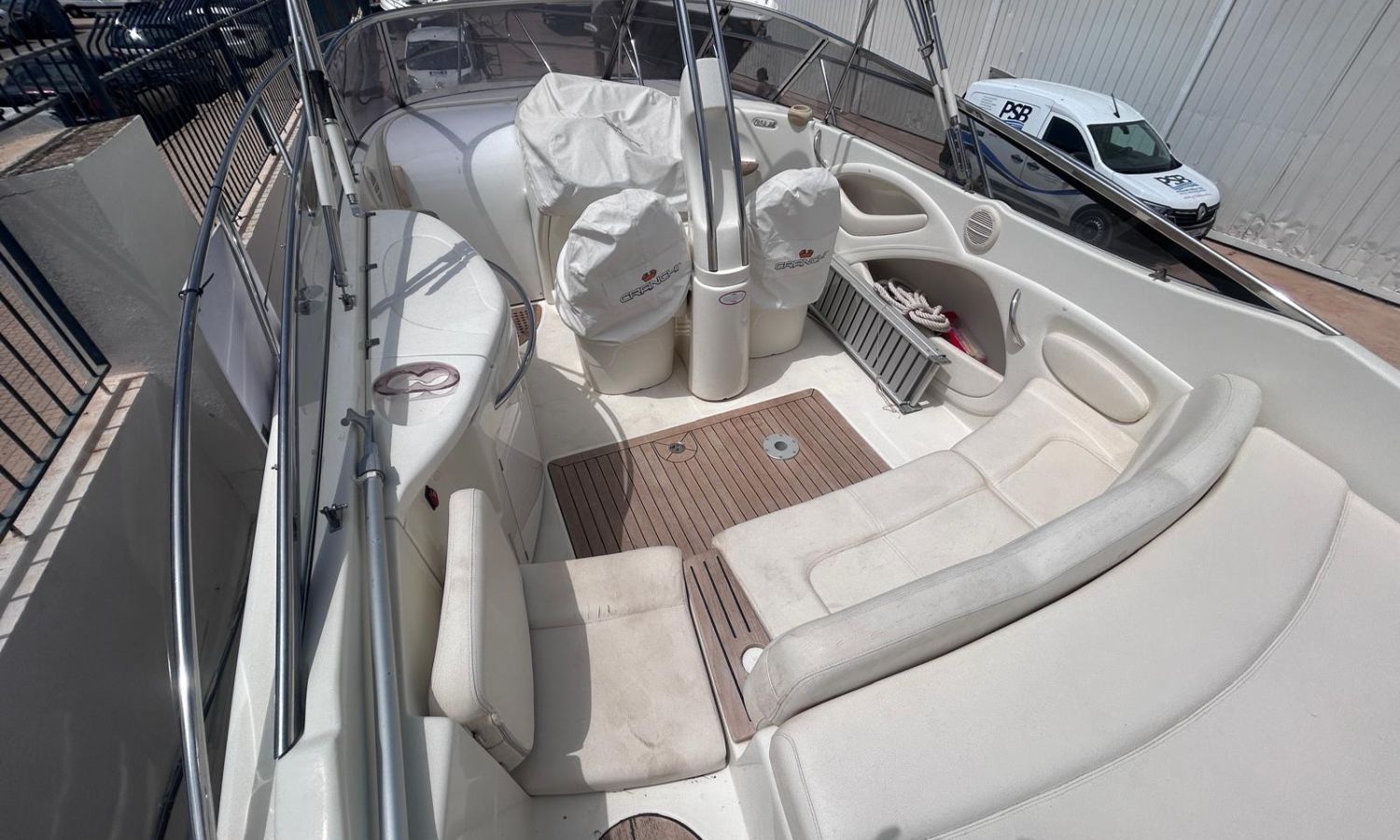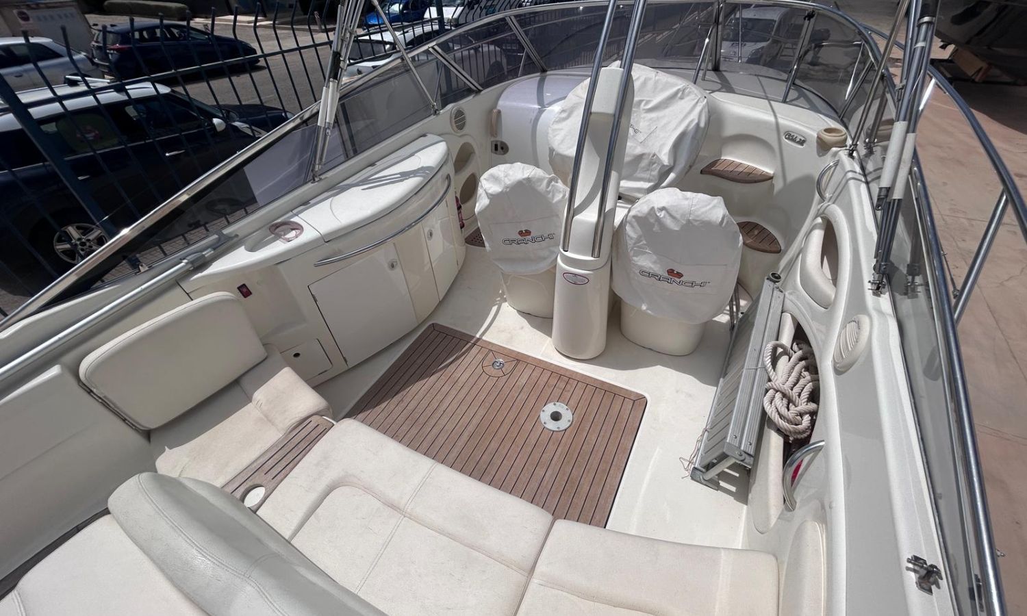 Sofa dining room lounge - Electric toilet - Audio equipment - Stern shower - Bow solarium - Port socket - Cockpit table - Electric anchor windlass - Teak on bathing platform - Bimini awning - Antifouling.