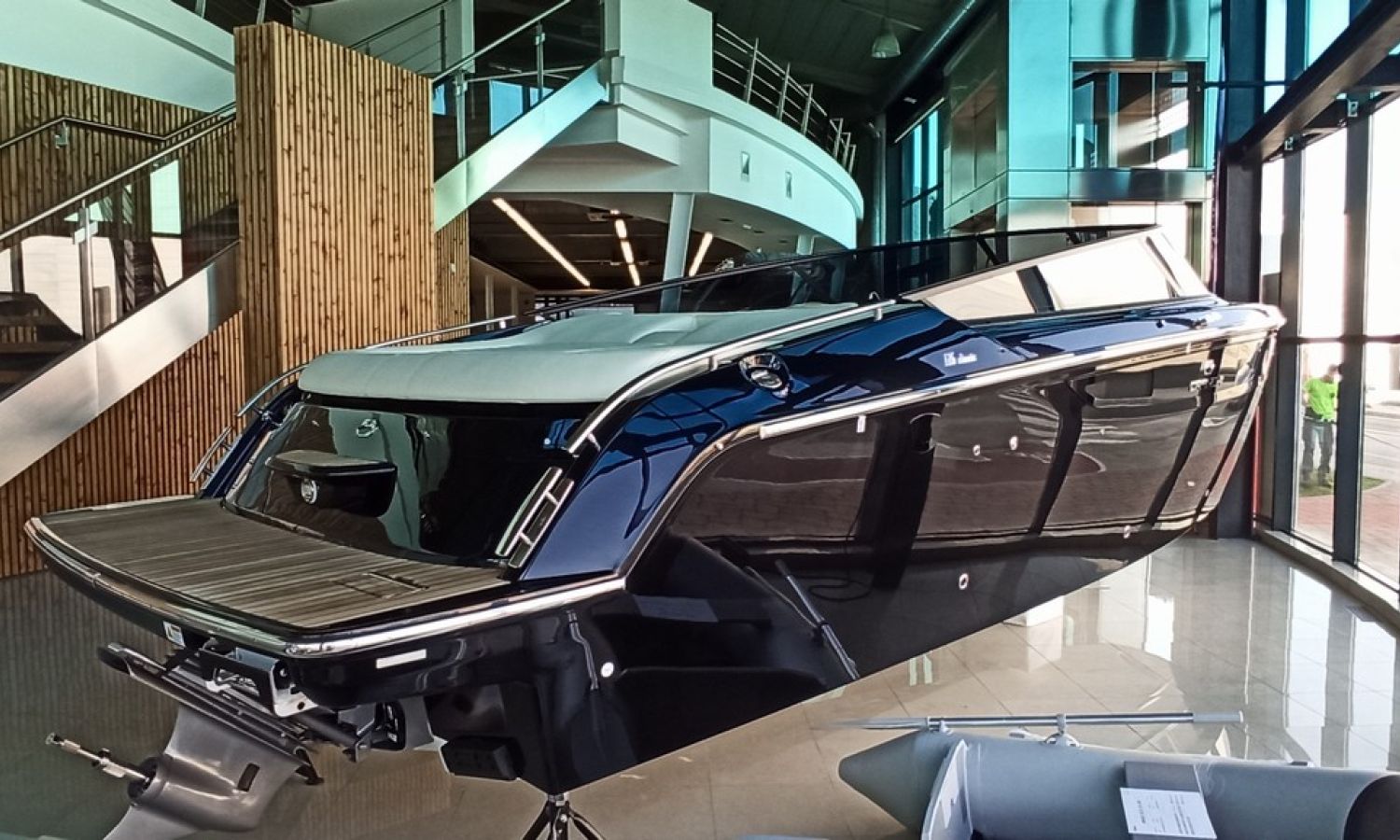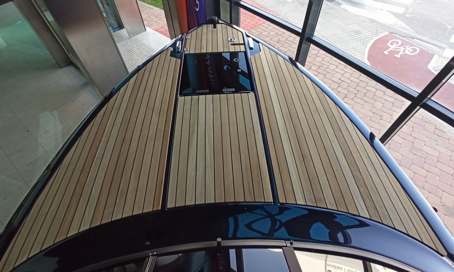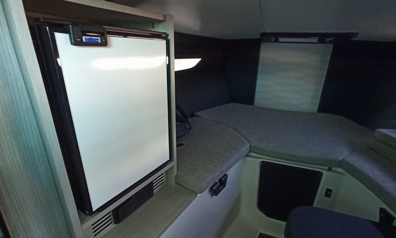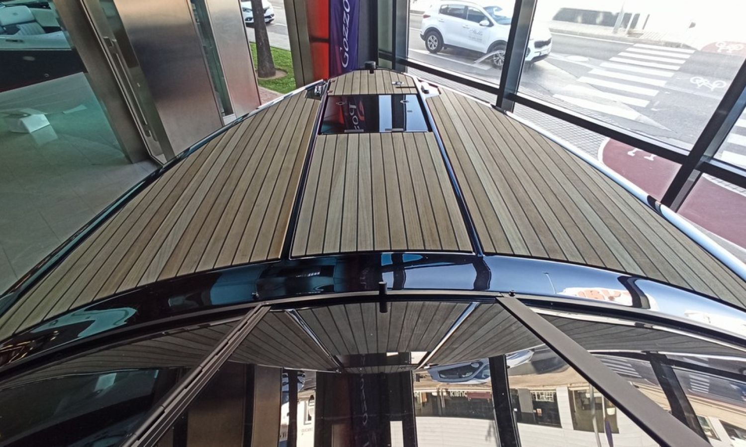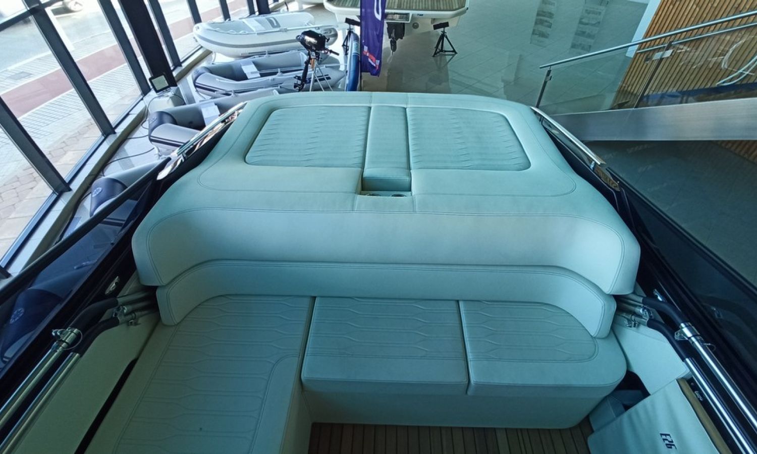 Waste water tank - Bimini top black microperforated - Bow thruster with automatic fire extinguisher - Cabin refrigerator 42 l - 230 V electric wiring system with battery charger and shore power with cable - 6 Fenders and covers - Radio Fusion Bluetooth/USB - Cockpit table with cover - Complete foredeck teak laid - Teak laid cockpit - Cockpit cover - Electric anchor winch with anchor and chain - Electric marine WC with cover - Fender covers alternative colour to standard one - Exterior upholstery Silvertex - Hull and deck colour lacquered - CE certificate and declaration of conformity - Transport shipyard to Costa Brava.Boat description