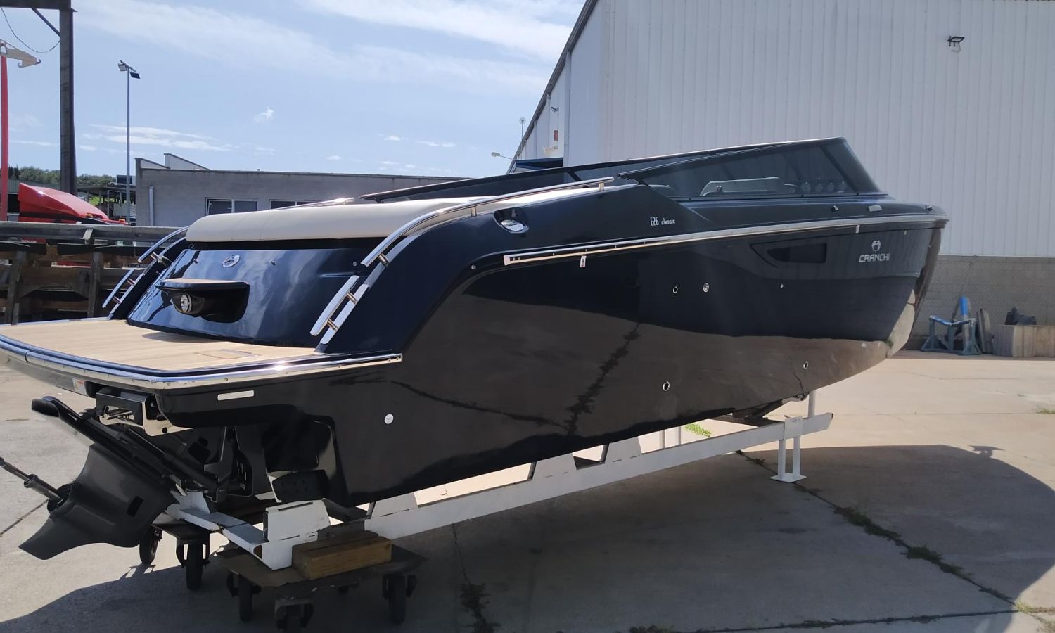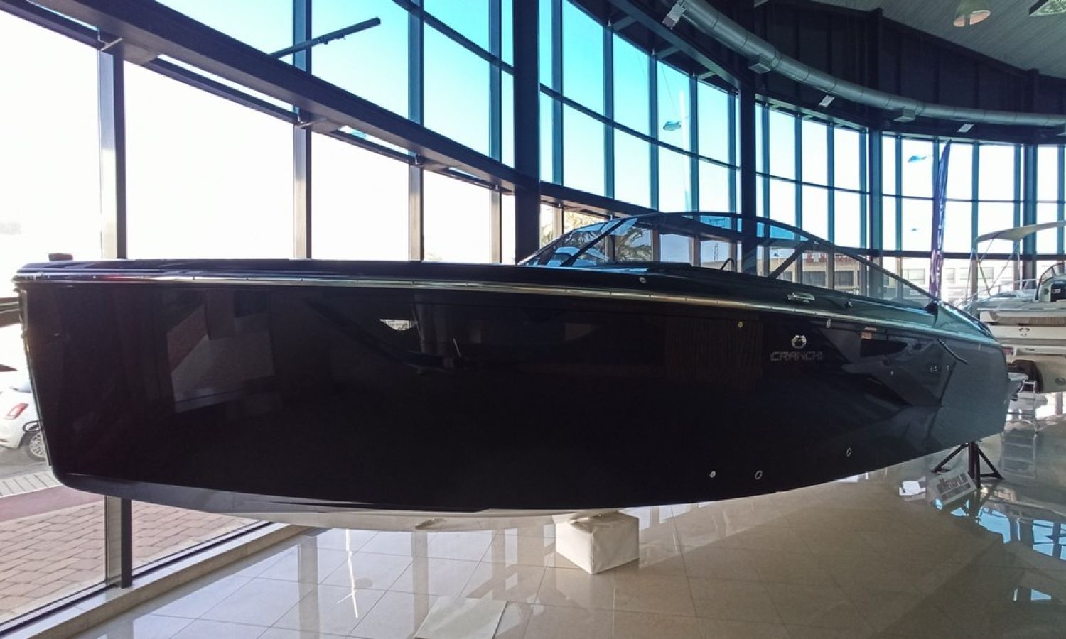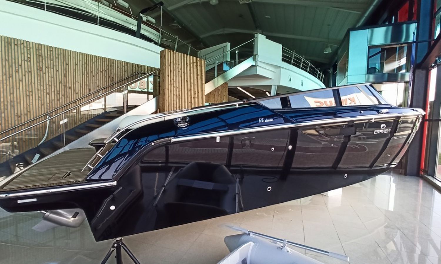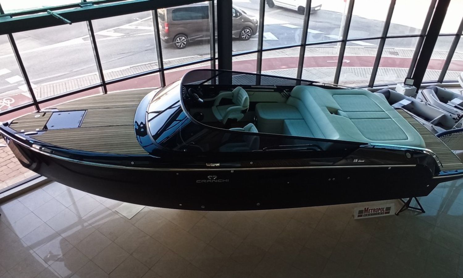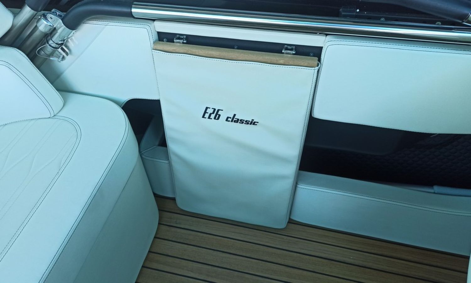 New boat in stock. Immediate delivery. Model E 26 Classic of the italian shipyard Cranchi of 7,85 meters in total length. Boat with comfortable bathing platform, spacious layout, with cabin and aft sundeck.PAL-Nº 7813Z