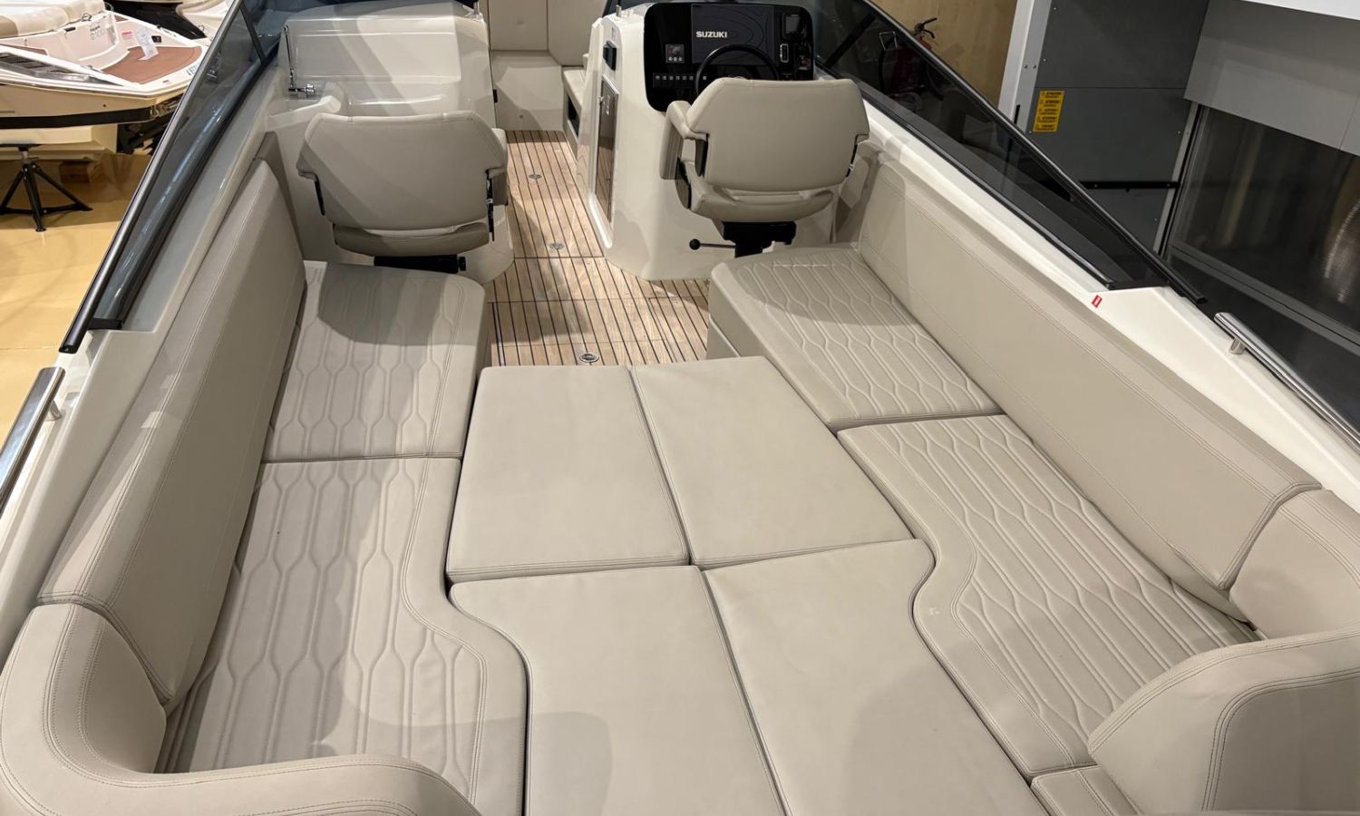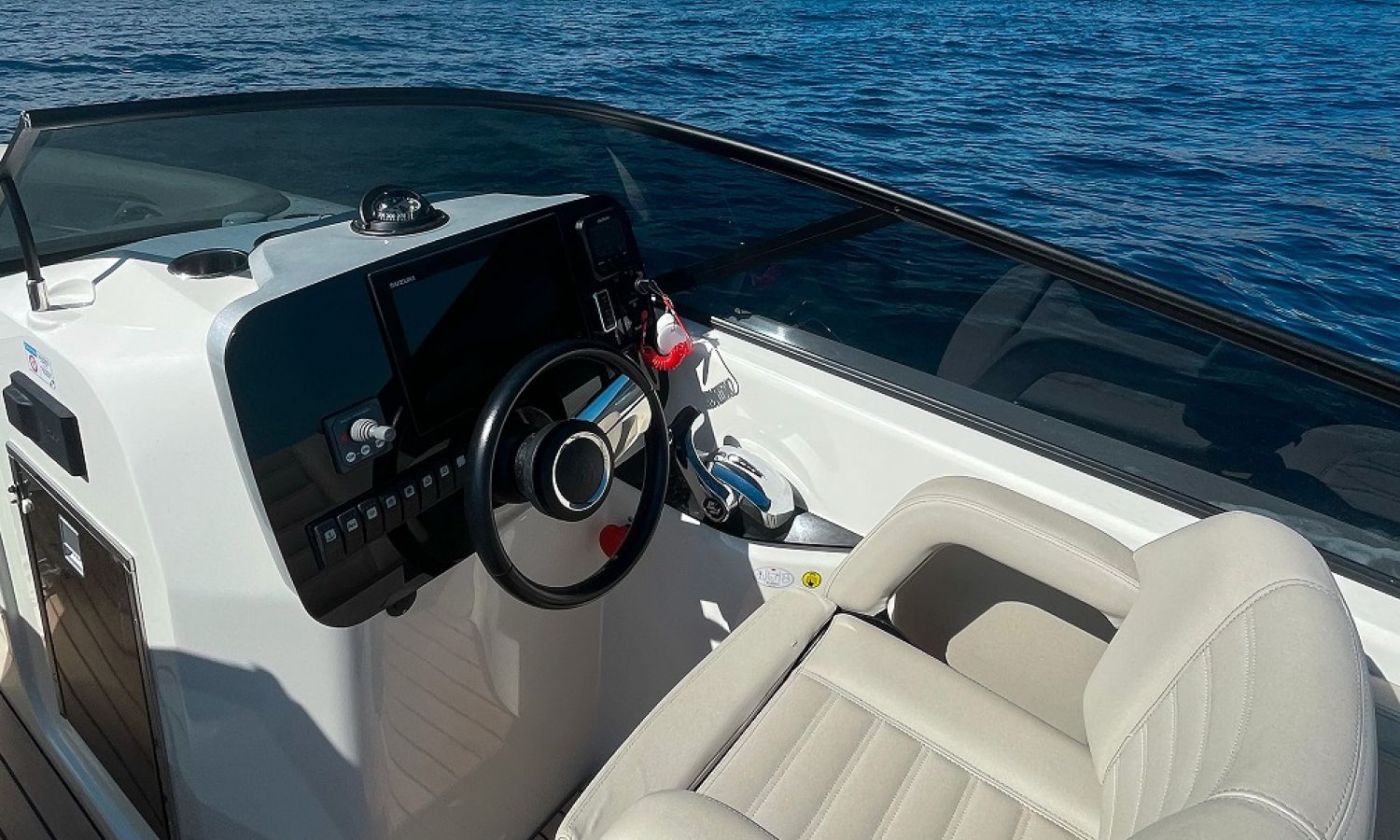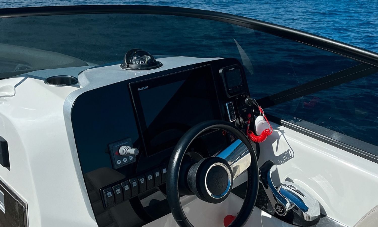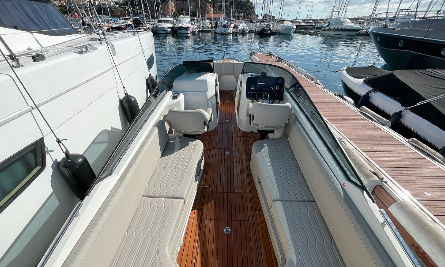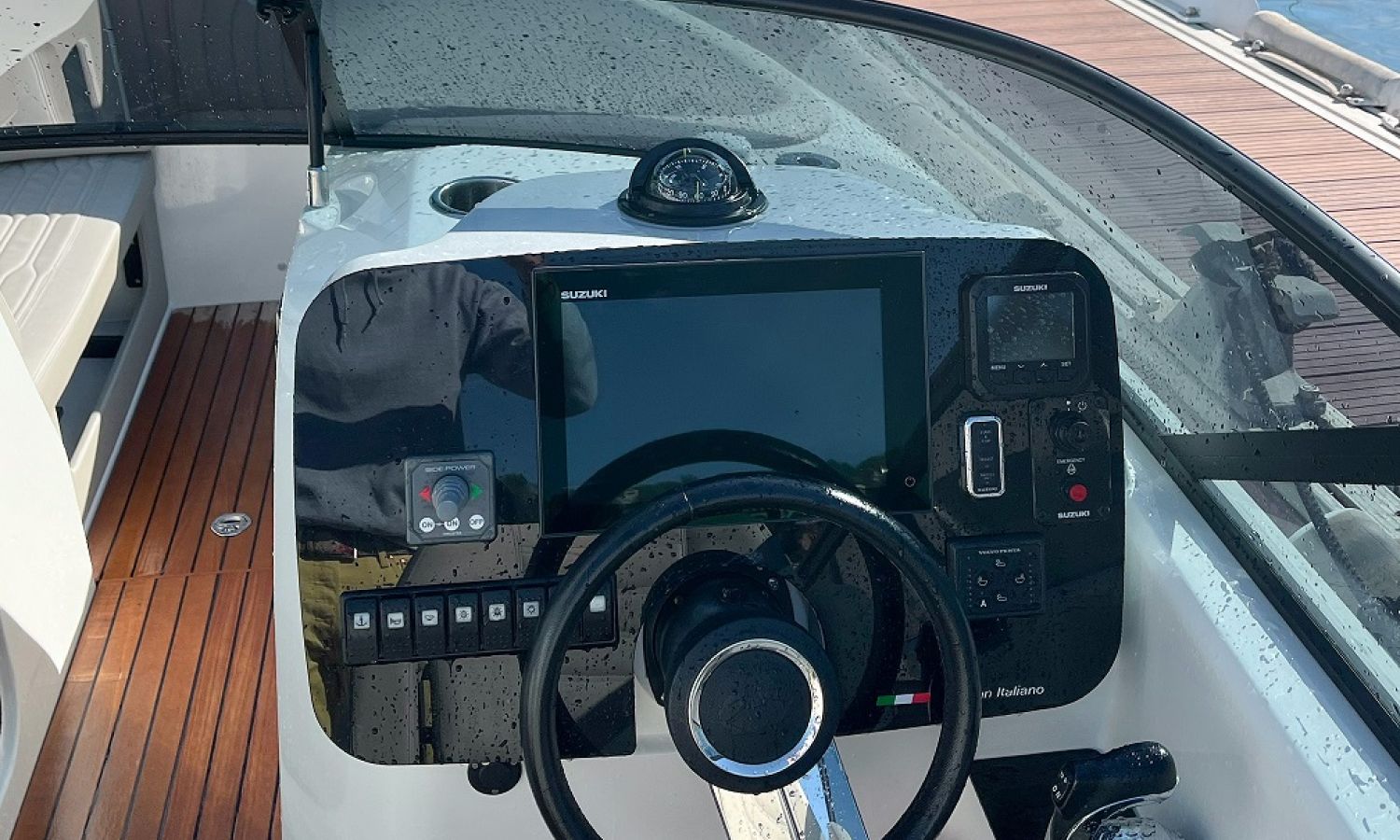Wakeboard arch - Pack audio fusion with four speakers two fusion two pionner in the arch - Display Suzuki system with info meteo - Gps - Plotter - Bow trhuster Side-Power Sleipner - Bimini top with cover - Bow cushions - Full aft cushions - Two pilot and copilot seats with 360 º rotation - Fridge Isotherm 42 l. 12v - Blue underwater lights - Electric windlass - Stainless steel anchor - New two battery - Anchoring system fenders Quickset - Canvas camper - Teak laid cockpit - Additional lights in cockpit.Boat description