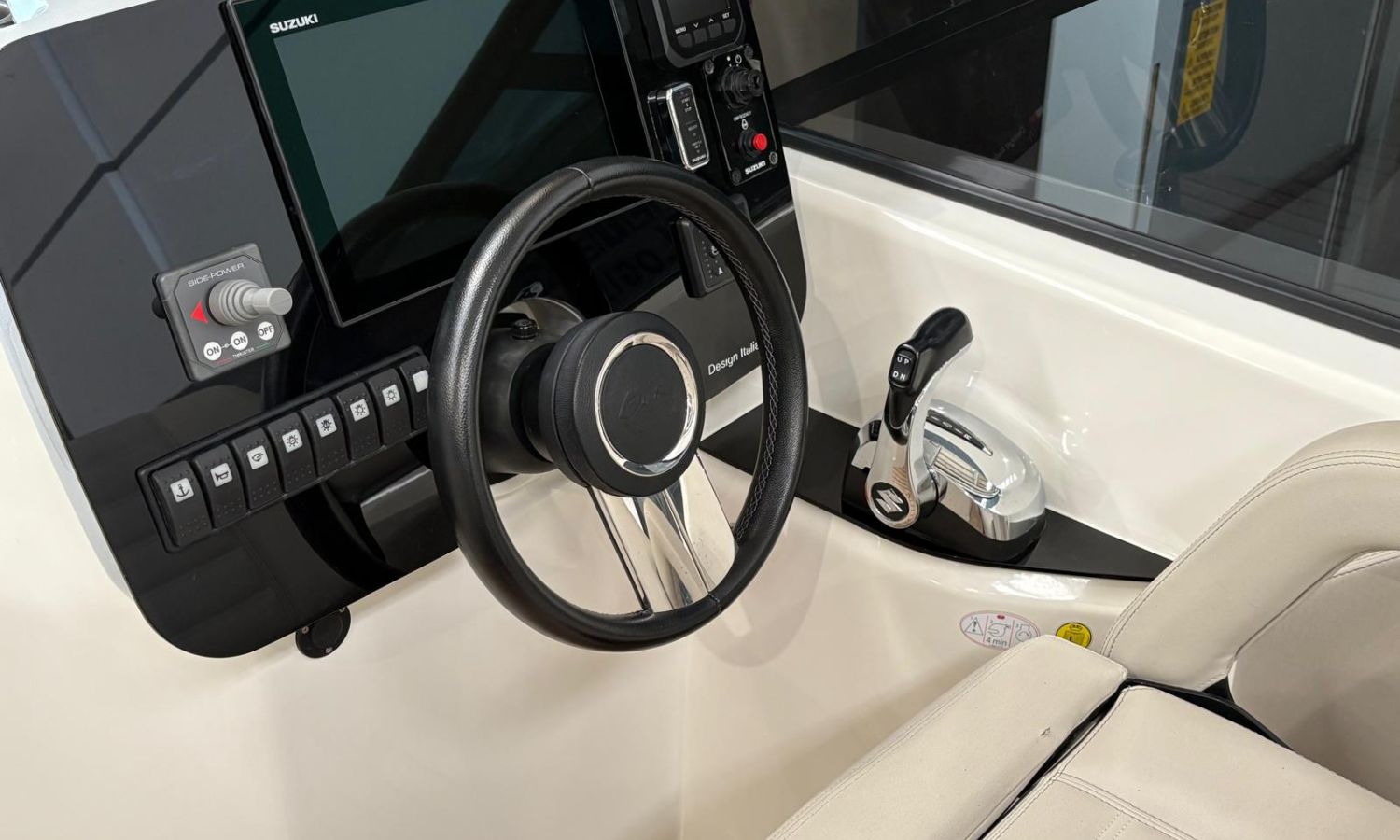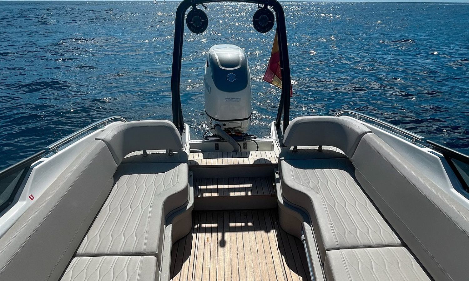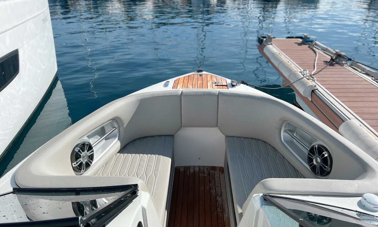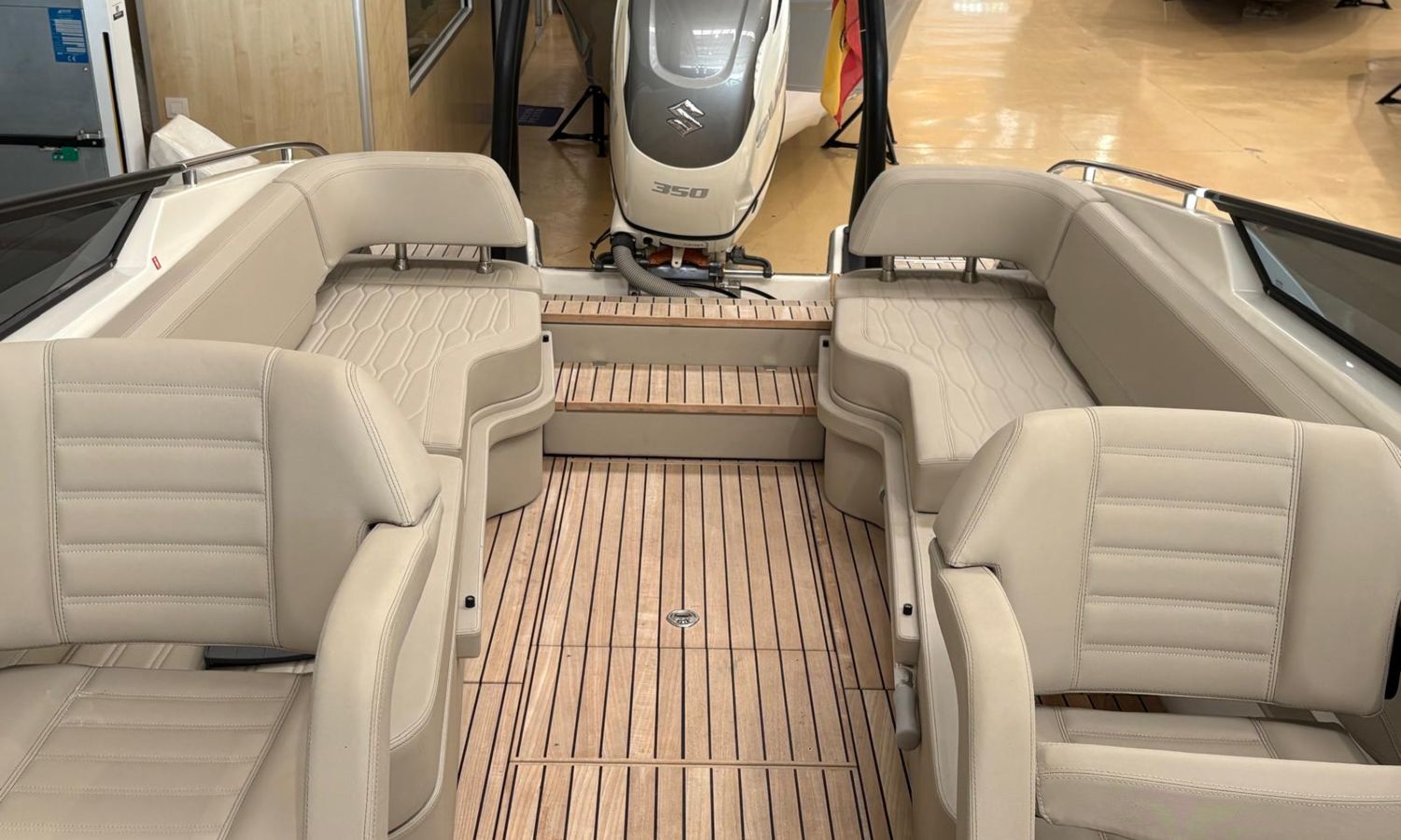 Wakeboard arch - Pack audio fusion with four speakers two fusion two pionner in the arch - Display Suzuki system with info meteo - Gps - Plotter - Bow trhuster Side-Power Sleipner - Bimini top with cover - Bow cushions - Full aft cushions - Two pilot and copilot seats with 360 º rotation - Fridge Isotherm 42 l. 12v - Blue underwater lights - Electric windlass - Stainless steel anchor - New two battery - Anchoring system fenders Quickset - Canvas camper - Teak laid cockpit - Additional lights in cockpit.Boat description