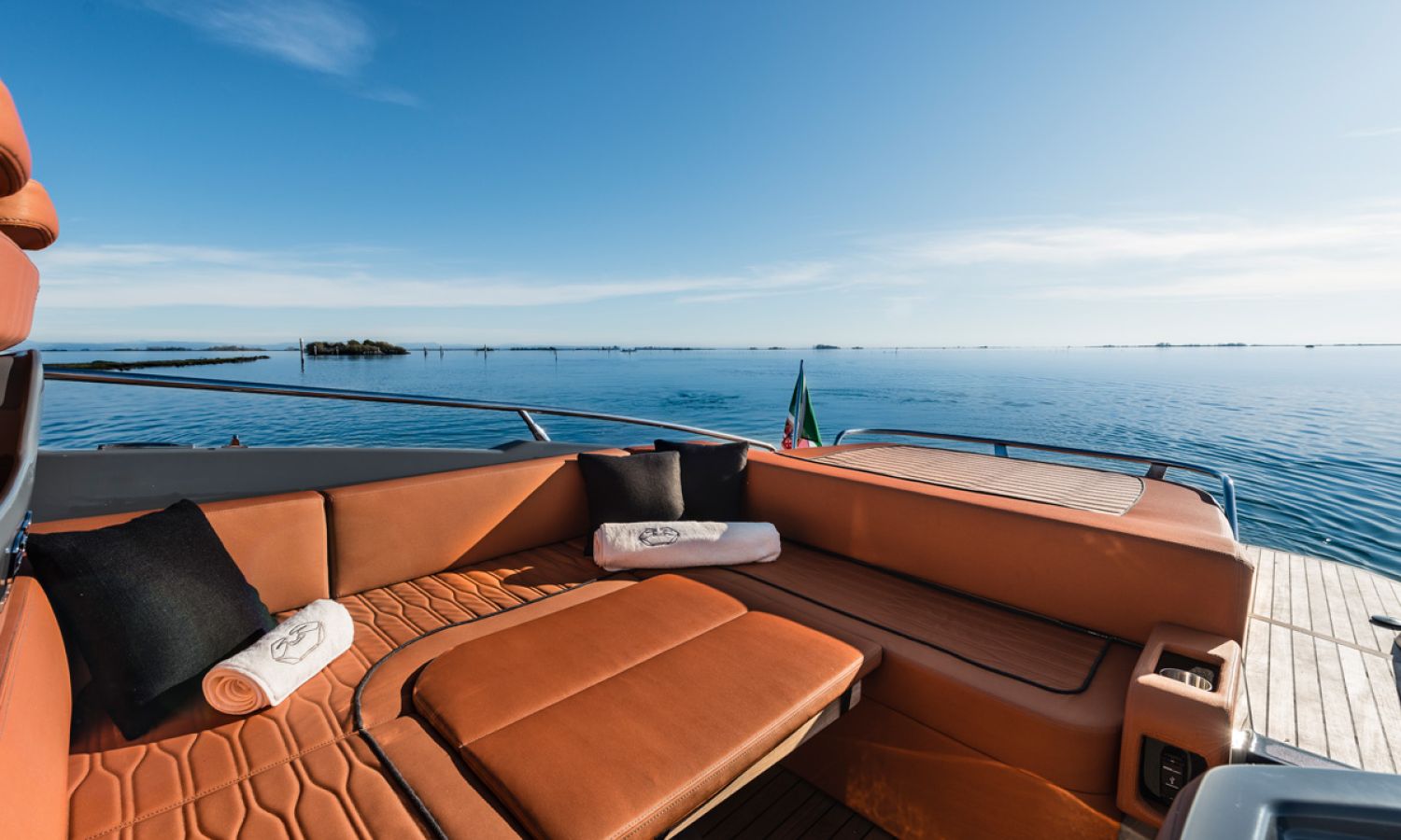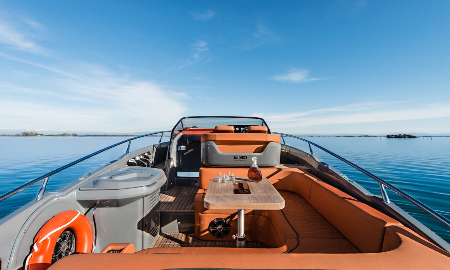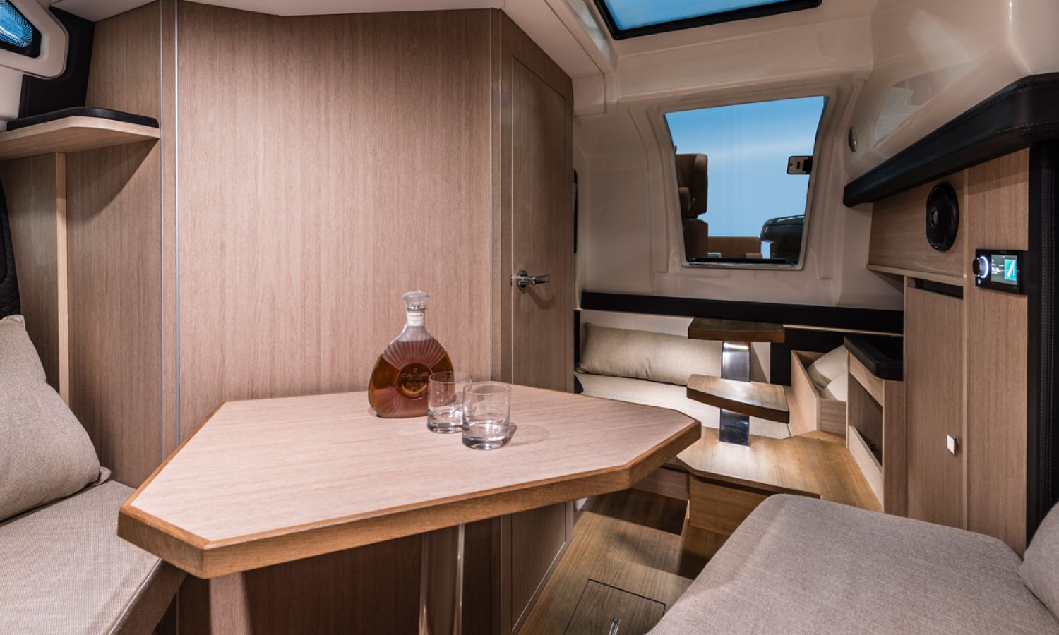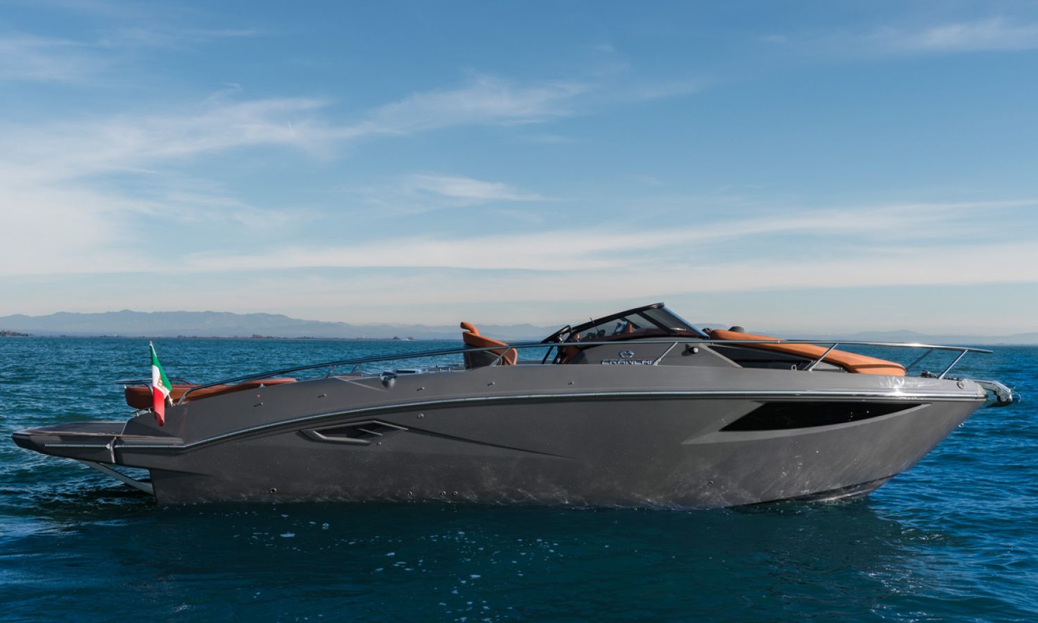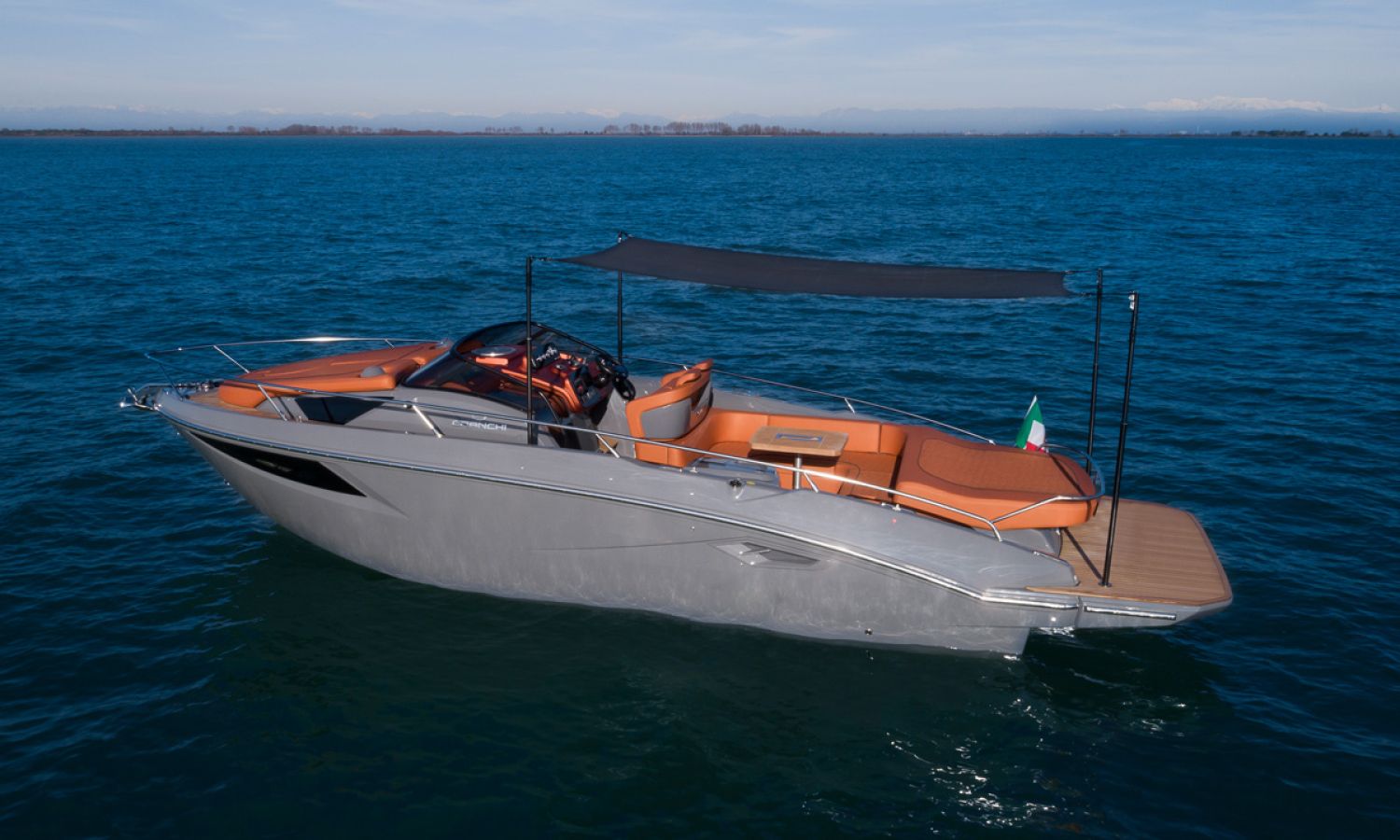 Boat of a sporty nature with a spirited and sharp line. The interior is featured with wide spaces and a separate bathroom. Outside the big sunbathing area with a wet-bar and several cockpit seats are perfect to enjoy boating.