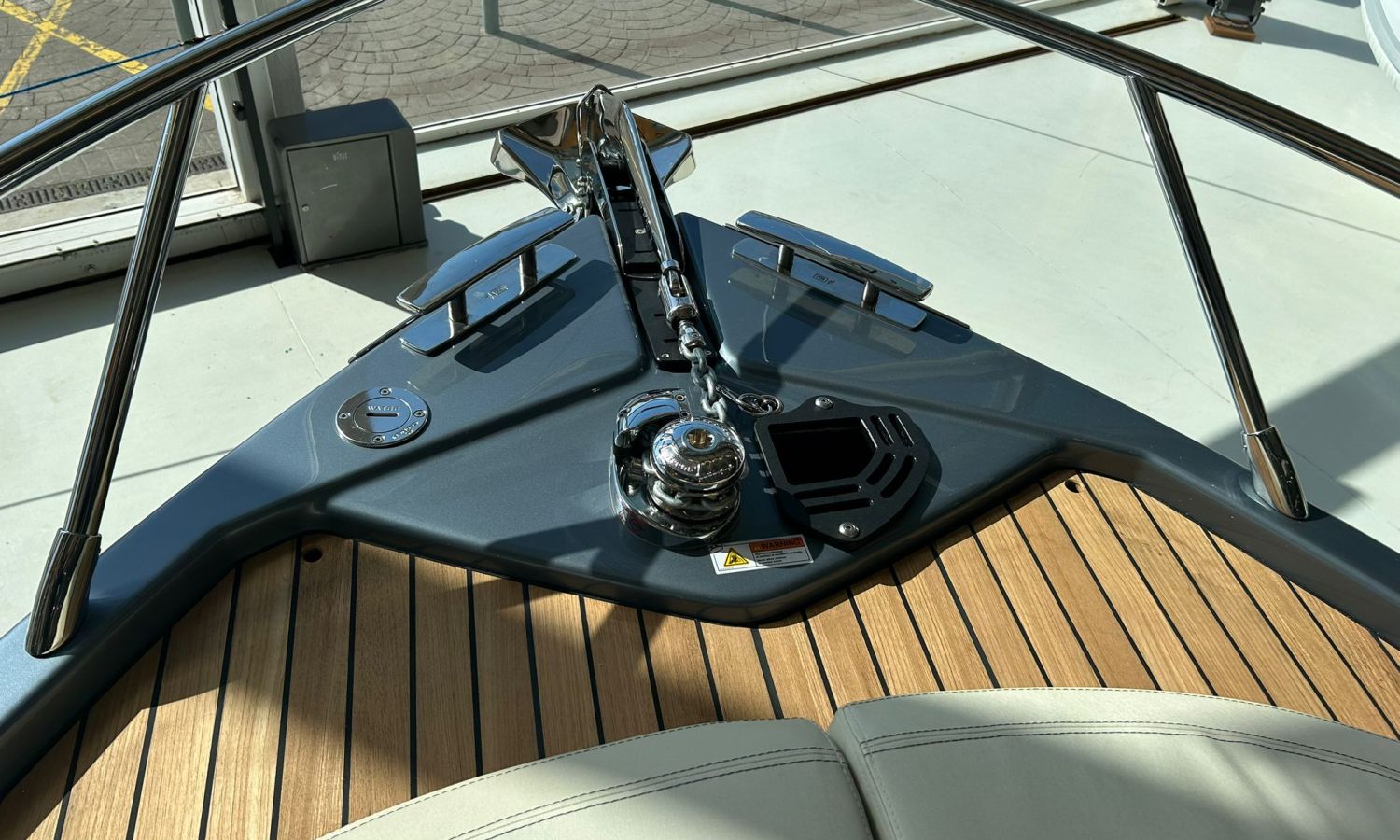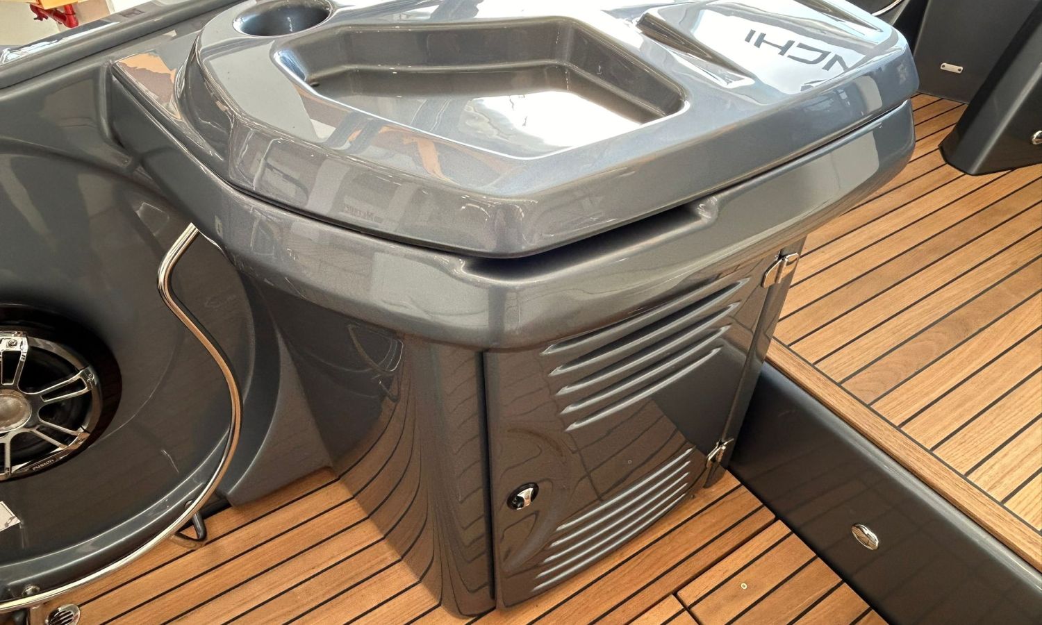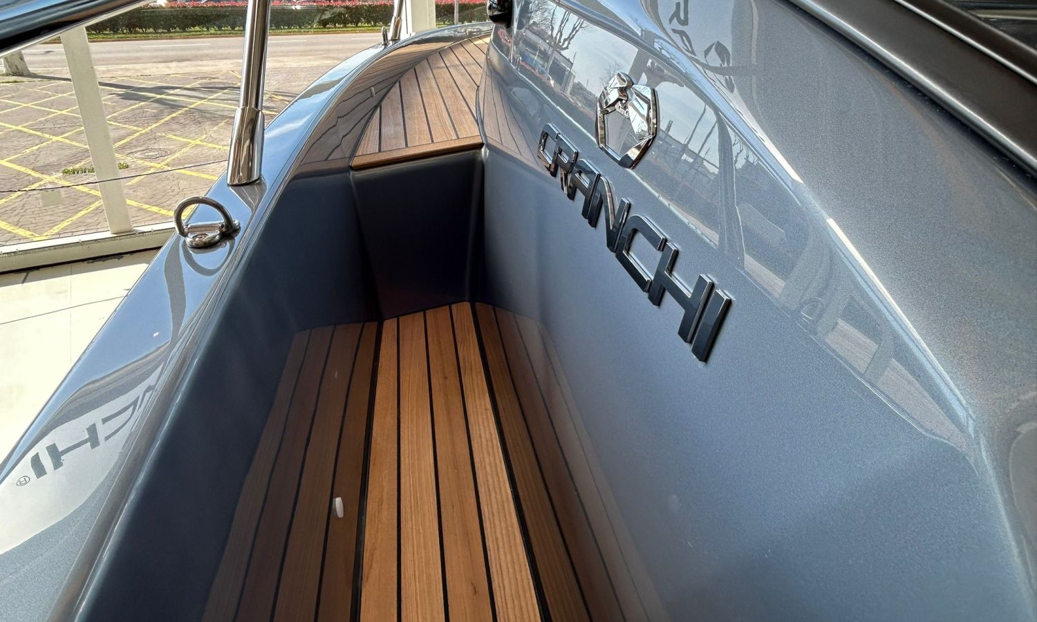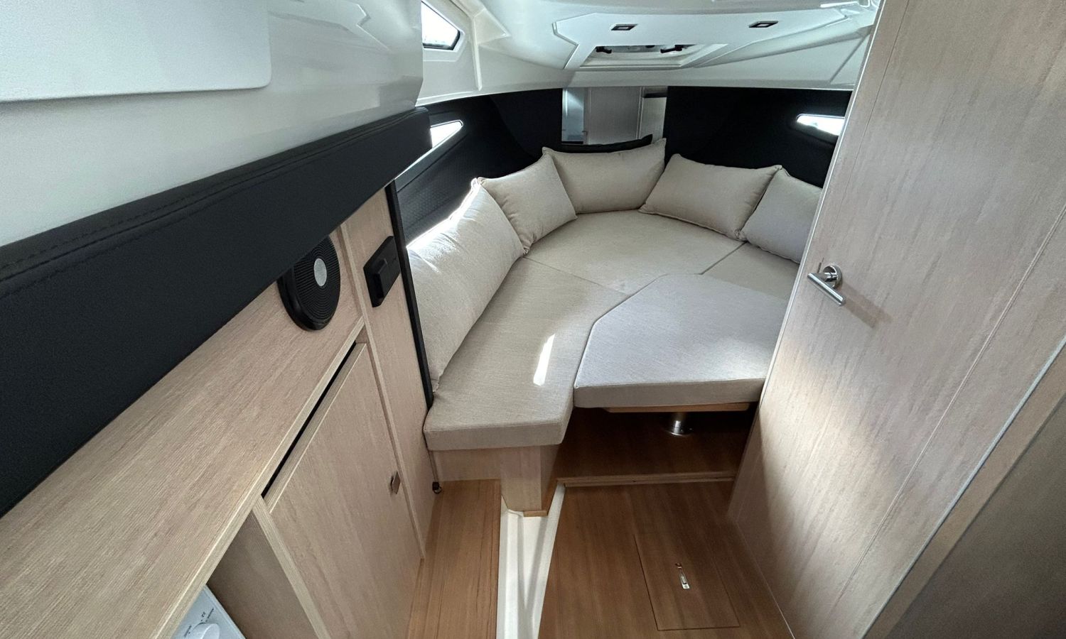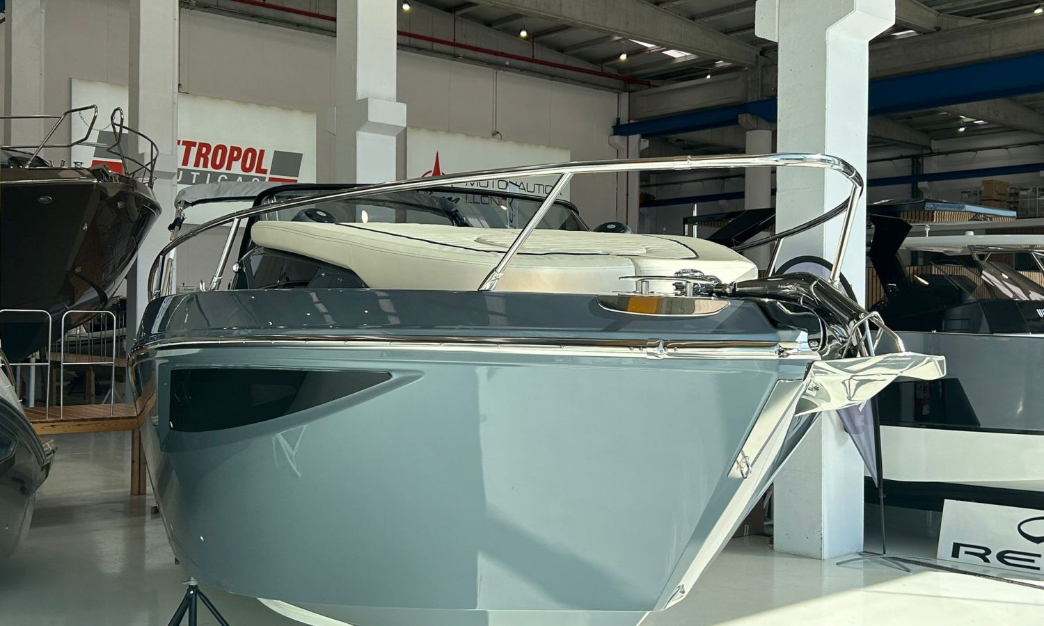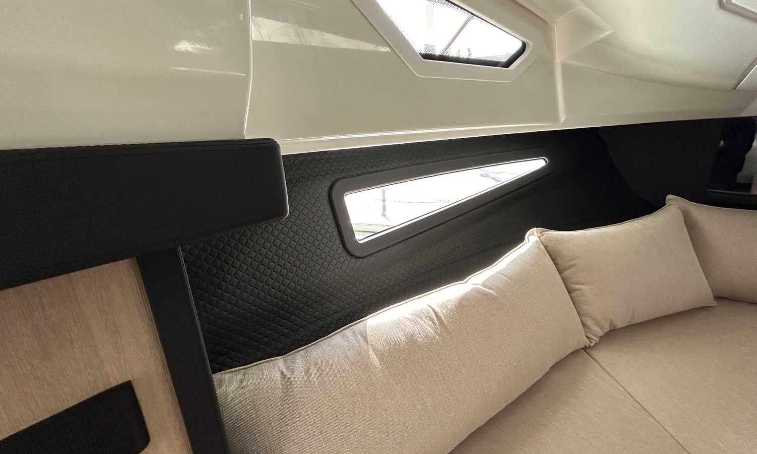 Waste water tank - Bimini top with SS frame and canvas - Bow sunbathing cushion and cover - Bow thruster - Microwave oven with furniture - Cockpit refrigerator 42 l - GPS Plotter Garmin - 230 V electric wiring system with battery charger, electrical resistance on water heater, water pressure reducer and shore power cable 32 A - Cabinet with door - Radio Fusion Bluetooth/USB with 2 speakers, amplifier, subwoofer and remote control in the cockpit and one speaker in the cabin - 2 Additional speakers on bow - Internal table convertible into bed - Solid teak coverings on lateral stringers - Teak laid cockpit - Anchor winch remote control with anchor meter counter - Cockpit cover - Electric anchor winch with chain and 12 Kg Ultramarine anchor - Copy of CE certificate and declaration of conformity - Exterior upholstery Silvertex (alternative colour to standard one) - Hull and deck colour lacquered - Transport.Boat description