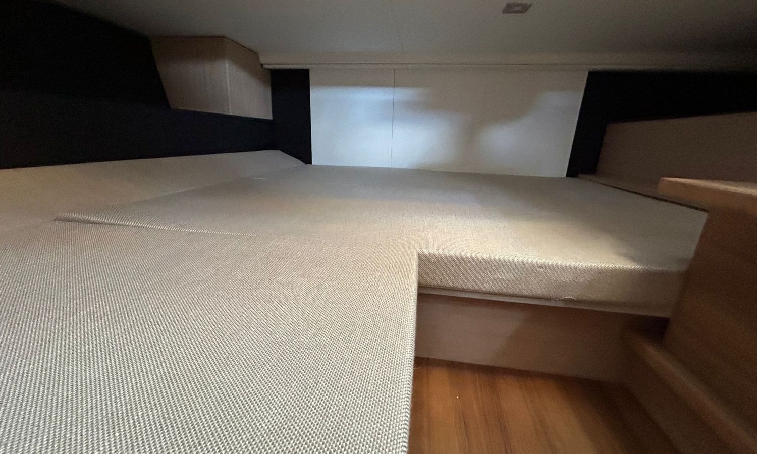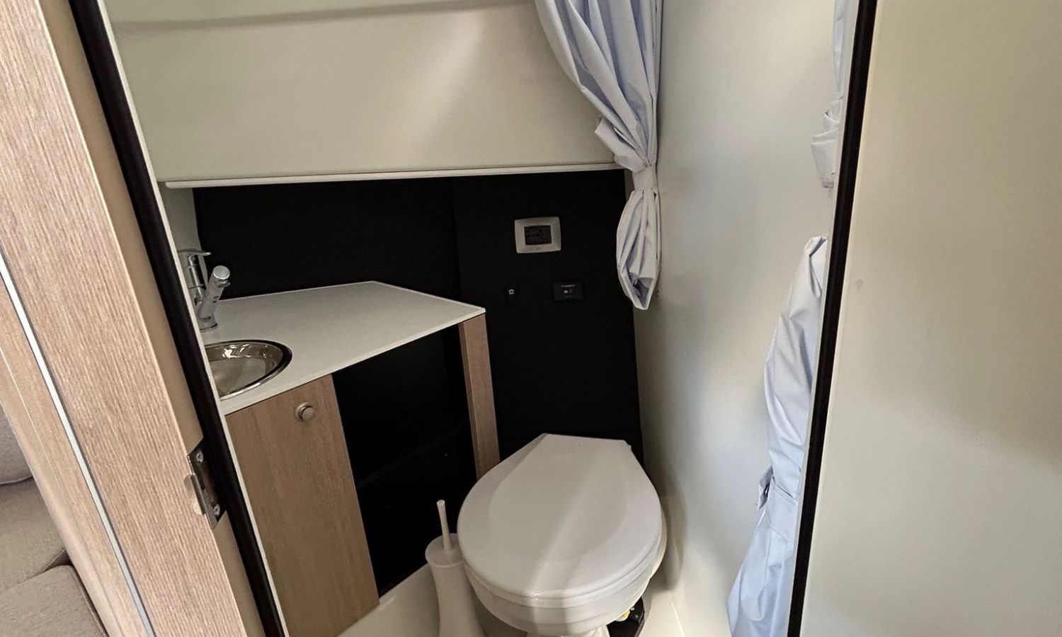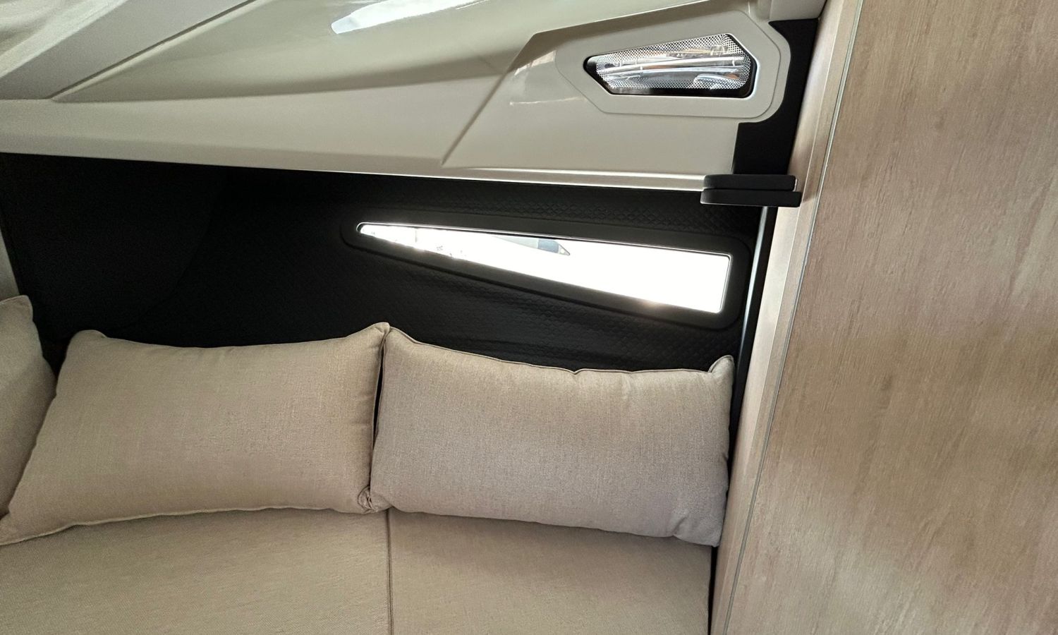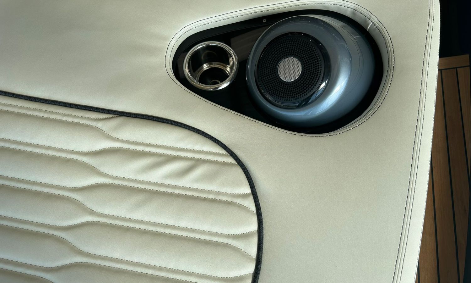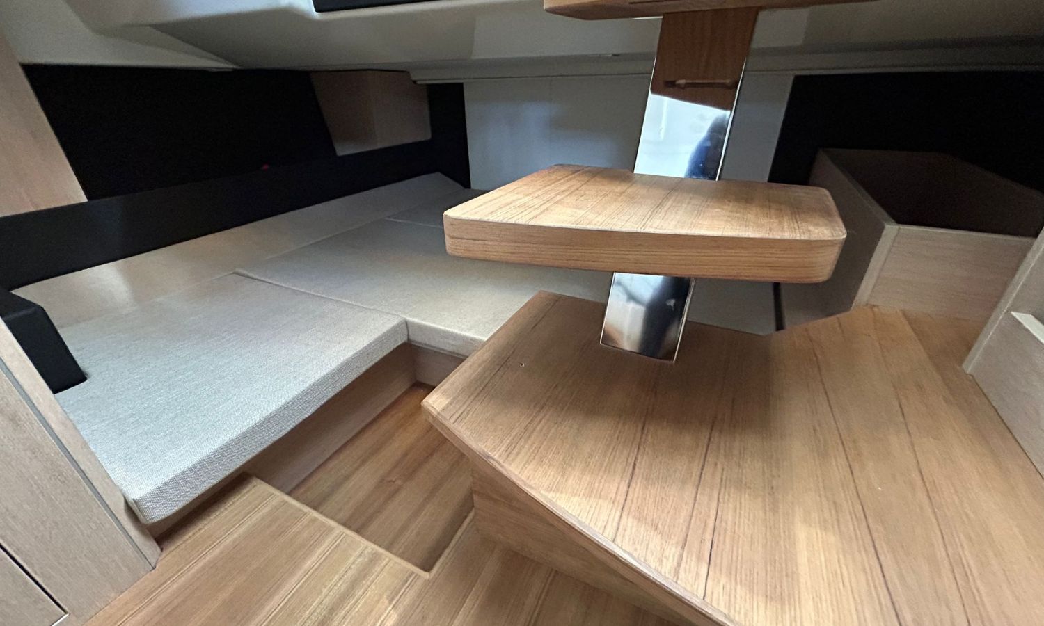 Waste water tank - Bimini top with SS frame and canvas - Bow sunbathing cushion and cover - Bow thruster - Microwave oven with furniture - Cockpit refrigerator 42 l - GPS Plotter Garmin - 230 V electric wiring system with battery charger, electrical resistance on water heater, water pressure reducer and shore power cable 32 A - Cabinet with door - Radio Fusion Bluetooth/USB with 2 speakers, amplifier, subwoofer and remote control in the cockpit and one speaker in the cabin - 2 Additional speakers on bow - Internal table convertible into bed - Solid teak coverings on lateral stringers - Teak laid cockpit - Anchor winch remote control with anchor meter counter - Cockpit cover - Electric anchor winch with chain and 12 Kg Ultramarine anchor - Copy of CE certificate and declaration of conformity - Exterior upholstery Silvertex (alternative colour to standard one) - Hull and deck colour lacquered - Transport.Boat description