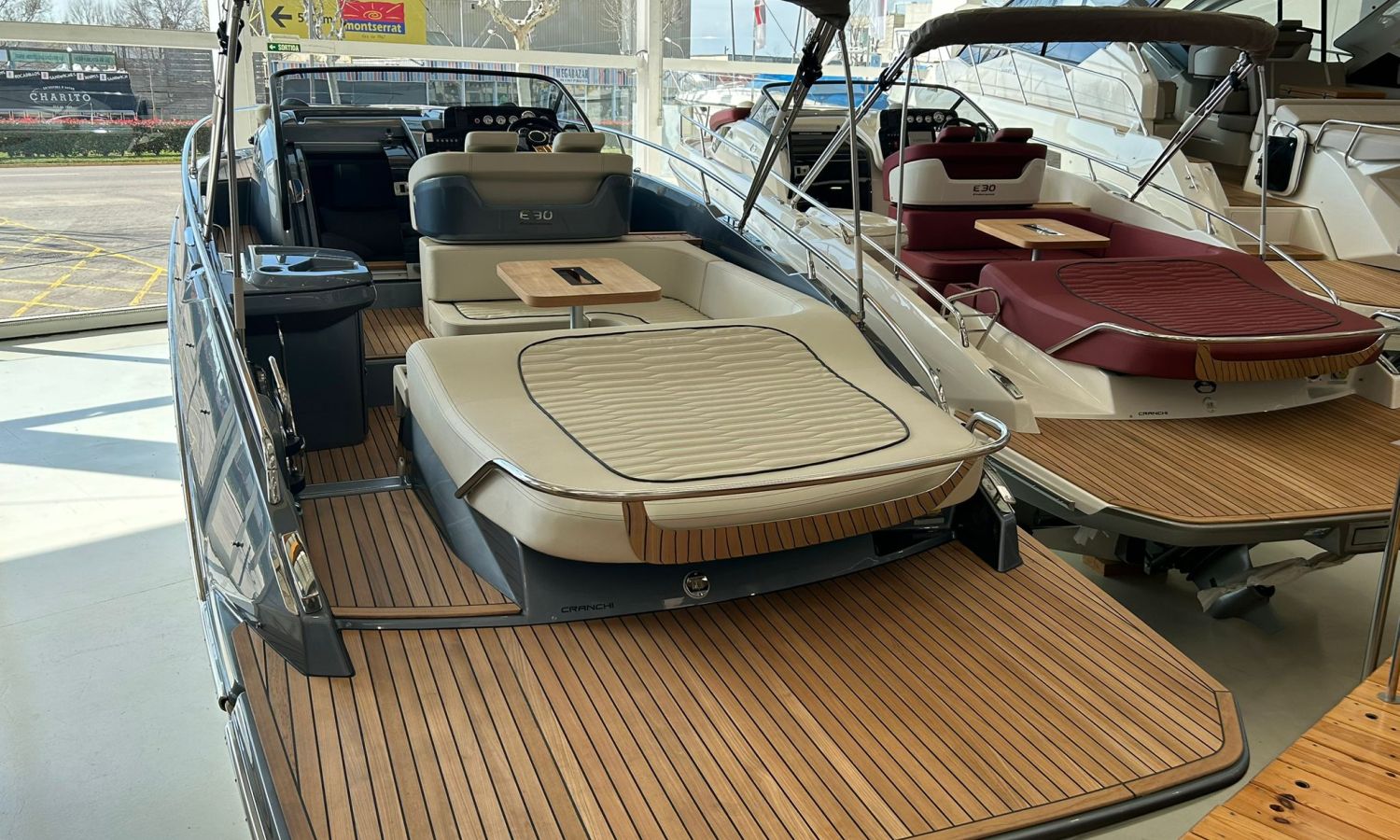 Boat in stock. Immediate delivery. Model Endurance 30 of the italian shipyard Cranchi of 9,85 meters in total length. Boat with comfortable bathing platform, spacious layout, with cabin and aft sundeck.EMP-Nº 7900