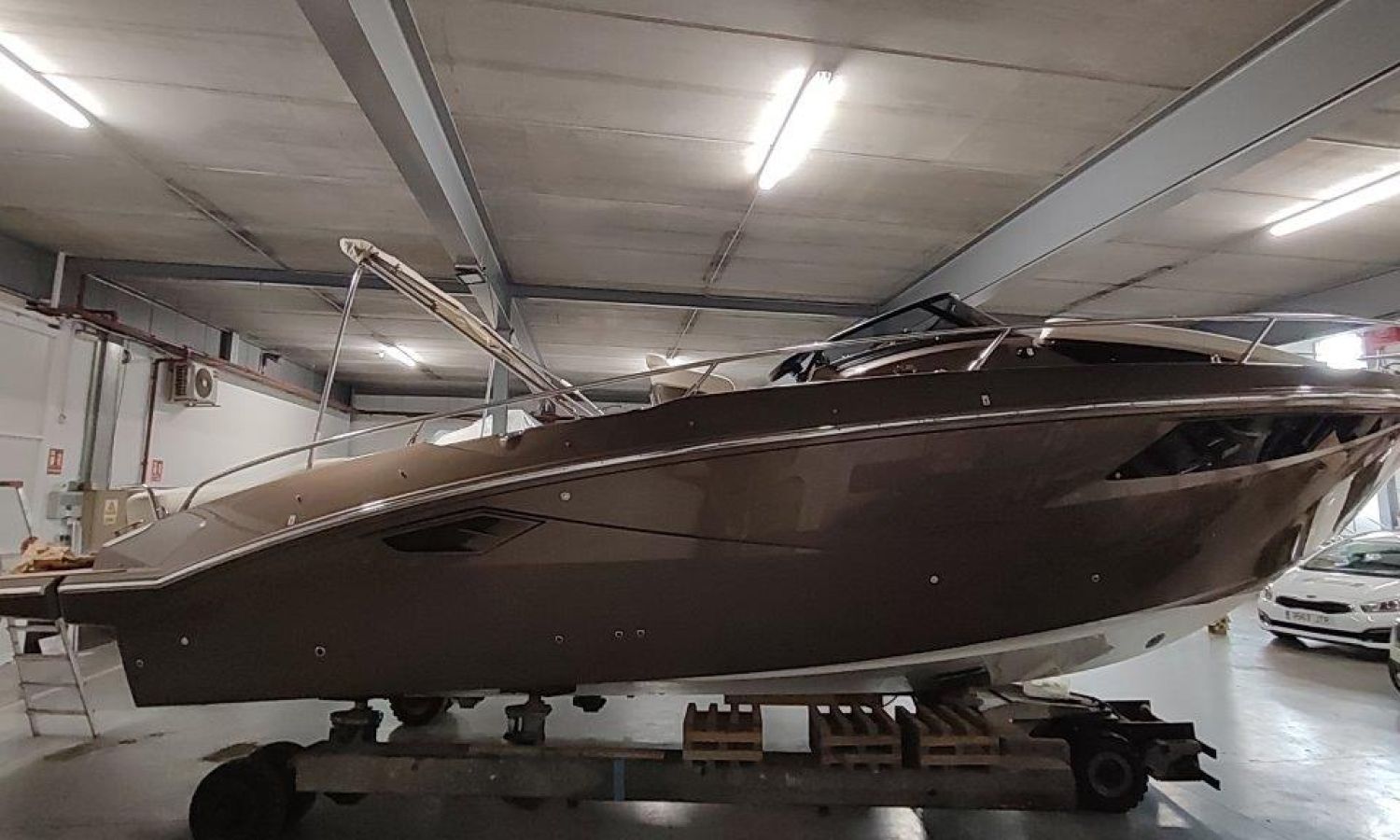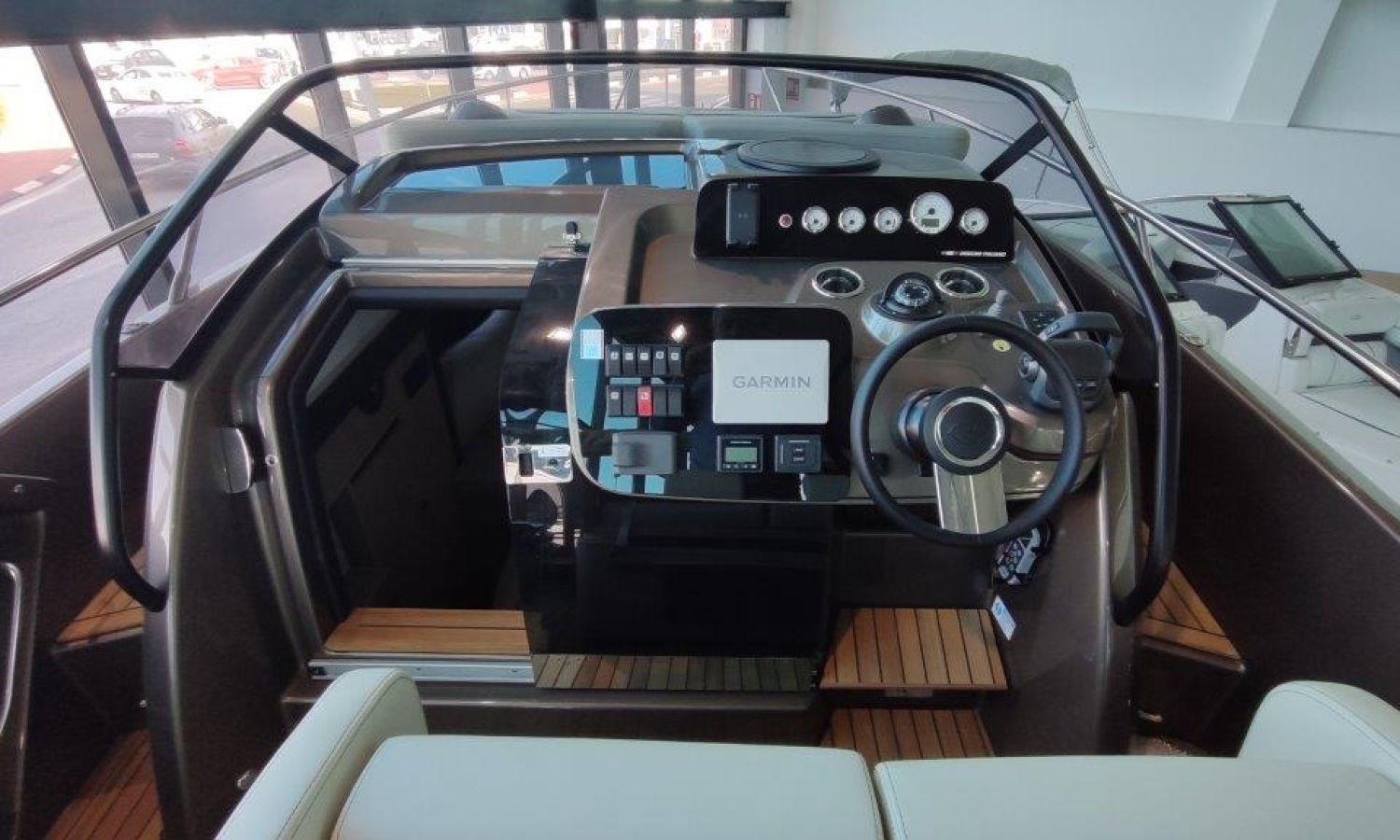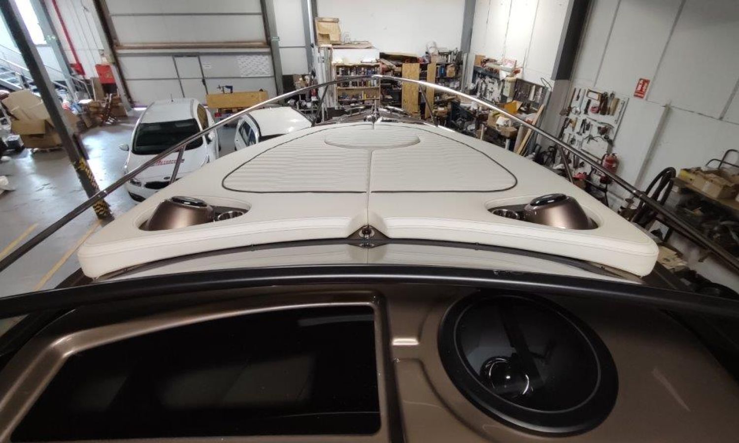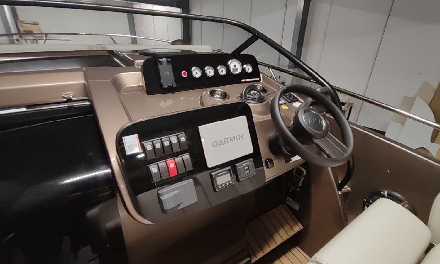 Waste water tank - Bimini top with SS frame and canvas - Bow sunbathing cushion and cover - Bow thruster - Microwave oven with furniture - Cockpit refrigerator 42 l - GPS Plotter Garmin - 230 V electric wiring system with battery charger, electrical resistance on water heater, water pressure reducer and shore power cable 32 A - Cabinet with door - 6 Fenders and fender covers - Radio Fusion Bluetooth/USB with 2 speakers, amplifier, subwoofer and remote control in the cockpit and one speaker in the cabin - 2 Additional speakers on bow - Internal table convertible into bed - Solid teak coverings on lateral stringers - Teak laid cockpit - Anchor winch remote control with anchor meter counter - Cockpit cover - Electric anchor winch with chain and 12 Kg Ultramarine anchor - Copy of CE certificate and declaration of conformity - Hood (alternative colour to standard one) - Fender covers (alternative colour to standard one) - Exterior upholstery Silvertex (alternative colour to standard one) - Hull and deck colour lacquered - Transport Italy to Costa Brava.Boat description