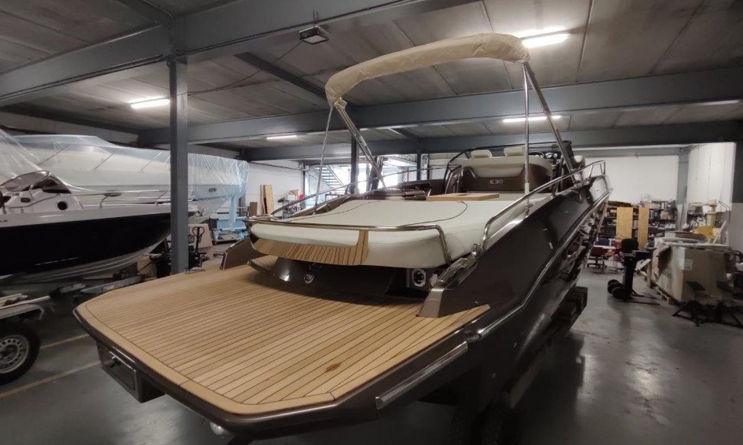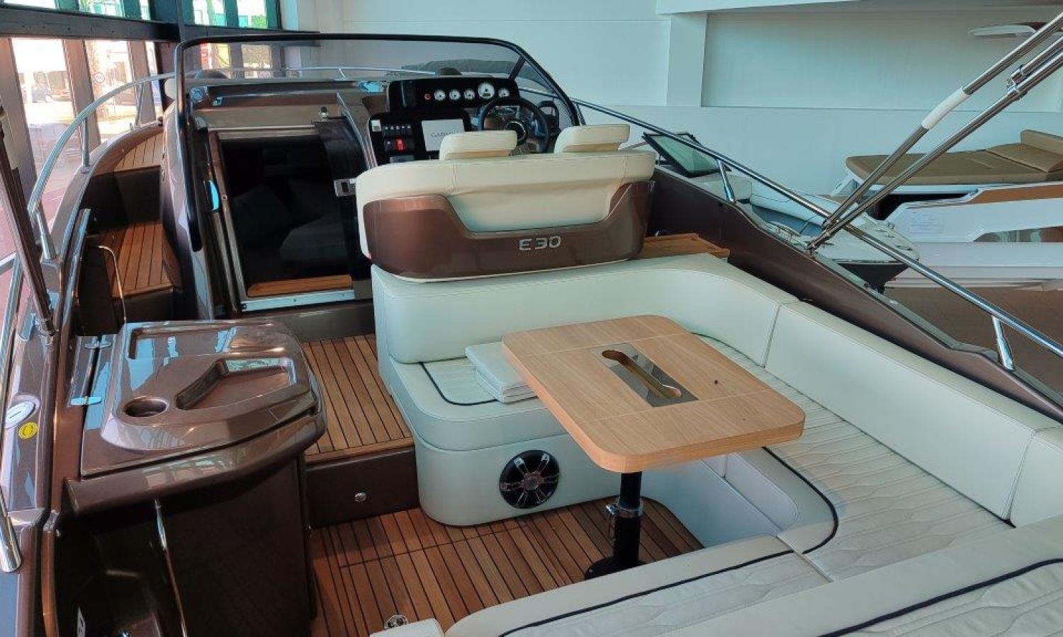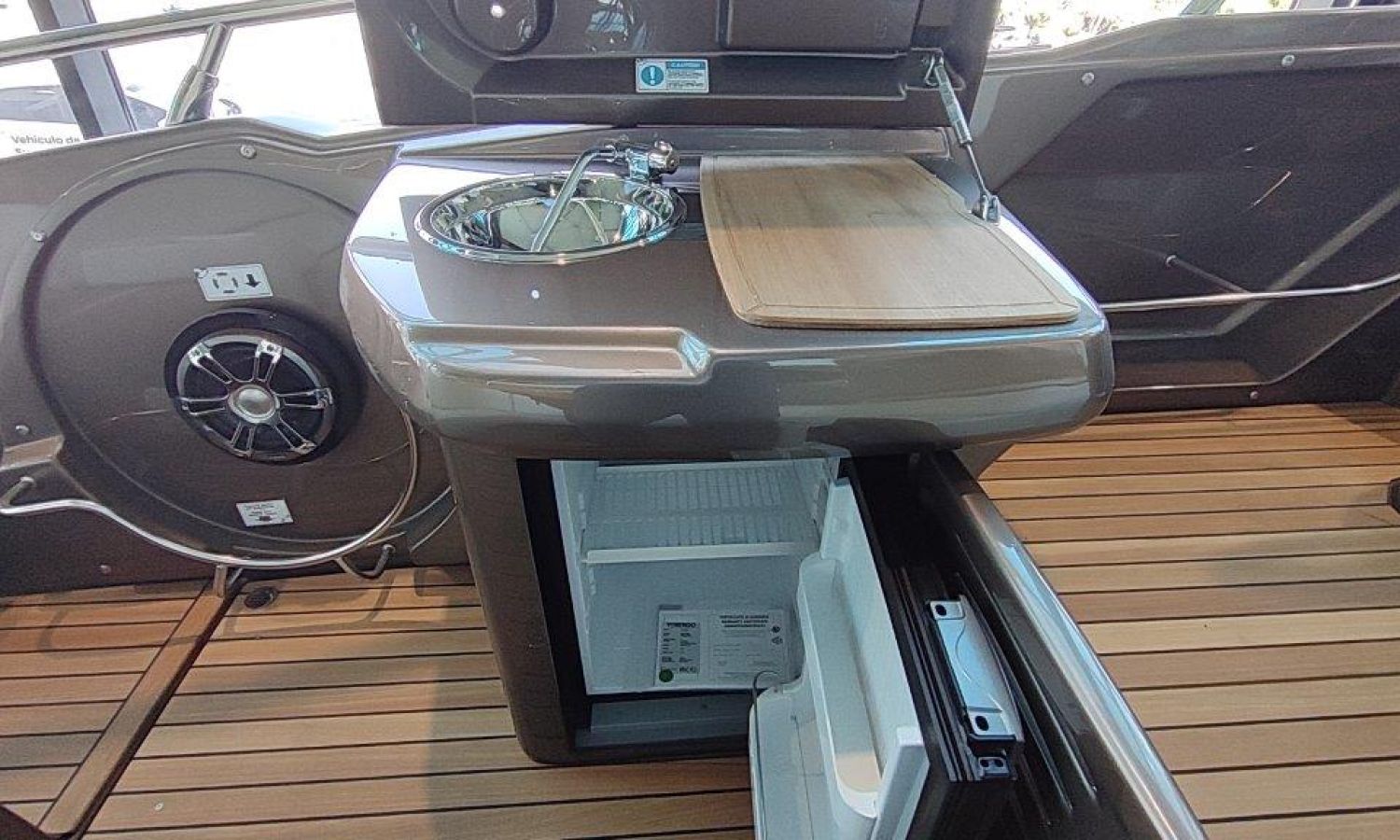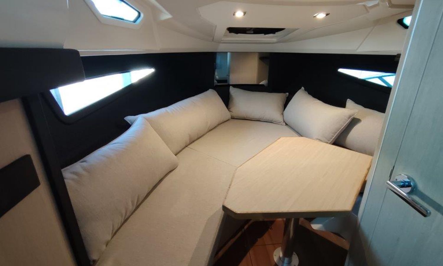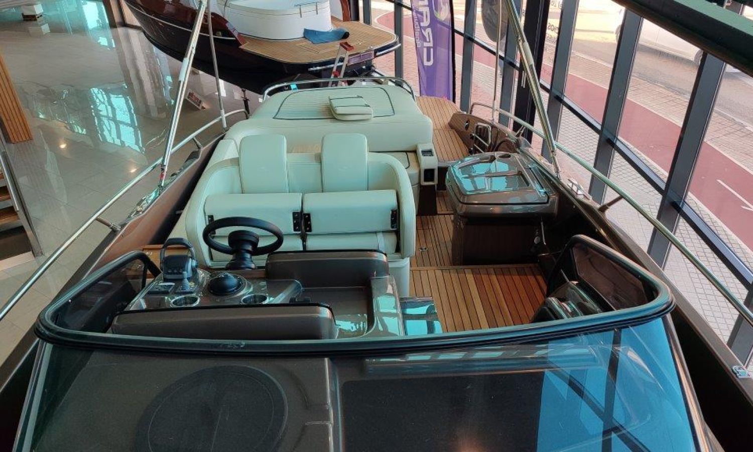 Waste water tank - Bimini top with SS frame and canvas - Bow sunbathing cushion and cover - Bow thruster - Microwave oven with furniture - Cockpit refrigerator 42 l - GPS Plotter Garmin - 230 V electric wiring system with battery charger, electrical resistance on water heater, water pressure reducer and shore power cable 32 A - Cabinet with door - 6 Fenders and fender covers - Radio Fusion Bluetooth/USB with 2 speakers, amplifier, subwoofer and remote control in the cockpit and one speaker in the cabin - 2 Additional speakers on bow - Internal table convertible into bed - Solid teak coverings on lateral stringers - Teak laid cockpit - Anchor winch remote control with anchor meter counter - Cockpit cover - Electric anchor winch with chain and 12 Kg Ultramarine anchor - Copy of CE certificate and declaration of conformity - Hood (alternative colour to standard one) - Fender covers (alternative colour to standard one) - Exterior upholstery Silvertex (alternative colour to standard one) - Hull and deck colour lacquered - Transport Italy to Costa Brava.Boat description