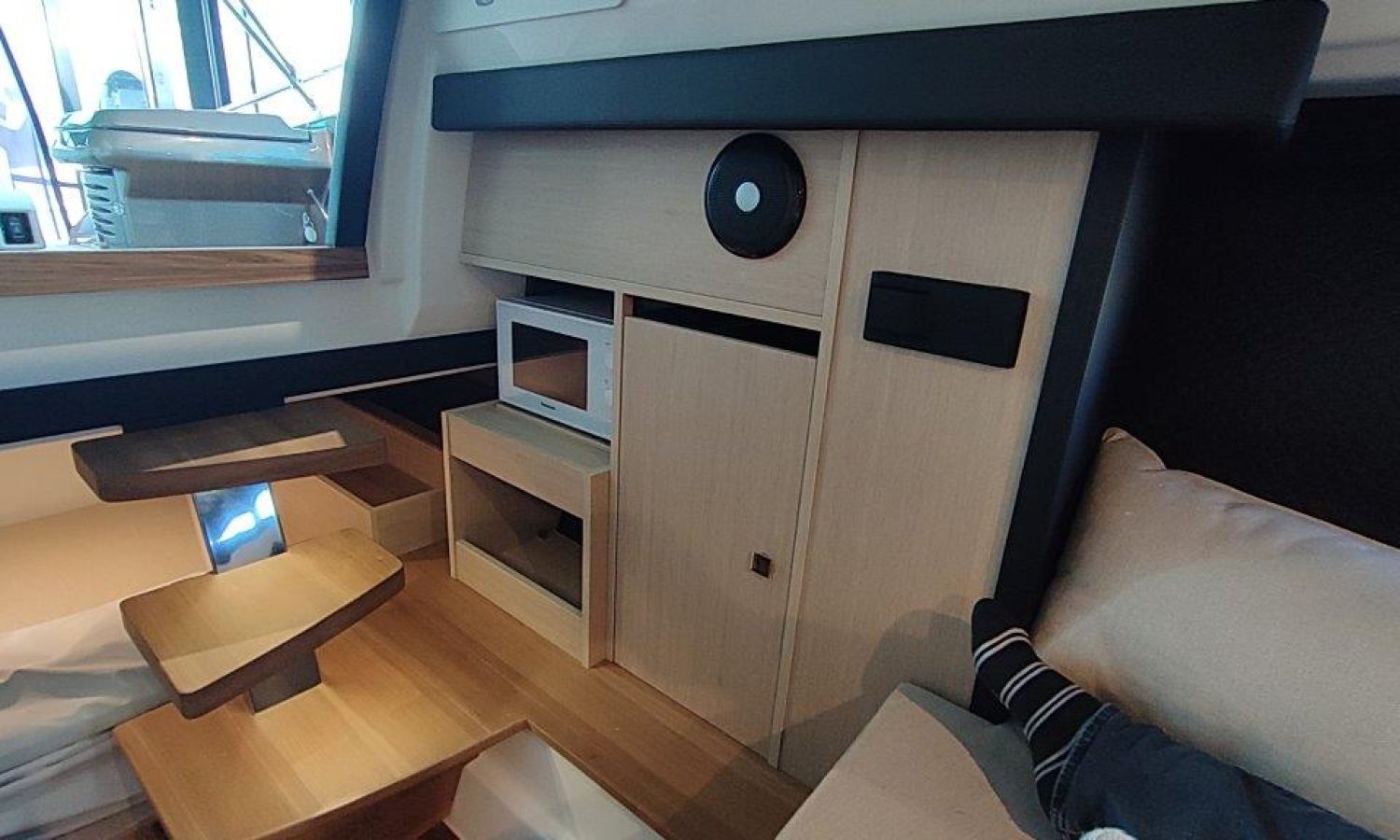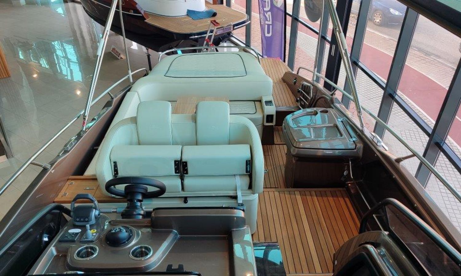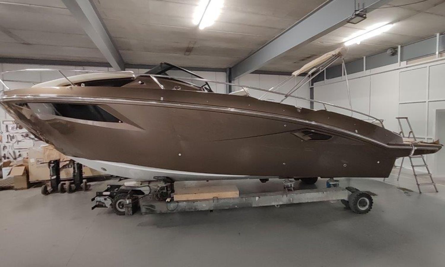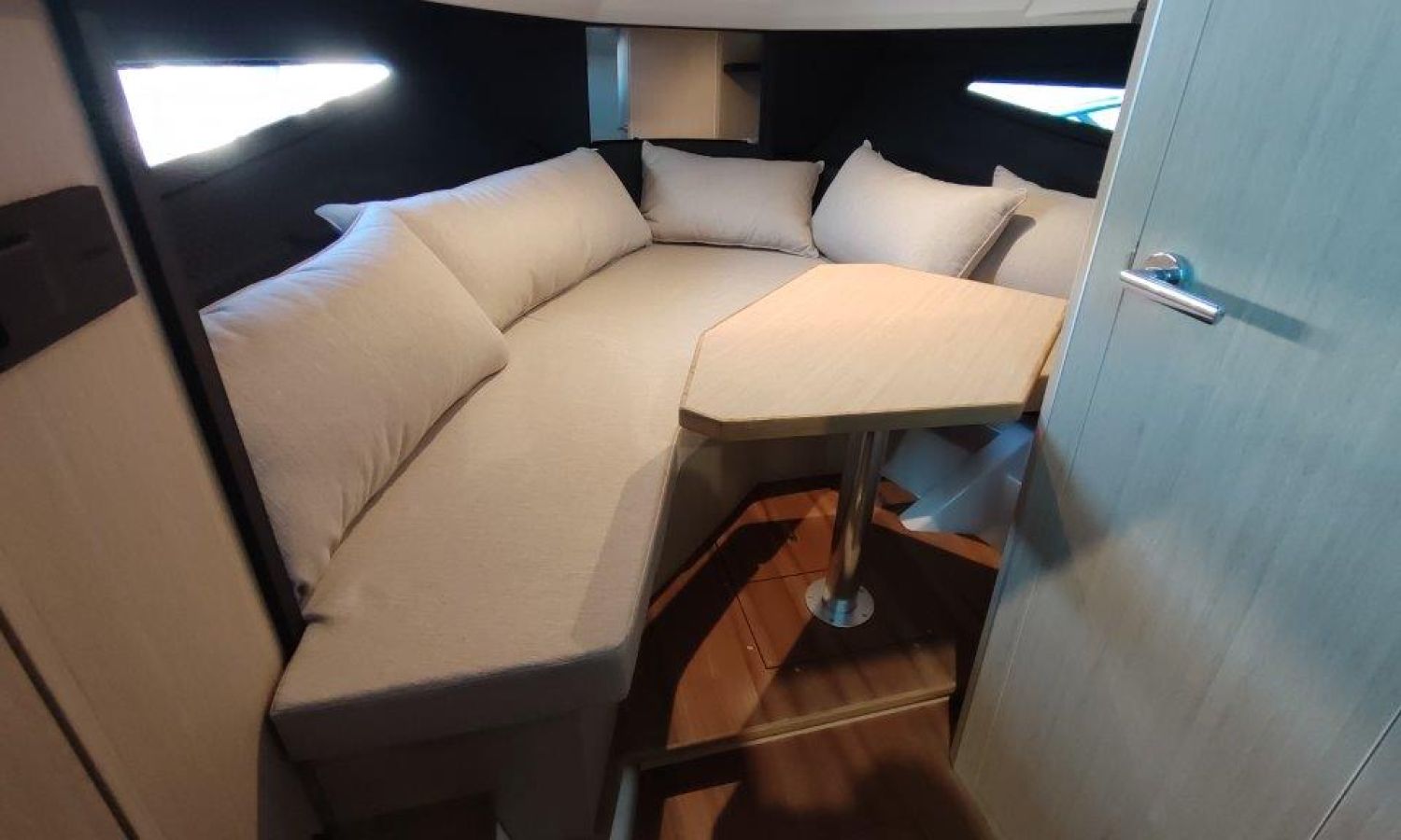 Waste water tank - Bimini top with SS frame and canvas - Bow sunbathing cushion and cover - Bow thruster - Microwave oven with furniture - Cockpit refrigerator 42 l - GPS Plotter Garmin - 230 V electric wiring system with battery charger, electrical resistance on water heater, water pressure reducer and shore power cable 32 A - Cabinet with door - 6 Fenders and fender covers - Radio Fusion Bluetooth/USB with 2 speakers, amplifier, subwoofer and remote control in the cockpit and one speaker in the cabin - 2 Additional speakers on bow - Internal table convertible into bed - Solid teak coverings on lateral stringers - Teak laid cockpit - Anchor winch remote control with anchor meter counter - Cockpit cover - Electric anchor winch with chain and 12 Kg Ultramarine anchor - Copy of CE certificate and declaration of conformity - Hood (alternative colour to standard one) - Fender covers (alternative colour to standard one) - Exterior upholstery Silvertex (alternative colour to standard one) - Hull and deck colour lacquered - Transport Italy to Costa Brava.Boat description