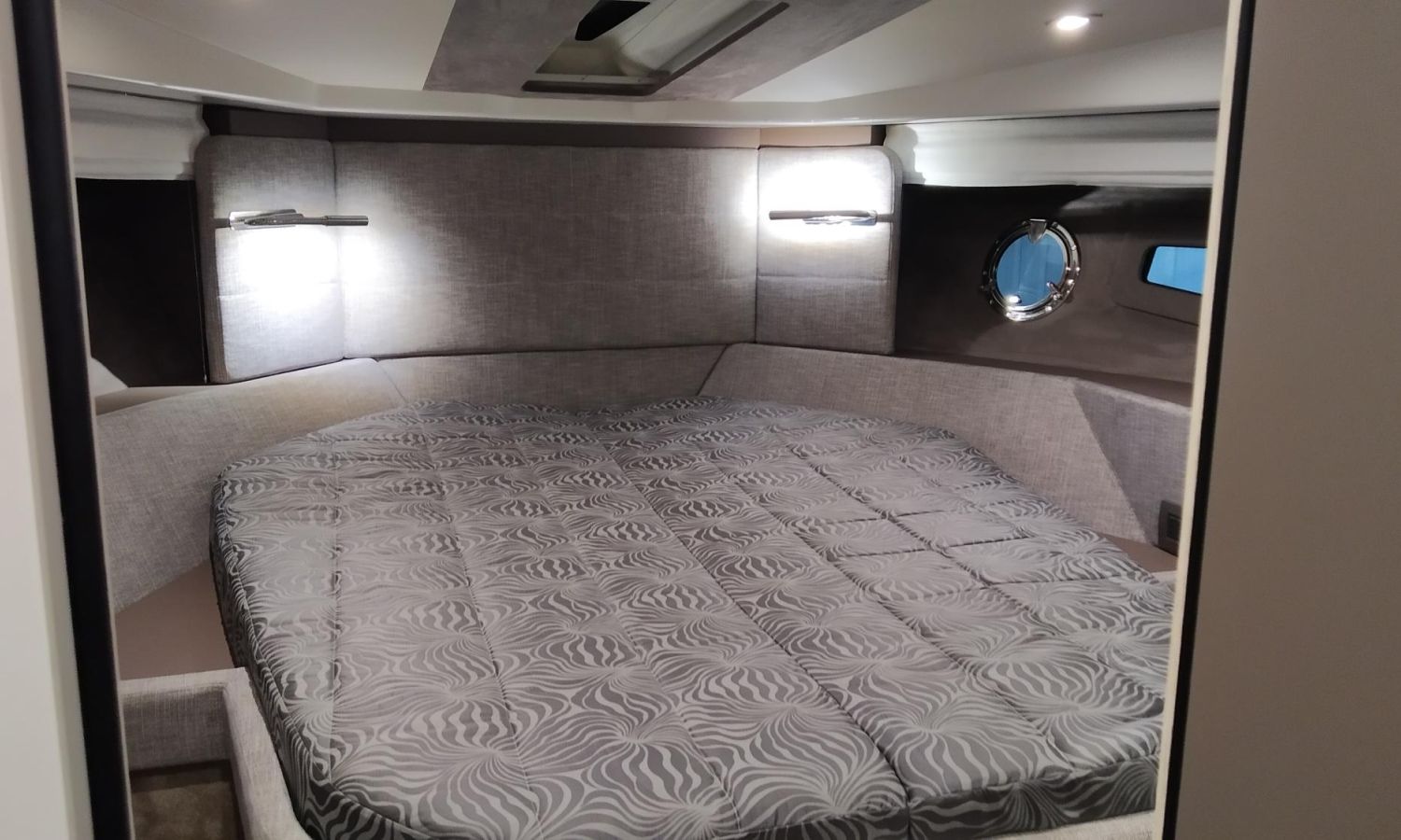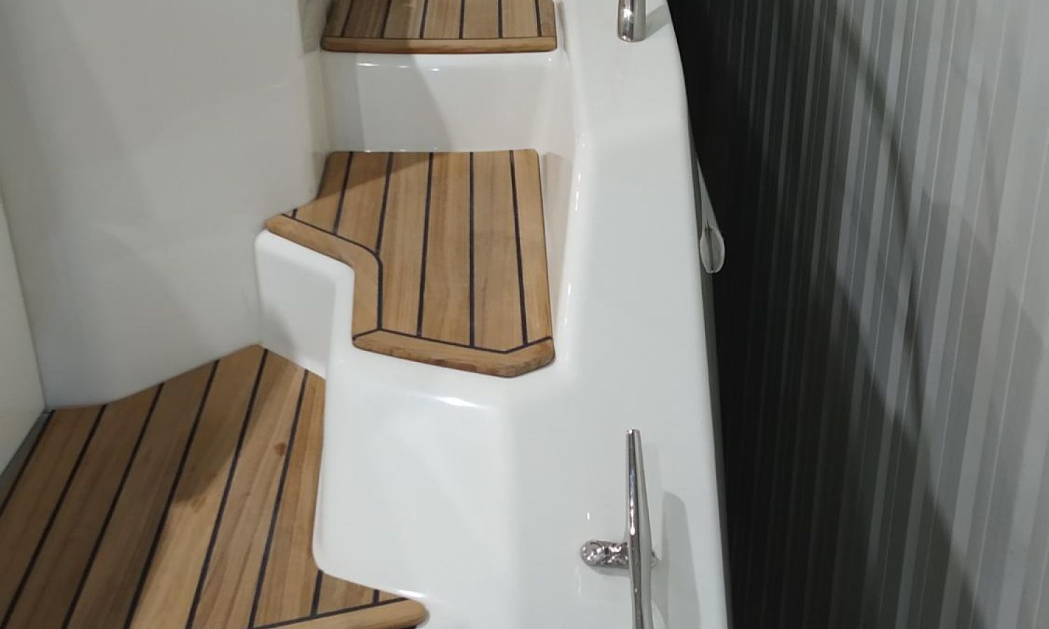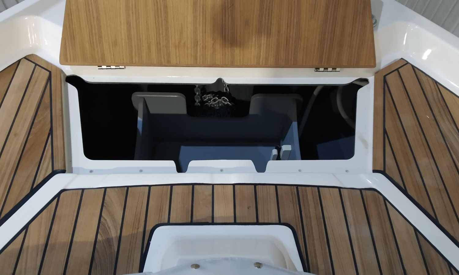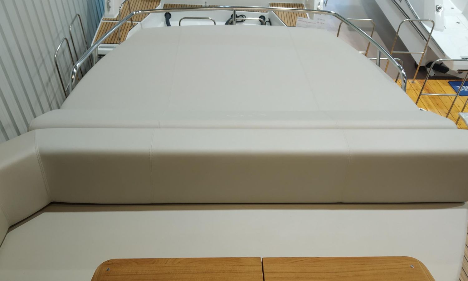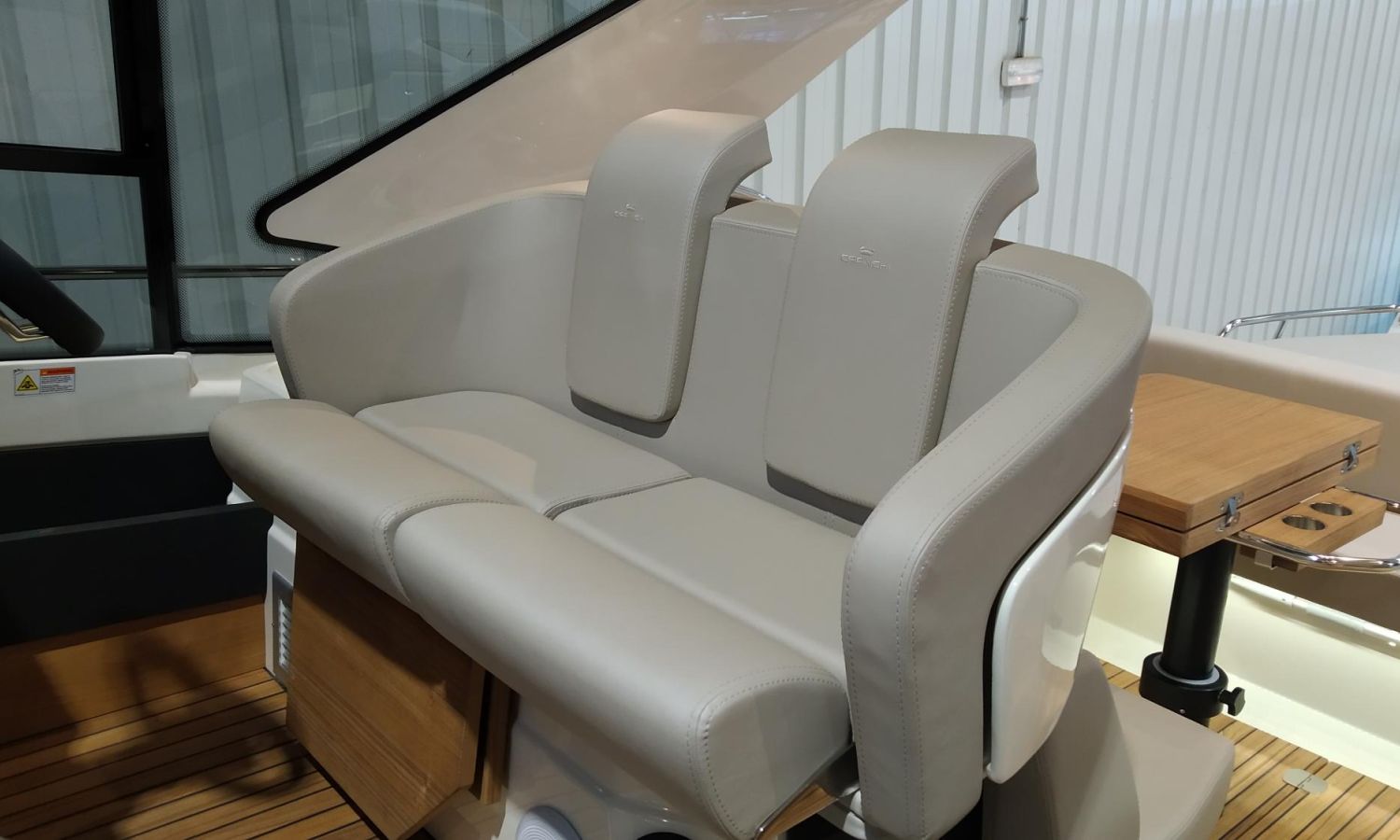 Waste water tank - Air conditioning system 16.000 BTU in cabins with heat pump - Air conditioning system 16.000 BTU cockpit cooling - Hood for complete stern closing - Bow thruster with automatic fire extinguisher - Cockpit refrigerator - GPS+ Chartplotter - 8 kW generator - Hydraulic gangway - Foldable raising platform in teak for driving position - Autopilot - Teak laid cockpit - VHF / DSC - Copy of CE certificate and declaration of conformity - Hard top colour lacquered - Preparation, launching, delivery and sea trial - Transport shipyard to Costa Brava.Boat description