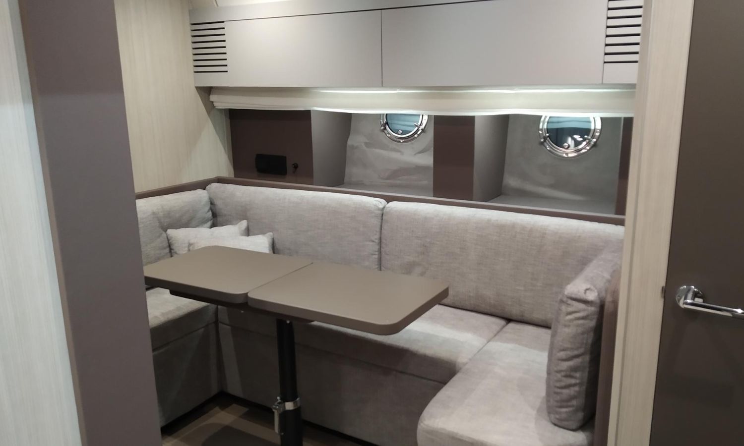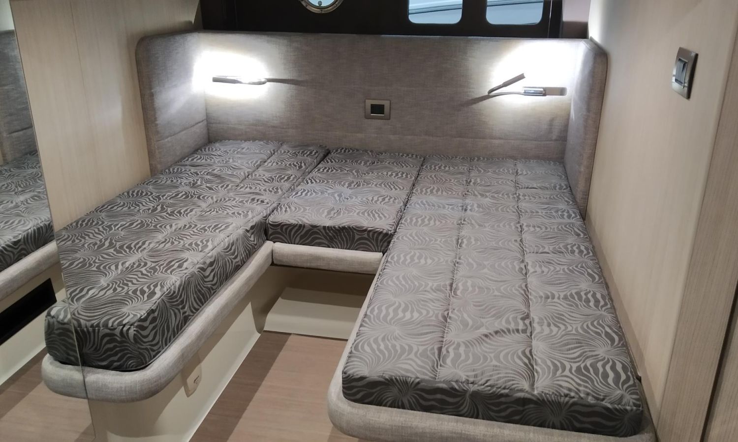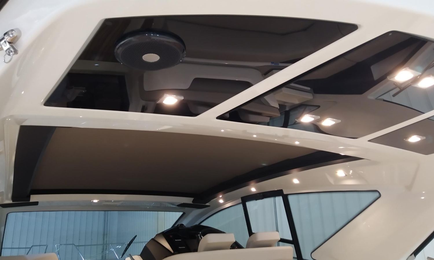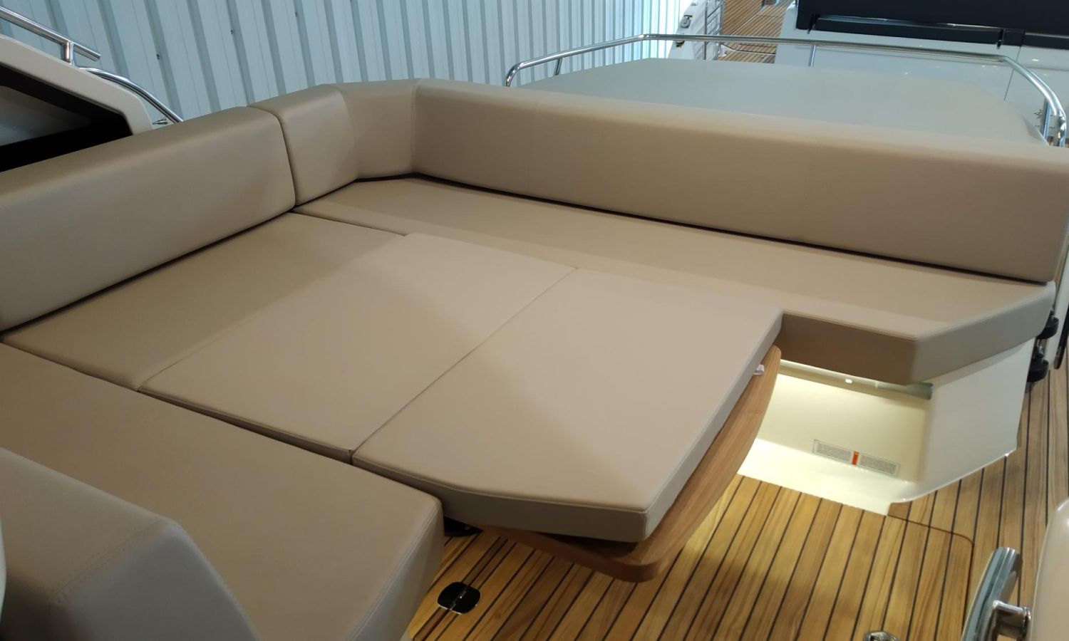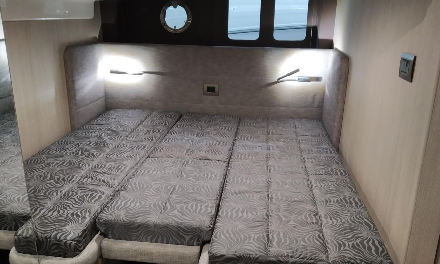 Waste water tank - Air conditioning system 16.000 BTU in cabins with heat pump - Air conditioning system 16.000 BTU cockpit cooling - Hood for complete stern closing - Bow thruster with automatic fire extinguisher - Cockpit refrigerator - GPS+ Chartplotter - 8 kW generator - Hydraulic gangway - Foldable raising platform in teak for driving position - Autopilot - Teak laid cockpit - VHF / DSC - Copy of CE certificate and declaration of conformity - Hard top colour lacquered - Preparation, launching, delivery and sea trial - Transport shipyard to Costa Brava.Boat description