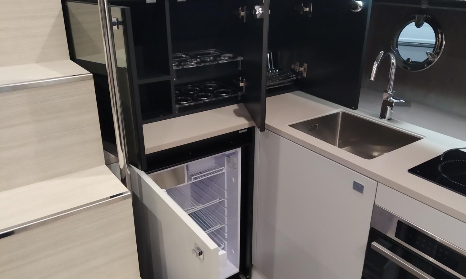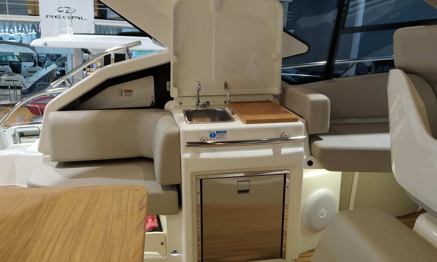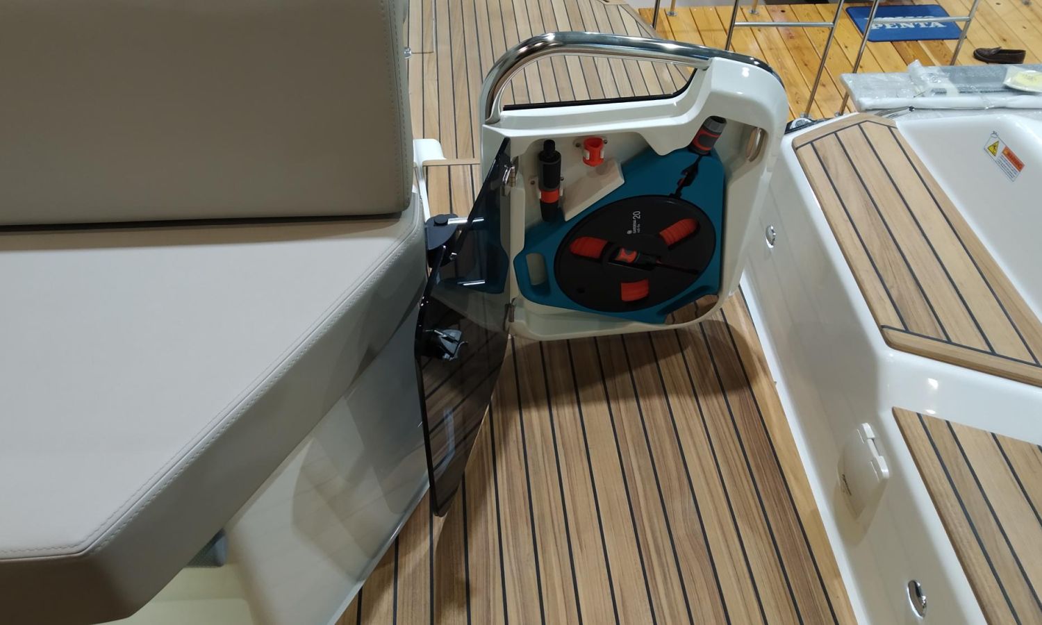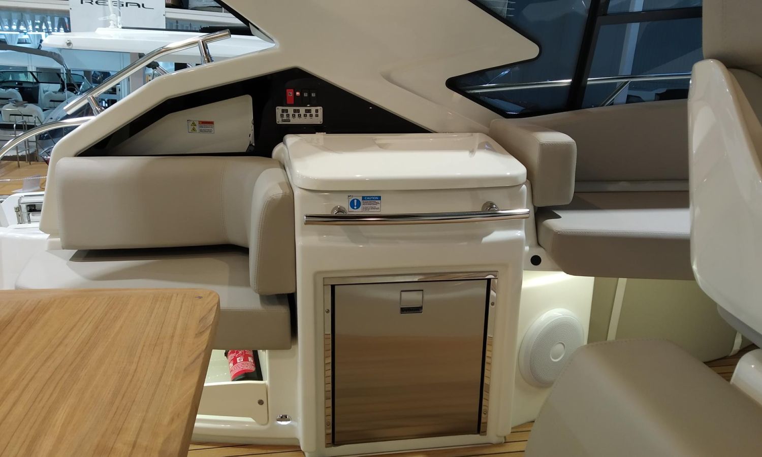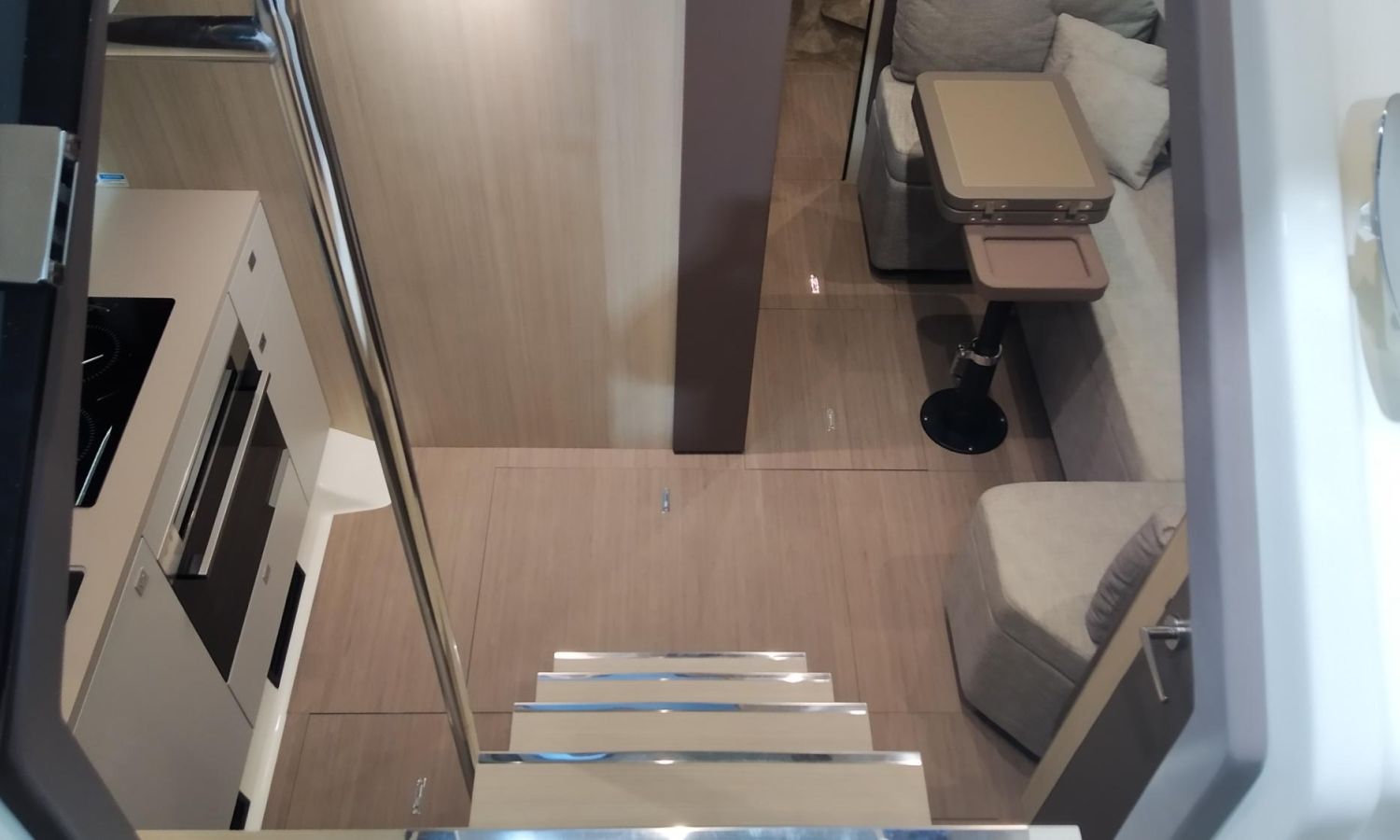 Waste water tank - Air conditioning system 16.000 BTU in cabins with heat pump - Air conditioning system 16.000 BTU cockpit cooling - Hood for complete stern closing - Bow thruster with automatic fire extinguisher - Cockpit refrigerator - GPS+ Chartplotter - 8 kW generator - Hydraulic gangway - Foldable raising platform in teak for driving position - Autopilot - Teak laid cockpit - VHF / DSC - Copy of CE certificate and declaration of conformity - Hard top colour lacquered - Preparation, launching, delivery and sea trial - Transport shipyard to Costa Brava.Boat description
