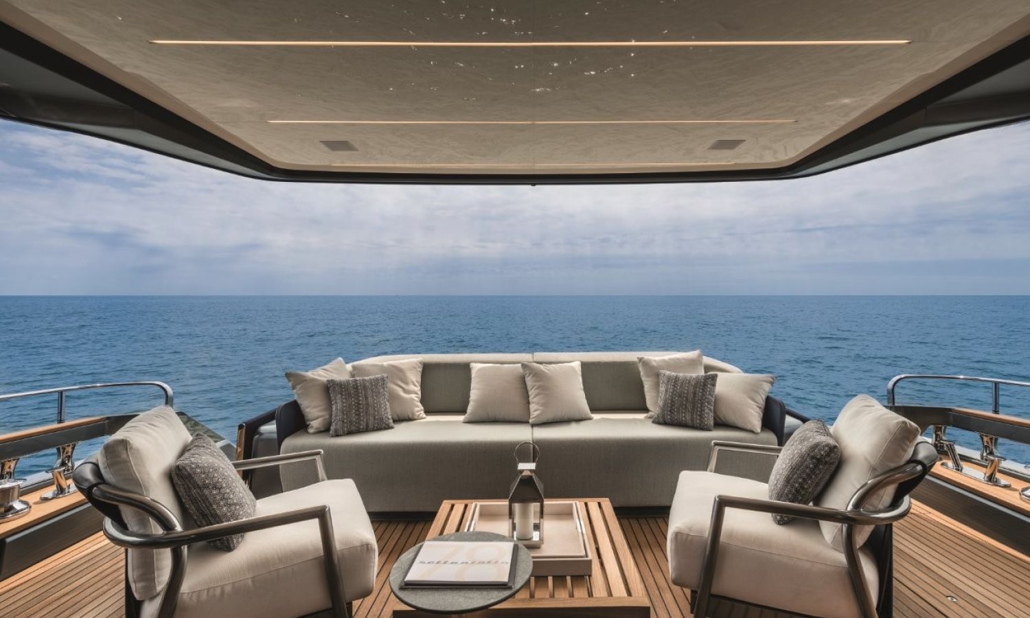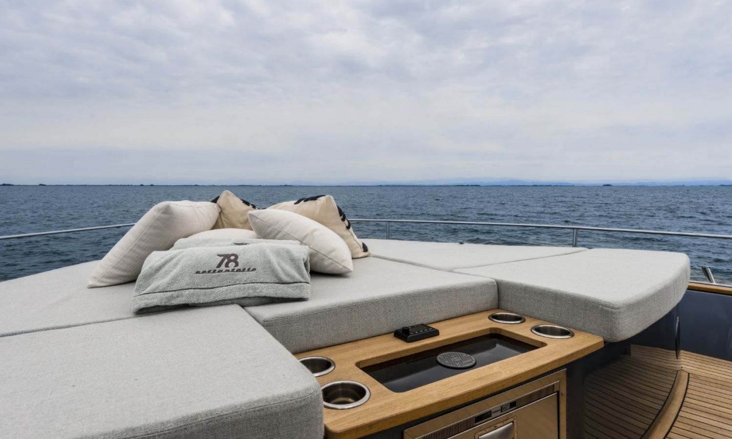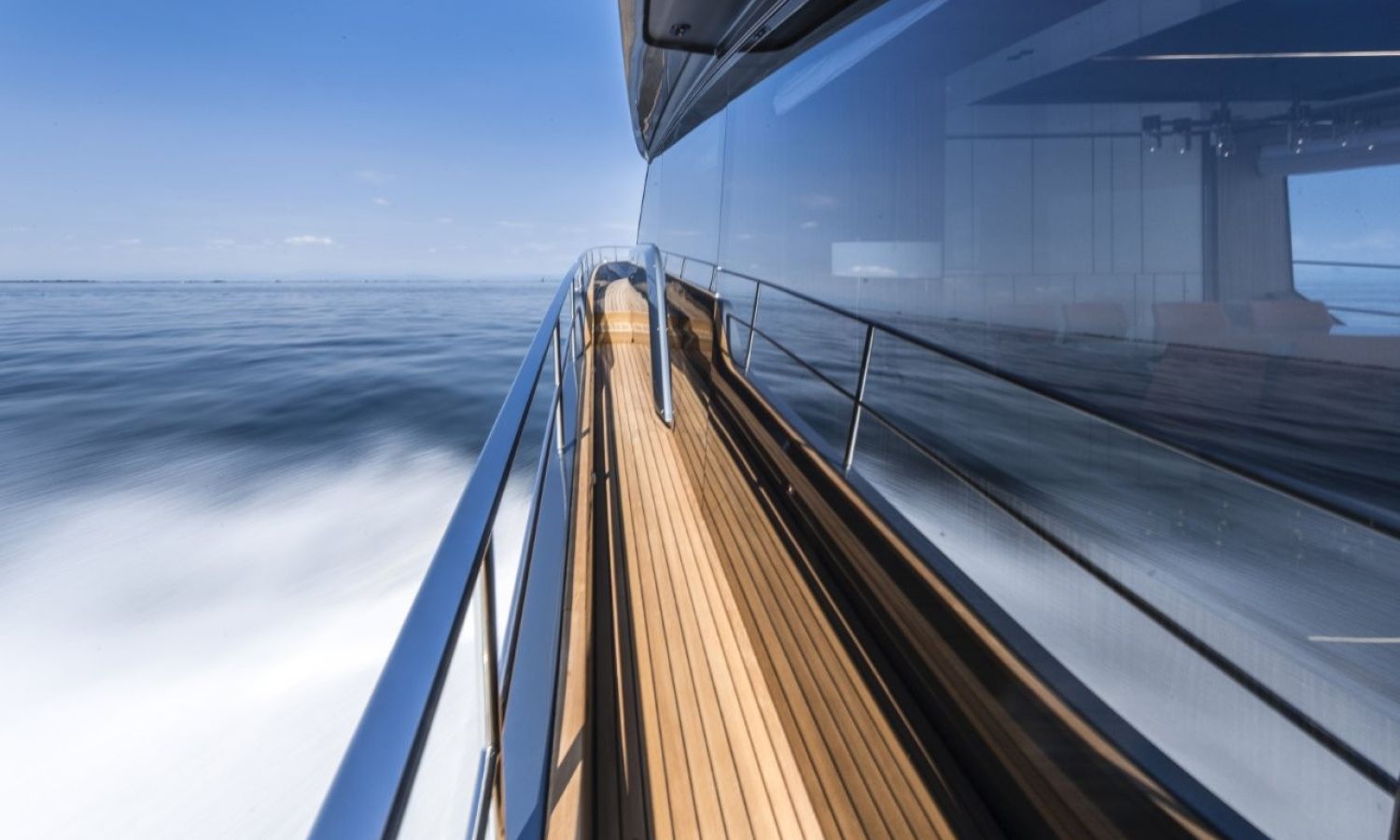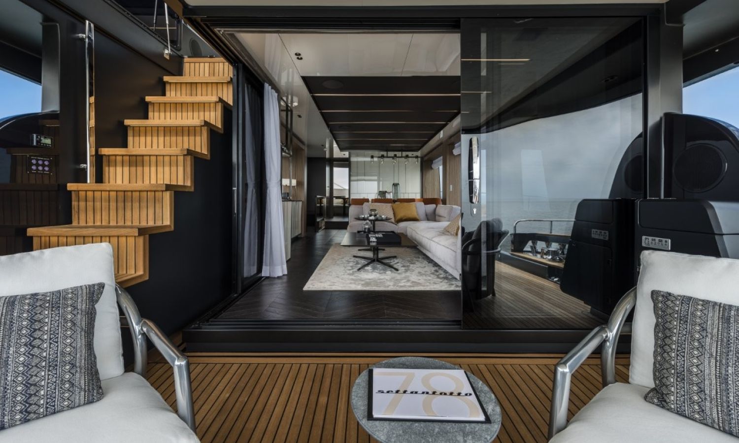 Settantotto 78 is the newflagship model of Cranchi Yachts. In its 24 meters, you will find its grandeur as a whole and the impeccable attention to detail. The Settantotto´s shape reflects the muscularity of a yacht that can handle the sea in any condition. Perfect hull, high flared bow, and secure and pronounced gunwale.