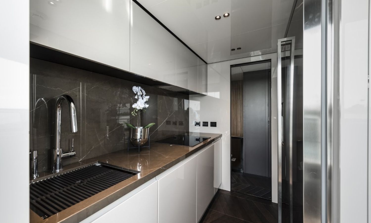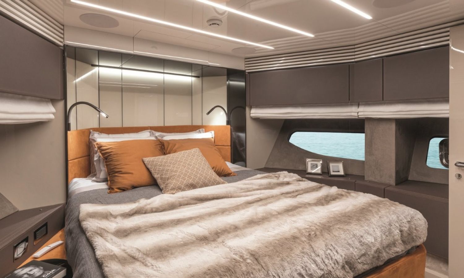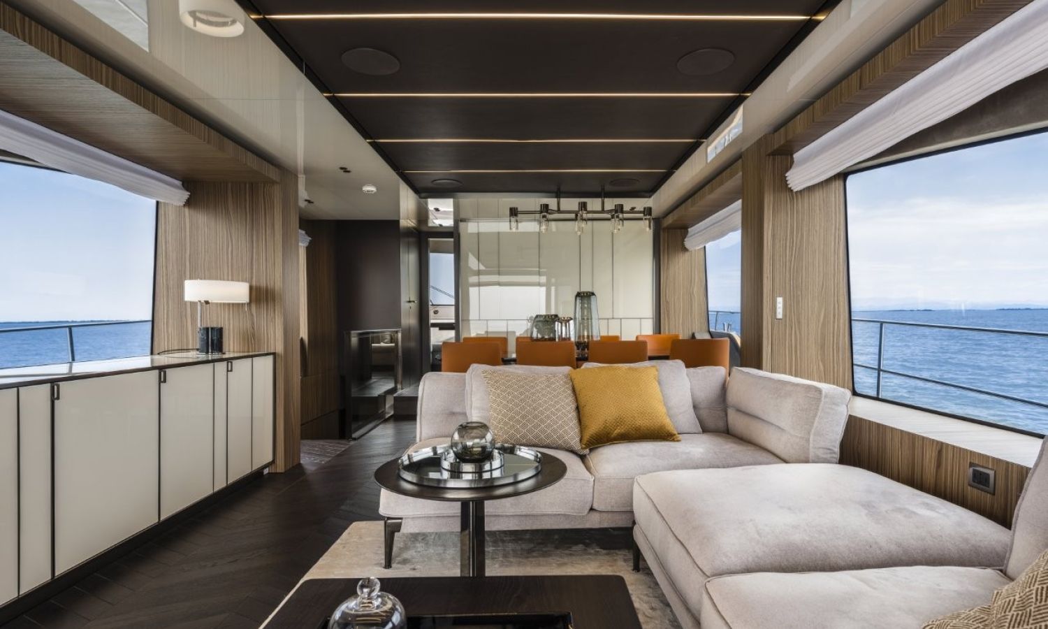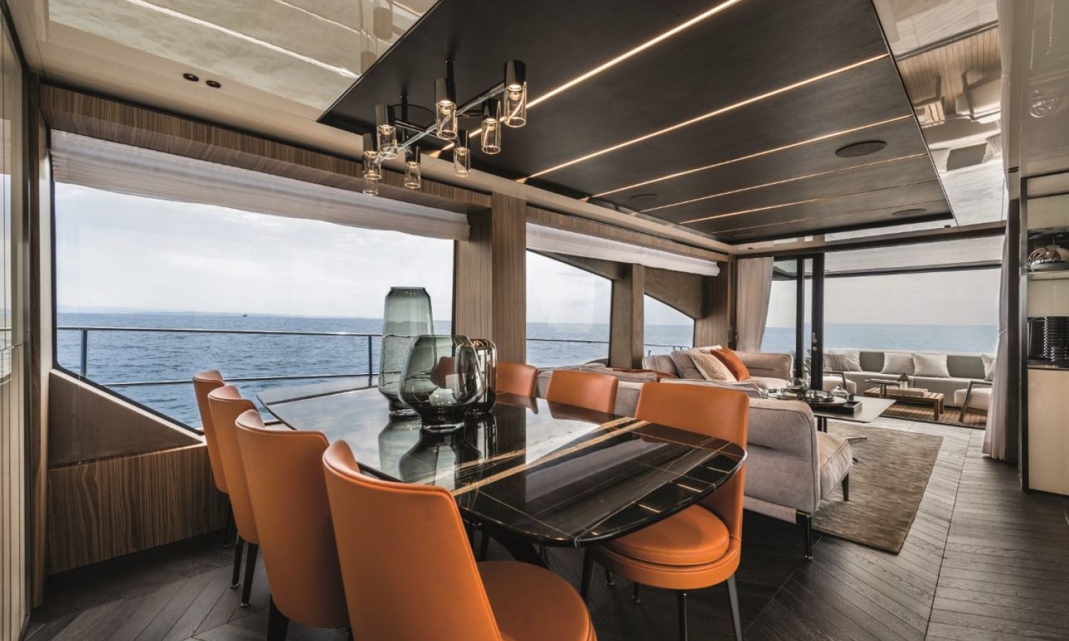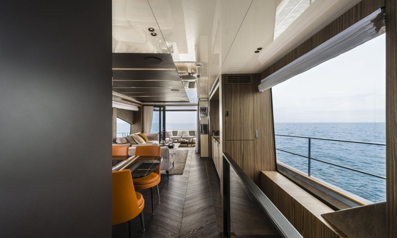 Settantotto 78 is the newflagship model of Cranchi Yachts. In its 24 meters, you will find its grandeur as a whole and the impeccable attention to detail. The Settantotto´s shape reflects the muscularity of a yacht that can handle the sea in any condition. Perfect hull, high flared bow, and secure and pronounced gunwale.
