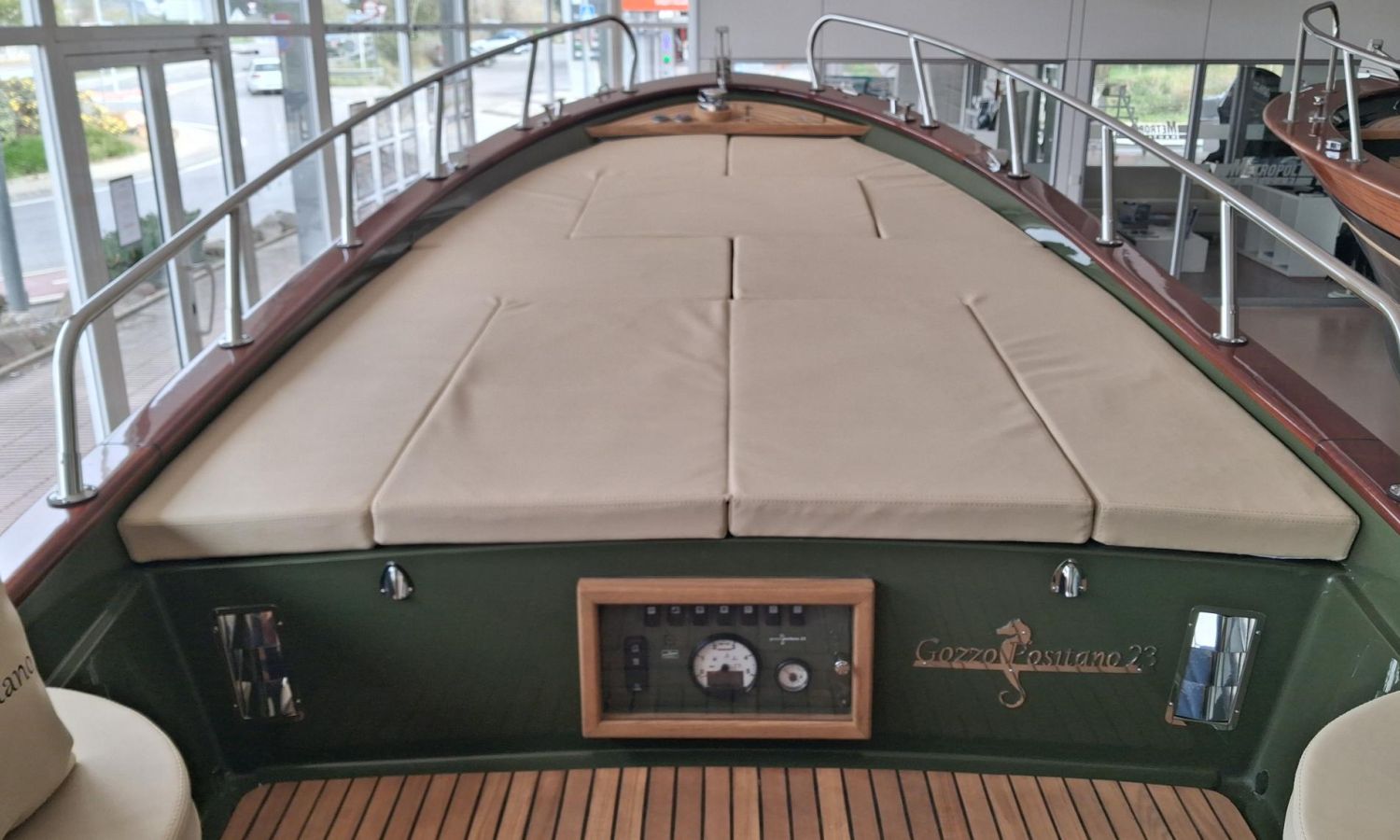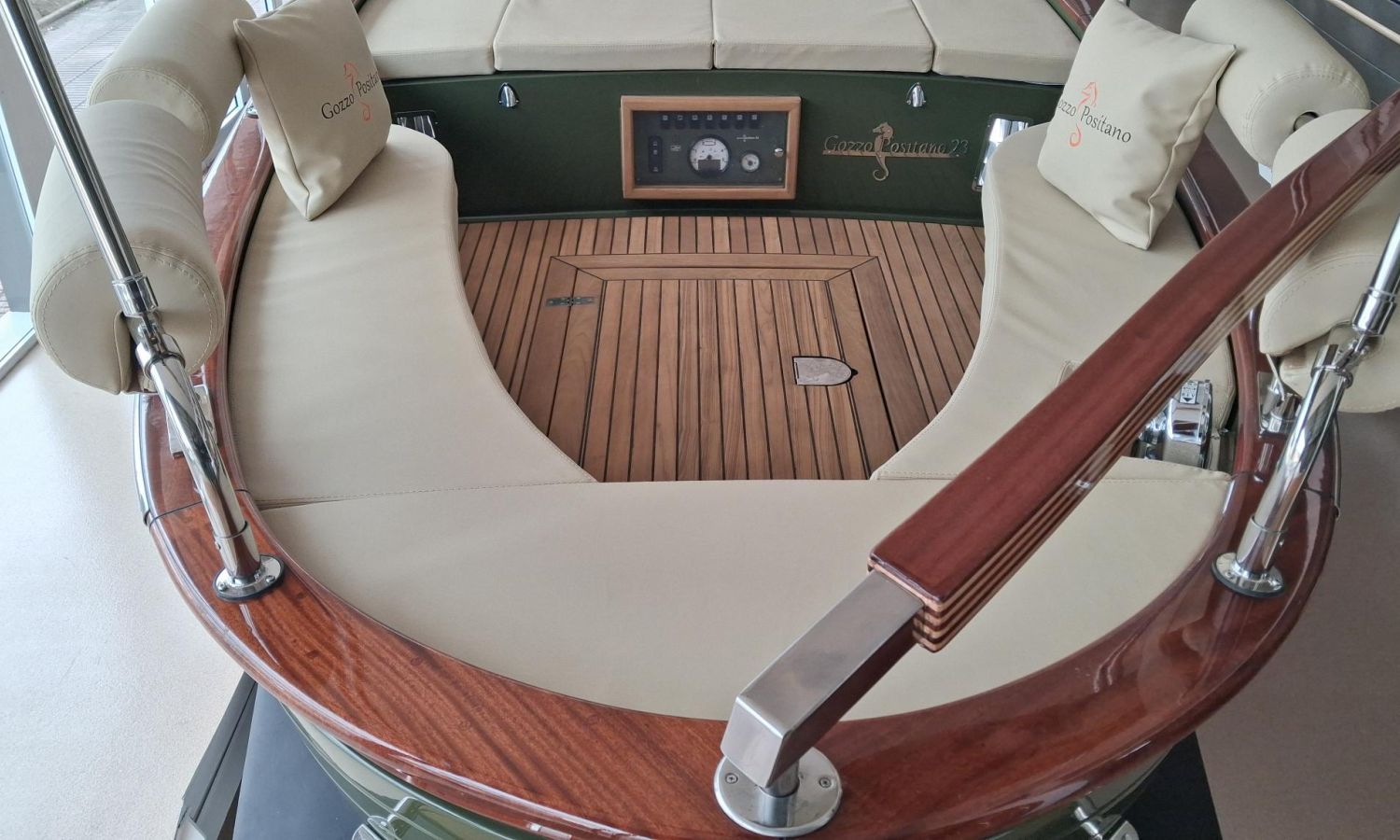 Boat in stock. Immediate delivery. Model Positano 23 of the Neapolitan shipyard Gozzo Positano of 7 meters in total length. Boat with comfortable bathing platform, spacious layout.PAL-Nº P2302