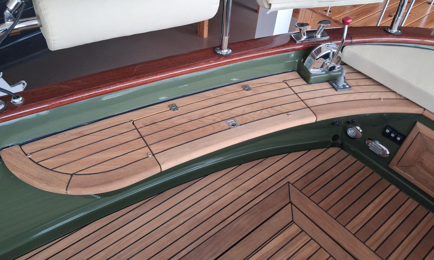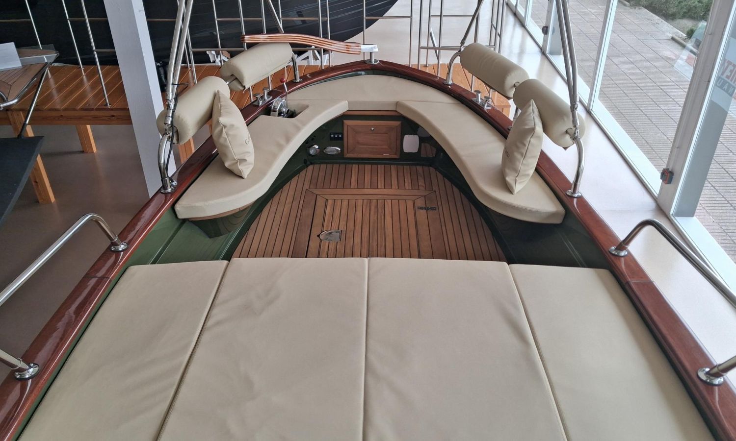 Exterior cushions - Bimini top - Stern shower with 110 l water tank - Stern platform with bathing ladder - Teak laid cockpit (only stern) - Electric anchor winch, anchor and chain - Bow thruster - Microperforated sun covers (1 side and 1 stern) - Preparation, launch and delivery with sea trial - Transport Shipyard-Costa Brava.Boat description