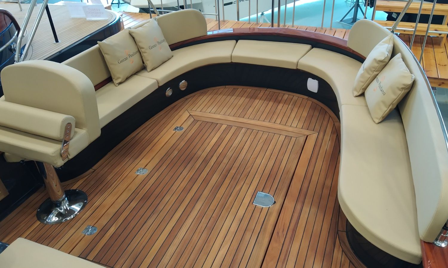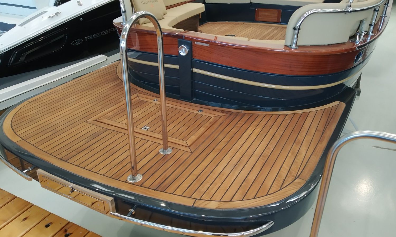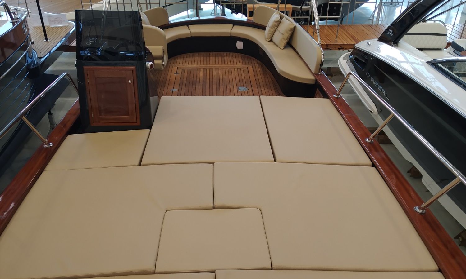 Console with instruments and pilot seat - Console cover - Exterior sun cushions - Interior cushions - Stern shower with water tank - Bow thruster - Electric anchor winch with chain and anchor - Stern platform in fiberglass and teak with bathing ladder - Teak laid cockpit (only stern) - Bimini top - Microperforated bimini top upgrade (1 back and 1 side) - Preparation, launch and delivery with sea trial - Transport shipyard to Costa Brava.Boat description