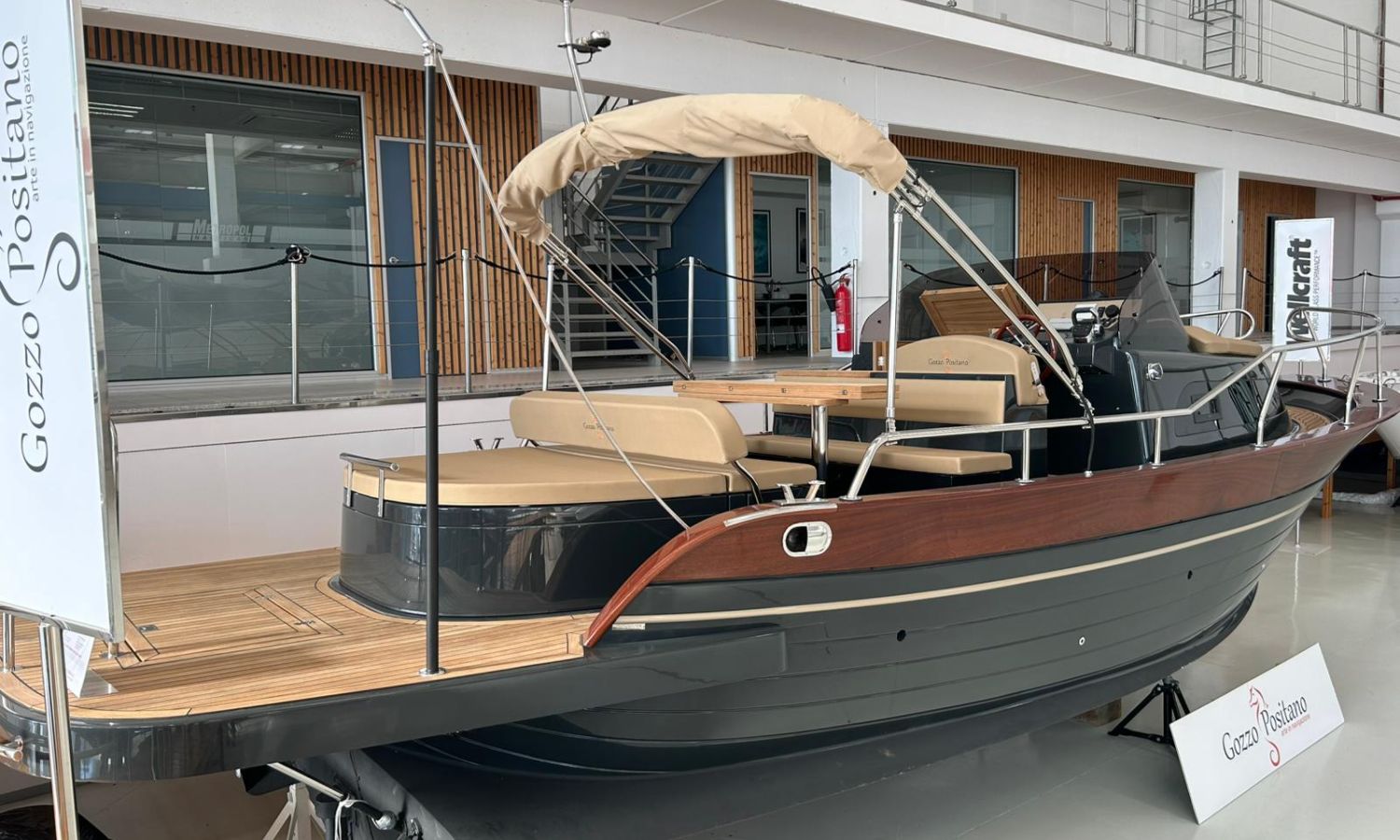 Boat in stock. Immediate delivery. Model Positano 28 Sole of the Neapolitan shipyard Gozzo Positano of 8,60 meters in total length. Boat with big bathing platform and spacious layout.EMP-Nº N2805