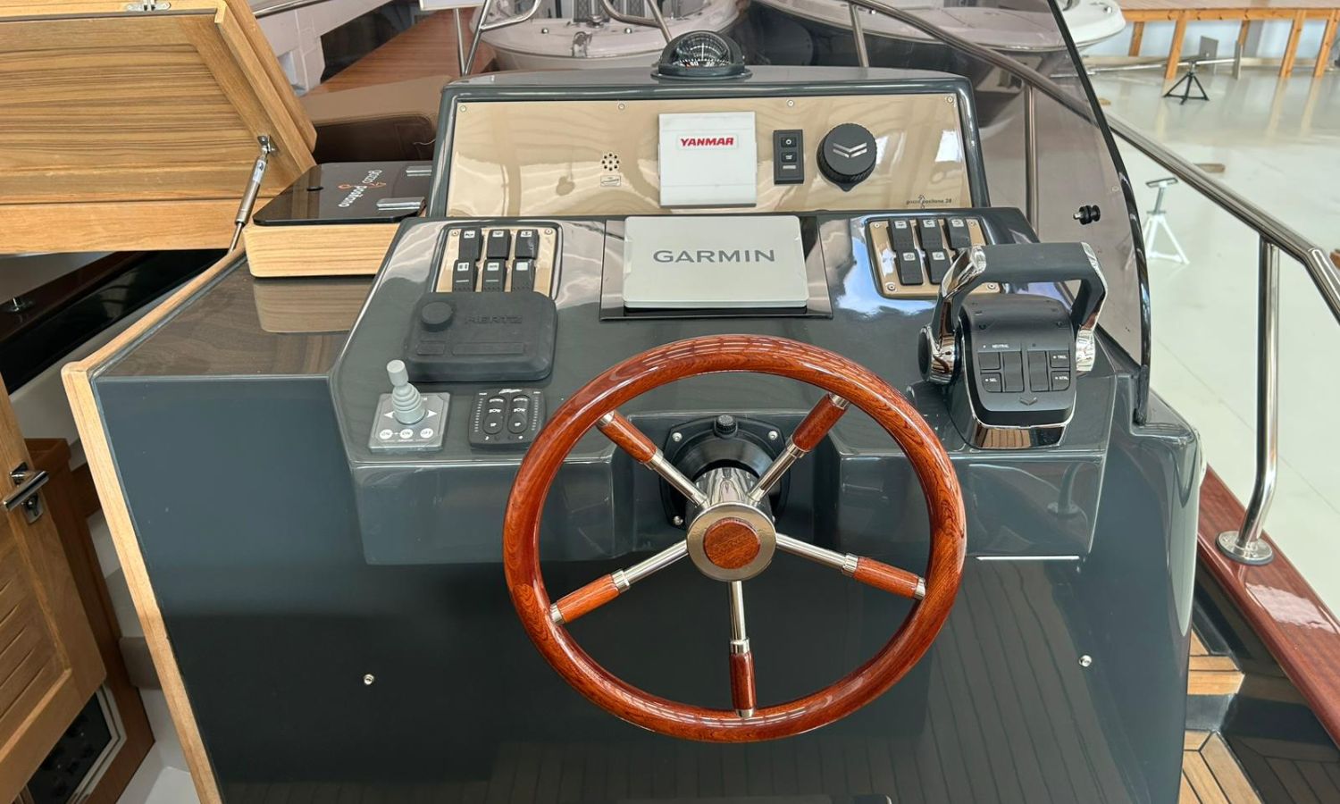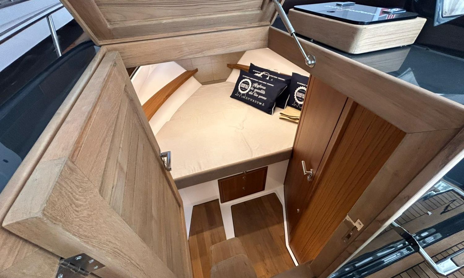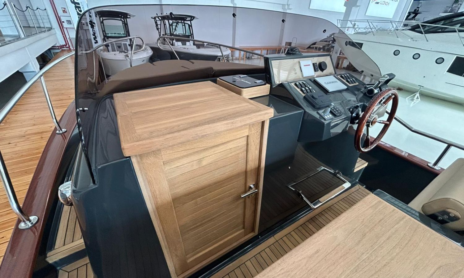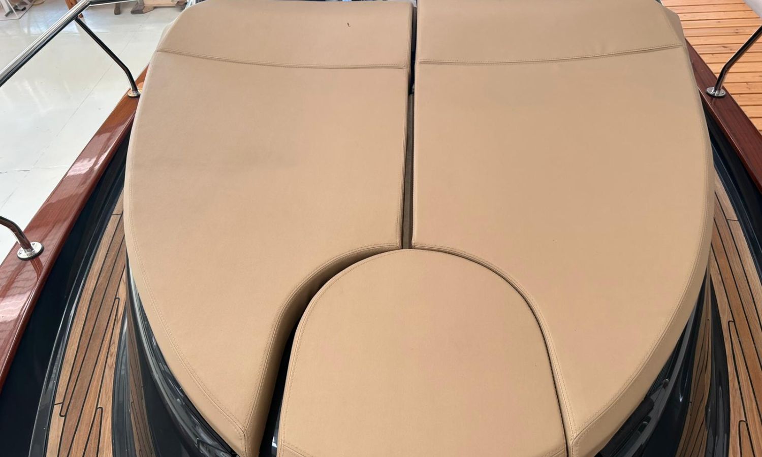 Bimini top with SS arch - Electric anchor winch, anchor and chain - Cockpit refrigerator - Cockpit table - Exterior kitchen and sink - Bow thruster - Exterior deck, seats and aft sunbathing cushions - Console cover - Teak laid stern platform with bathing ladder - Battery charger and shore power 220 V - Stereo system and speakers - 2 microperforated bimini top upgrade (1 back and 1 side) - GPS Garmin 9"- Cockpit led lighting - Stern shower mast - Preparation, launching and delivery with sea trial - Transport shipyard to Costa Brava.Boat description