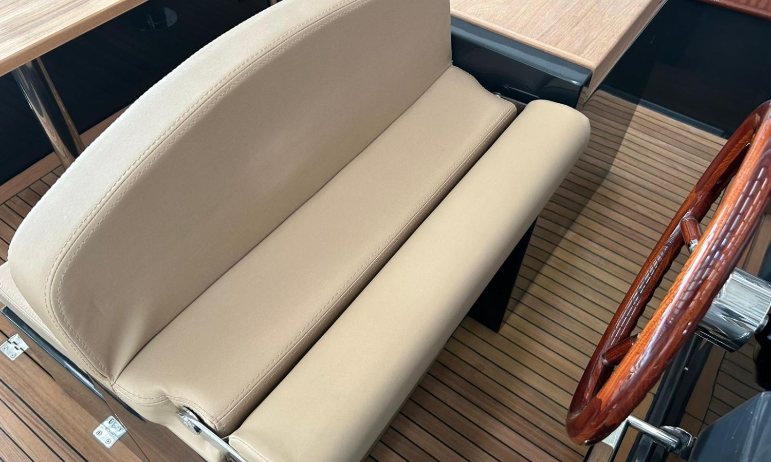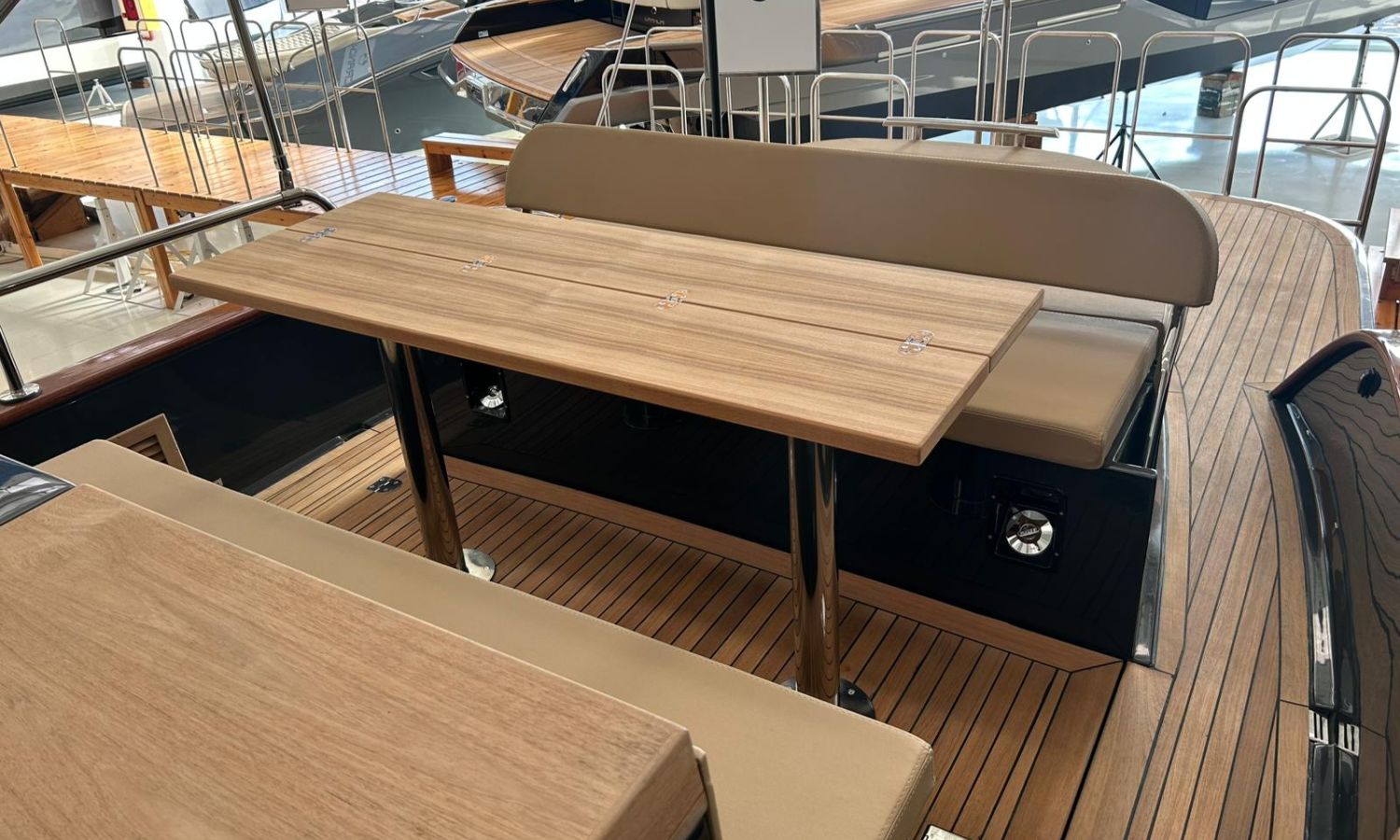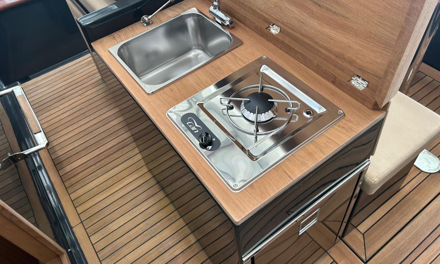 Bimini top with SS arch - Electric anchor winch, anchor and chain - Cockpit refrigerator - Cockpit table - Exterior kitchen and sink - Bow thruster - Exterior deck, seats and aft sunbathing cushions - Console cover - Teak laid stern platform with bathing ladder - Battery charger and shore power 220 V - Stereo system and speakers - 2 microperforated bimini top upgrade (1 back and 1 side) - GPS Garmin 9"- Cockpit led lighting - Stern shower mast - Preparation, launching and delivery with sea trial - Transport shipyard to Costa Brava.Boat description