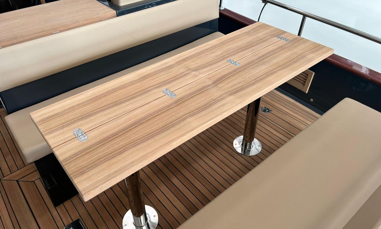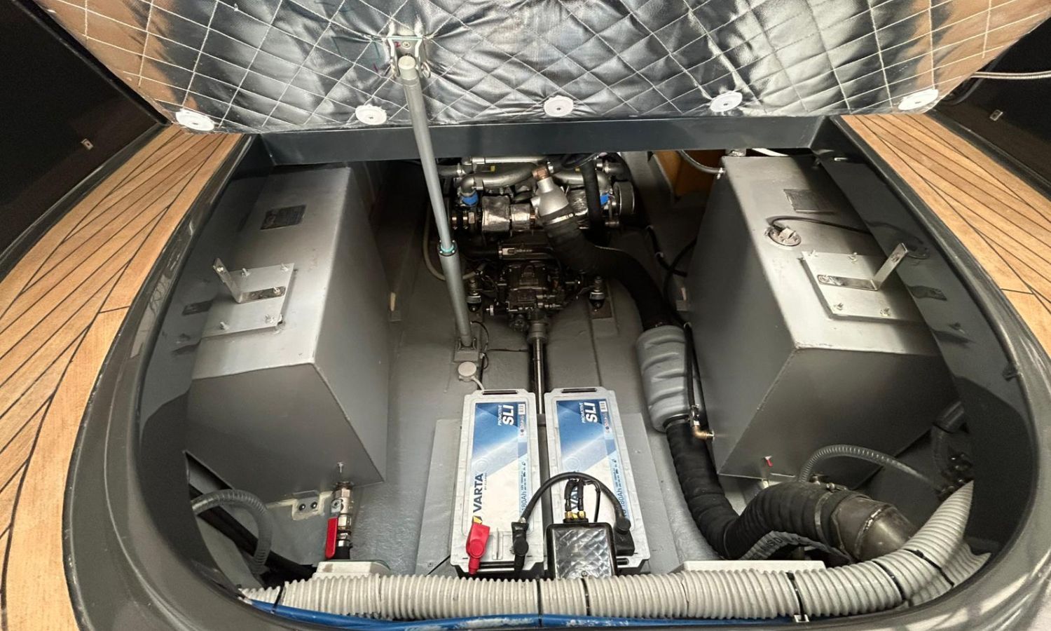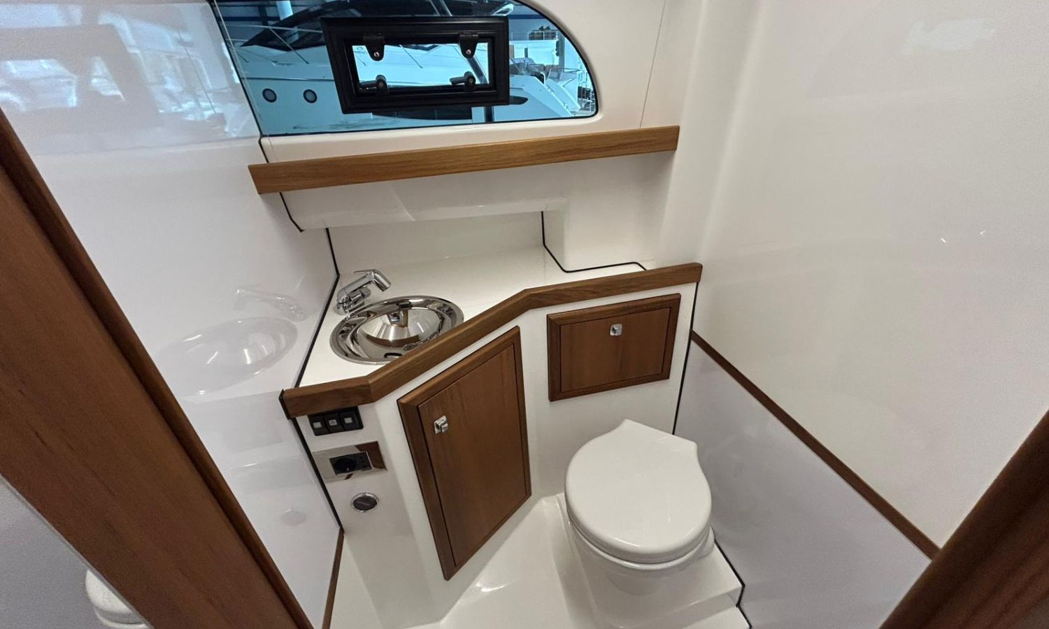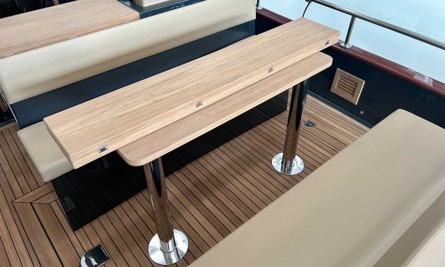 Bimini top with SS arch - Electric anchor winch, anchor and chain - Cockpit refrigerator - Cockpit table - Exterior kitchen and sink - Bow thruster - Exterior deck, seats and aft sunbathing cushions - Console cover - Teak laid stern platform with bathing ladder - Battery charger and shore power 220 V - Stereo system and speakers - 2 microperforated bimini top upgrade (1 back and 1 side) - GPS Garmin 9"- Cockpit led lighting - Stern shower mast - Preparation, launching and delivery with sea trial - Transport shipyard to Costa Brava.Boat description