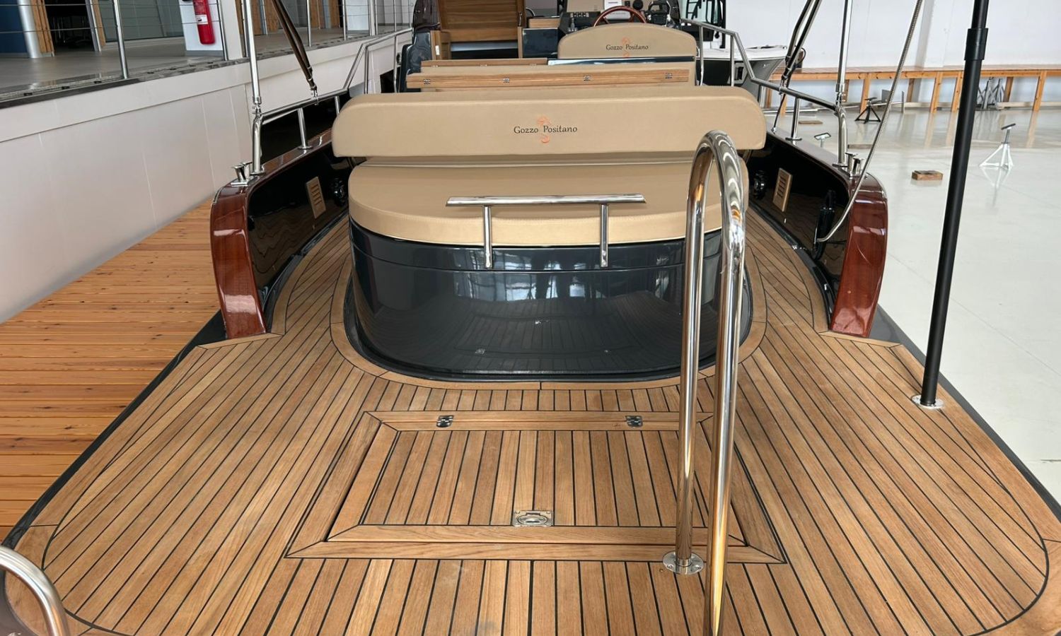 Boat being produced. Delivery April 2026. Stock photos, colours and equipment may not correspond exactly to the offered unit. Model Positano 28 Sole of the Neapolitan shipyard Gozzo Positano of 8,60 meters in total length. Boat with big bathing platform and spacious layout.AST-Nº 01