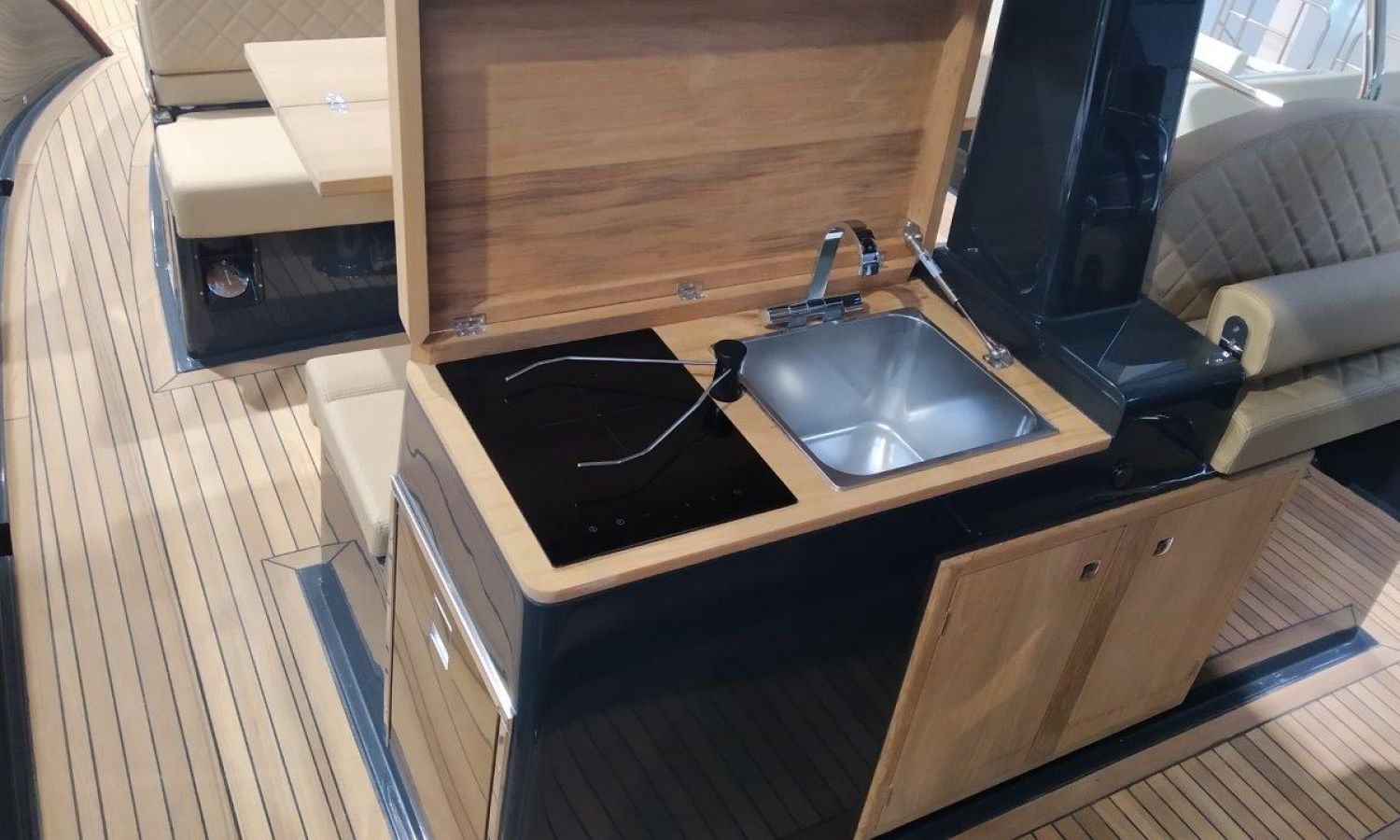 Joystick Yanmar - T-Top - Anchor and chain - Vetus bow thruster for Yanmar Joystick - Covers set - GPS Garmin 12" - Stern bimini extension - Electronic engine controls - Stereo system with speakers - Exterior induction kitchen - Inverter + panel - Stern shower mast - Preparation, launch and delivery with sea trial - Transport shipyard to Costa Brava.Boat description