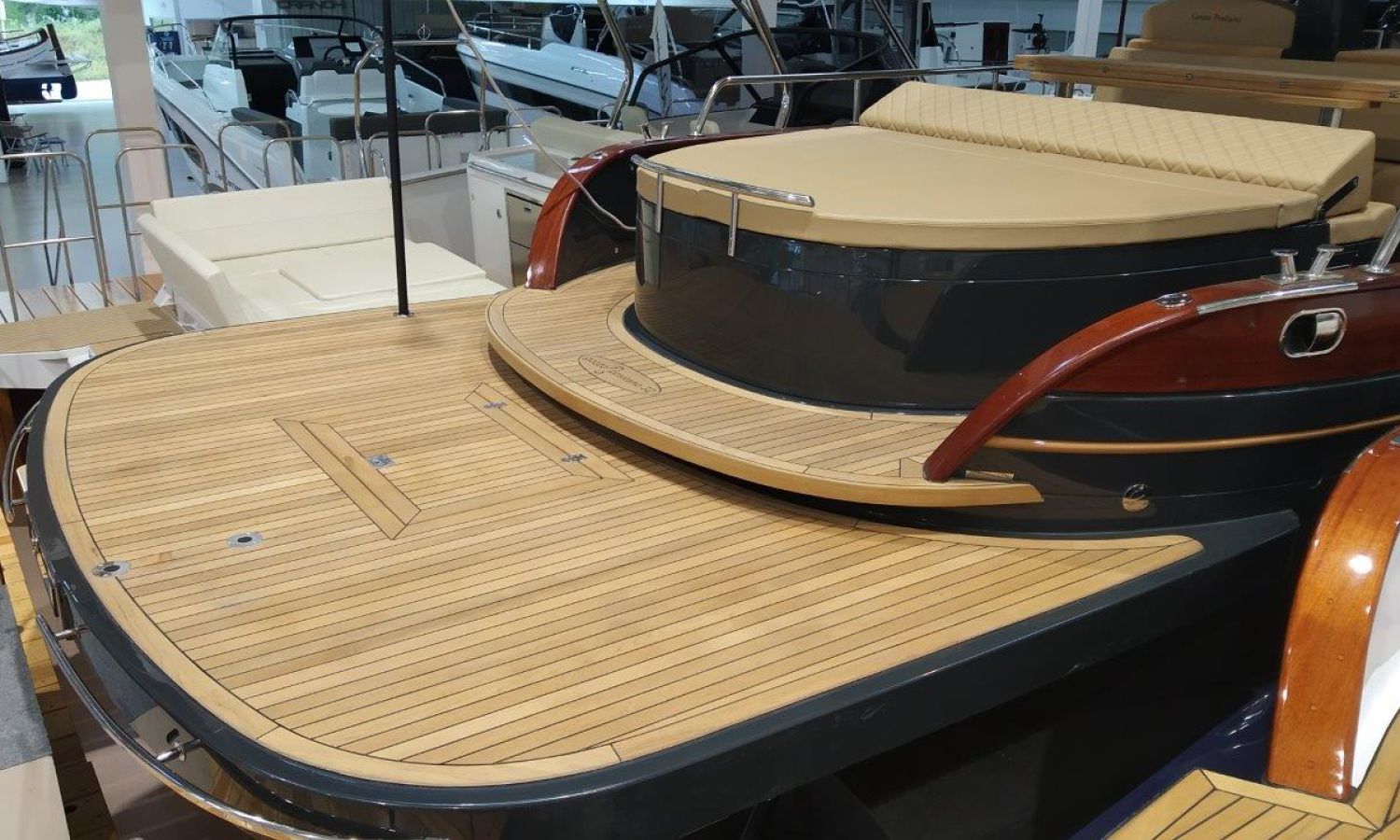 Boat being produced. Delivery in April 2026. Stock photos, equipment may not correspond exactly to the offered unit. Model Positano 32 Open of the Neapolitan shipyard Gozzo Positano of 10,50 meters in total length. Boat with spacious bathing platform, large table and seating area and large bow and stern sundecks.AST-Nº 01