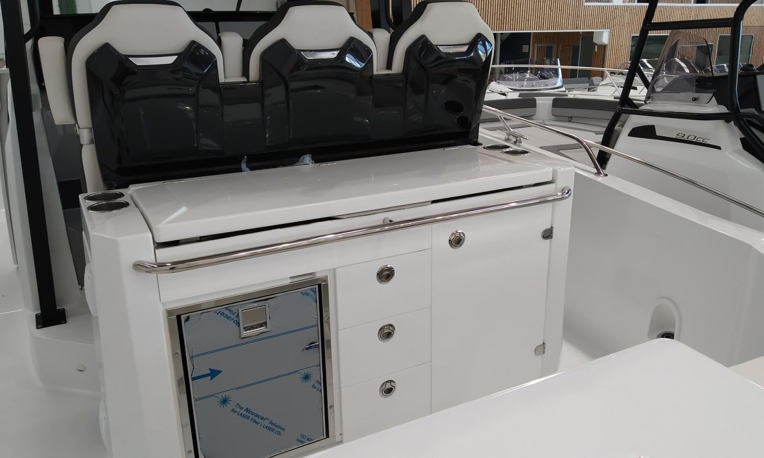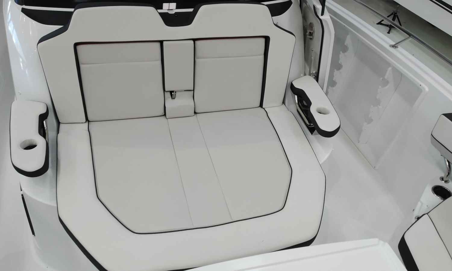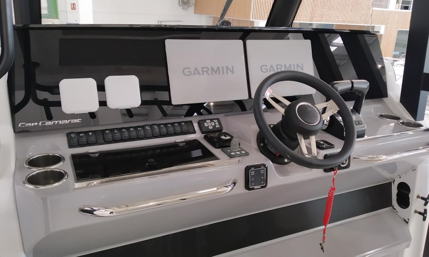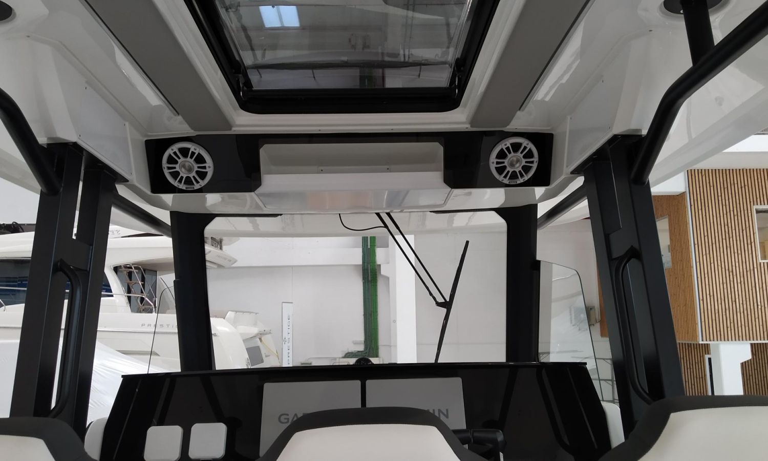 PREMIUM AUDIO PACK FOR BOAT WITH HARD TOP, UPHOLSTERY IN SALOON PVC MARLIN PURE WHITE, SET OF PROTECTIVE COVERS, SUNSHADE FOR FRONT SUNPAD, DARK SMOKE SUNSHADE FOR FRONT COCKPIT SUNWORKER, MANUAL T-TOP SLIDING HATCH, ELECTRONIC PACK GARMIN UPGRADED 2, COMFORT PACK, TRIM LEVEL PREMIERE SILVERTEX ICE, BOW THRUSTER, SEA PUMP FOR DECK WASHING, DECK SEARCHLIGHT FOR T-TOP, 2 FRONT HEADLIGHTS ON THE ROOF (2 LED LIGHT BARS), CLAXON, LUXURY FOLDING SIDE BENCH ON PORTSIDE + CUSHION, BOWPLATFORM WITH LADDER, POLYESTER SWIMMING PLATFORMS, COCKPIT TABLE POLYESTER, AUTOMATIC TRIM TABS ZIPWAKE, STORAGE RACK ON THE ROOF, GAS STOVE IN KITCHEN COCKPIT, FRONT COCKPIT GRP TABLE WITH POLYESTER, EXTRA FOR BOW SUNSHINE XXL, FRIDGE IN TUB 49L, FOLDABLE FORWARD FACING BACKRESTS IN FRONT COCKPIT, COCKPIT UPHOLSTERY SILVERTEX ICE DIAMANTE CARBON, DOUBLE BERTH COMPLEMENT IN SALOON, PRE-RIGGING ENGINE SUZUKI 2X (150-350 CV), INSTALLATION MOTOR INCLUDED, POWER STEERING SYSTEM FOR SUZUKI DUOPROP ENGINES.