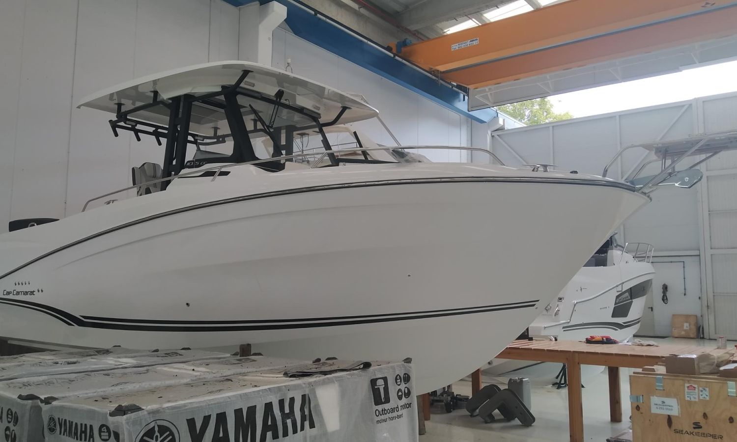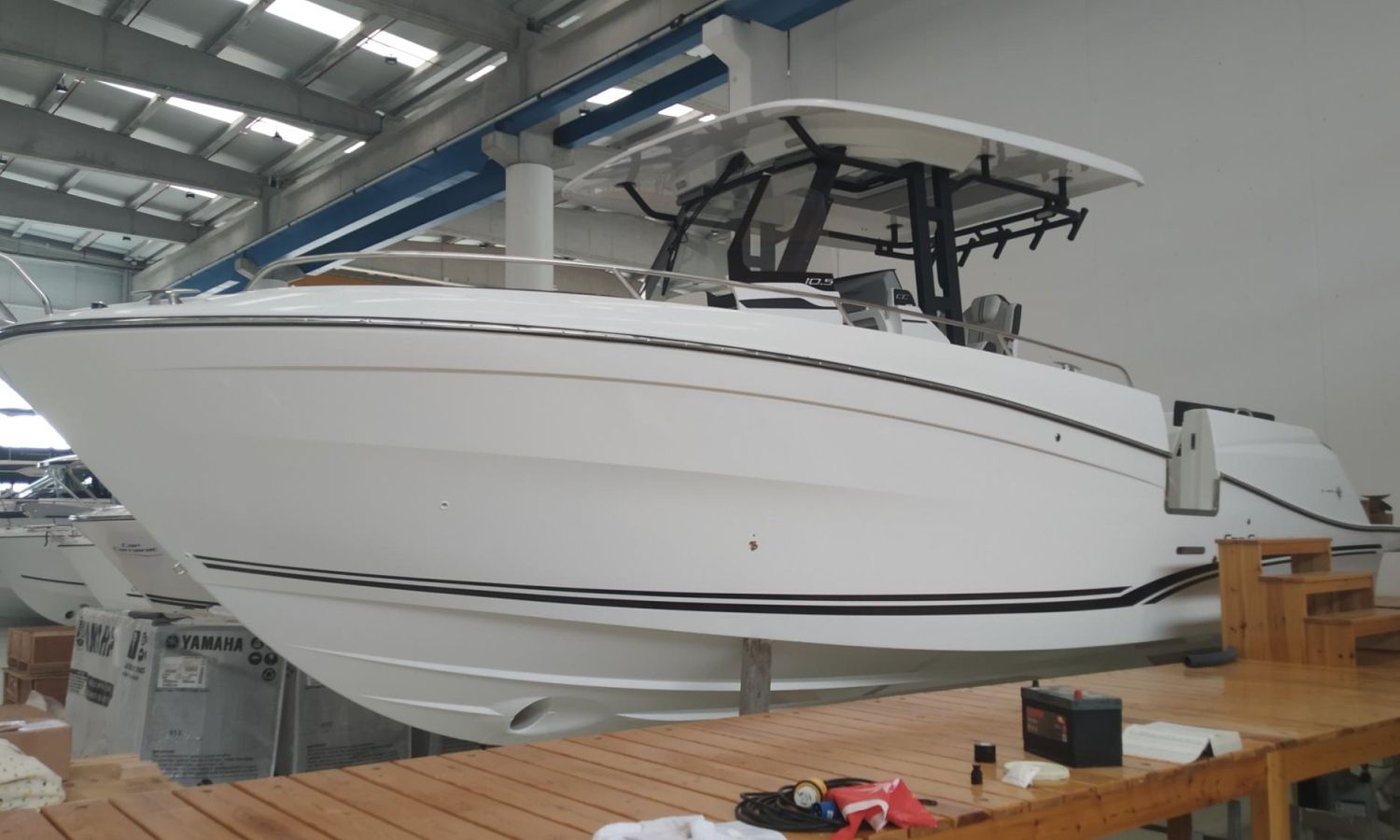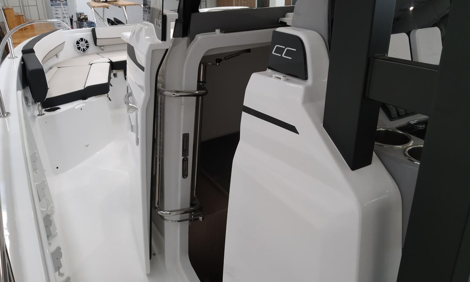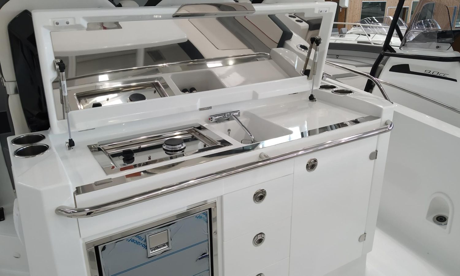 PREMIUM AUDIO PACK FOR BOAT WITH HARD TOP, UPHOLSTERY IN SALOON PVC MARLIN PURE WHITE, SET OF PROTECTIVE COVERS, SUNSHADE FOR FRONT SUNPAD, DARK SMOKE SUNSHADE FOR FRONT COCKPIT SUNWORKER, MANUAL T-TOP SLIDING HATCH, ELECTRONIC PACK GARMIN UPGRADED 2, COMFORT PACK, TRIM LEVEL PREMIERE SILVERTEX ICE, BOW THRUSTER, SEA PUMP FOR DECK WASHING, DECK SEARCHLIGHT FOR T-TOP, 2 FRONT HEADLIGHTS ON THE ROOF (2 LED LIGHT BARS), CLAXON, LUXURY FOLDING SIDE BENCH ON PORTSIDE + CUSHION, BOWPLATFORM WITH LADDER, POLYESTER SWIMMING PLATFORMS, COCKPIT TABLE POLYESTER, AUTOMATIC TRIM TABS ZIPWAKE, STORAGE RACK ON THE ROOF, GAS STOVE IN KITCHEN COCKPIT, FRONT COCKPIT GRP TABLE WITH POLYESTER, EXTRA FOR BOW SUNSHINE XXL, FRIDGE IN TUB 49L, FOLDABLE FORWARD FACING BACKRESTS IN FRONT COCKPIT, COCKPIT UPHOLSTERY SILVERTEX ICE DIAMANTE CARBON, DOUBLE BERTH COMPLEMENT IN SALOON, PRE-RIGGING ENGINE SUZUKI 2X (150-350 CV), INSTALLATION MOTOR INCLUDED, POWER STEERING SYSTEM FOR SUZUKI DUOPROP ENGINES.