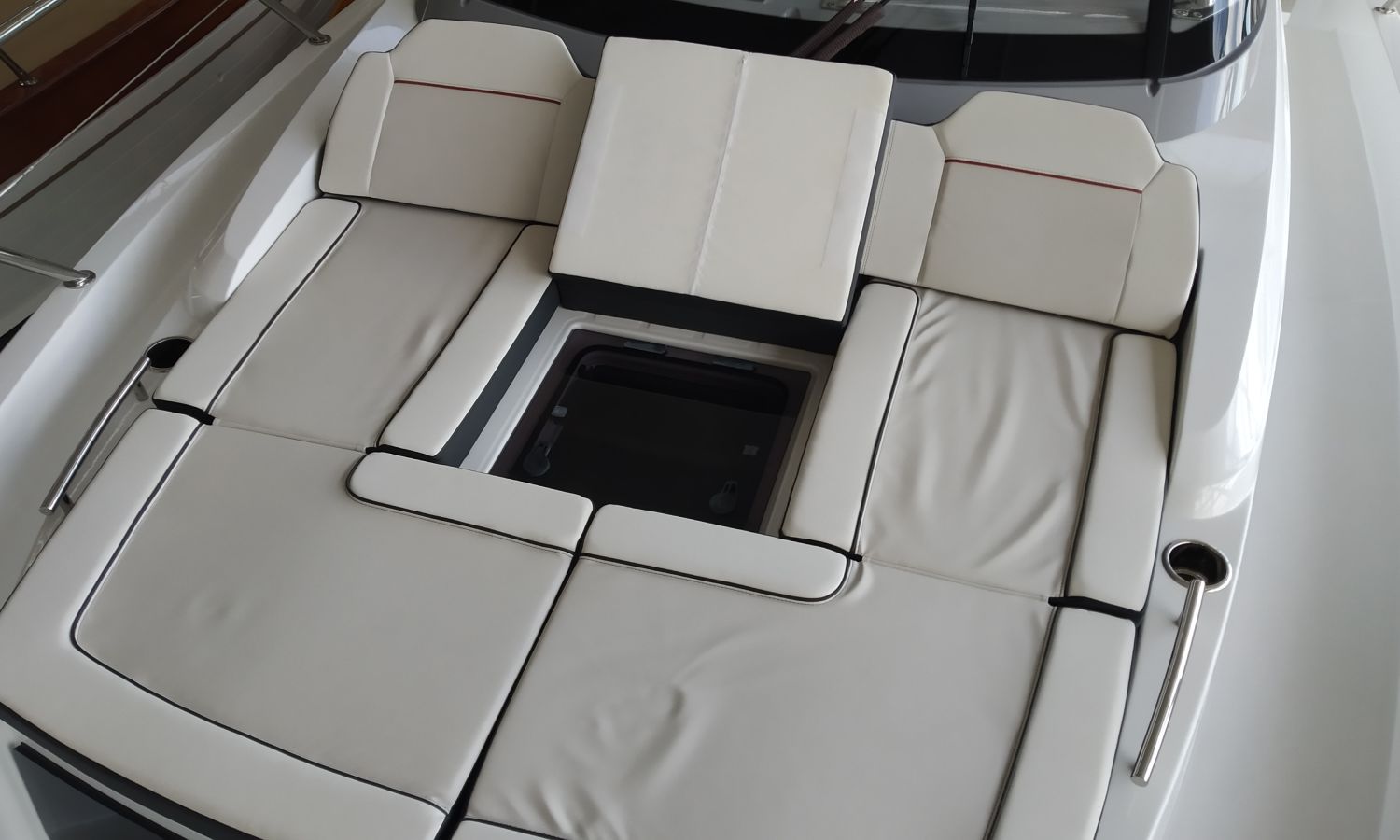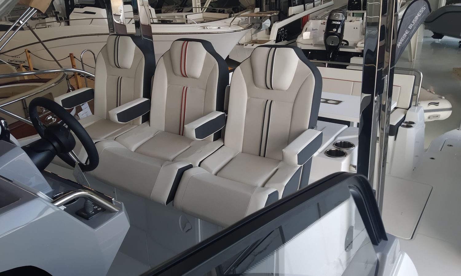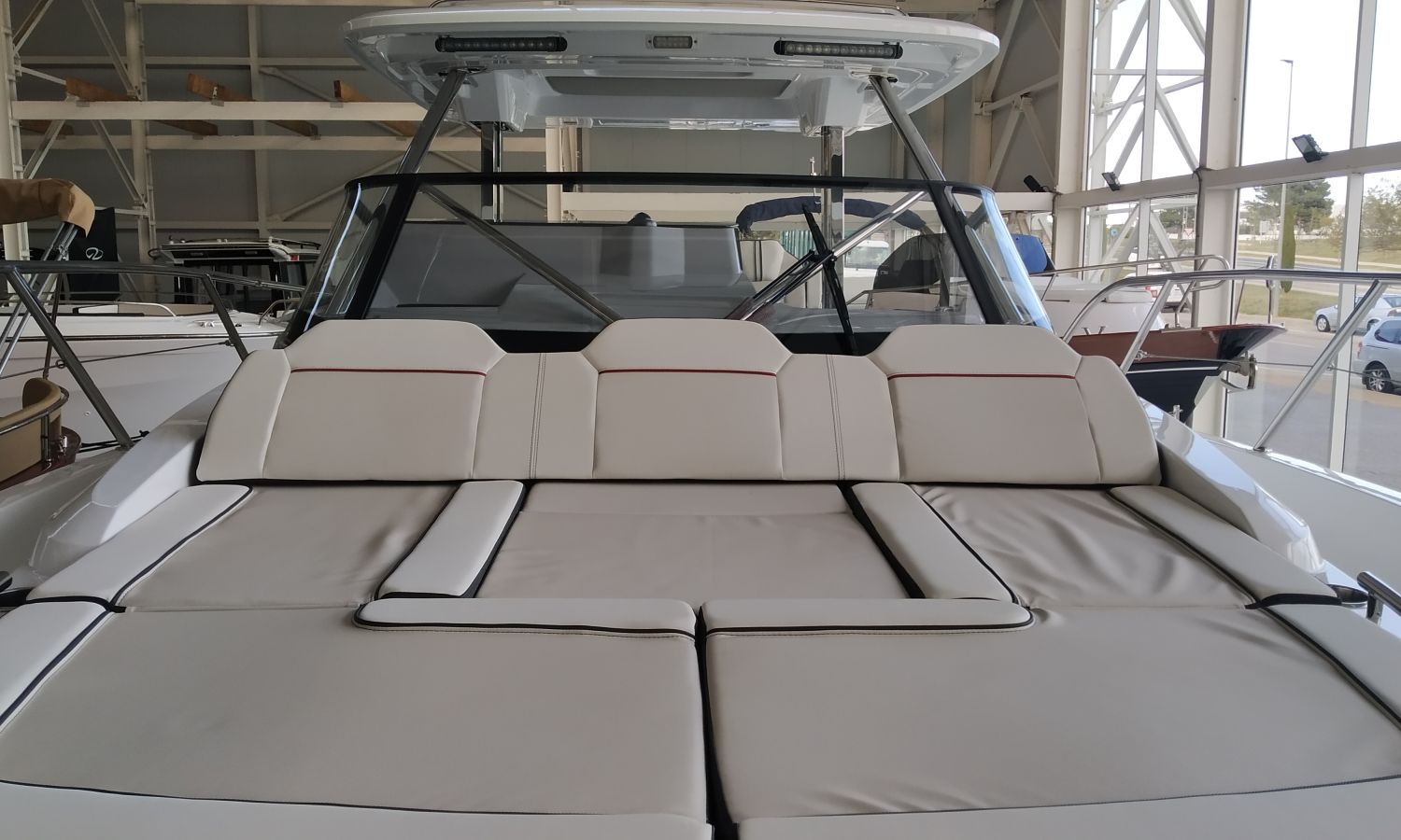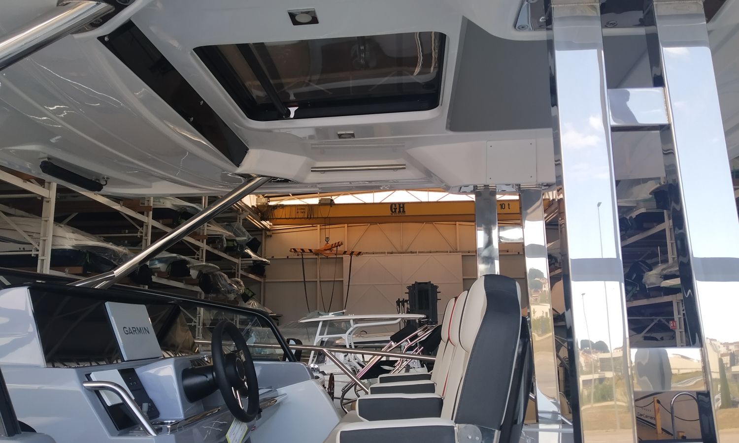 AUDIO PACK FUSIONRA70N, UPHOLSTERY INSALOONPVC MARLINPUREWHITE, ADDITIONALEXPENSESFOR CLOSEDAFT CABWITH DOOR, T-TOP, ELECTRONIC PACK GARMINUPGRADED, TRIM LEVELPREMIERE, BOWTHRUSTER, DECKWATER INLET, SKI MAST, 2 ROD HOLDERS, 2FRONT HEADLIGHTS ONTHE ROOF(2 LED LIGHT BARS), CLAXON, BOWPLATFORMWITH LADDER, POLYESTER SWIMMING PLATFORMS, WINDSCREENWIPER +SCREENWASH SYSTEM, AUTOMATIC TRIM TABSZIPWAKE, STORAGE RACK ONTHE ROOF, GASSTOVEINKITCHENCOCKPIT, POLYESTER COCKPITTABLEWITH TELESCOPIC LEGSFOR SUNPAD, EXTRAFOR BOWSUNSHINE XXL, BATHROOM LADDERAND GUARD FOR SIDEPLATFORM, FRIDGEINTUB 49L, ADJUSTABLESUNBATHING BACKRESTAFT COCKPIT, DOUBLE BERTH COMPLEMENTINSALOON, SHOWER DOORWITH TOILETSEAT, FRESHWATER ELECTRIC TOILET, DOUBLE BERTH FILLER INAFT CABIN, PRE-WIRING FOR MICROWAVE OVEN, PRE-RIGGING YAMAHAHMEX 2X250-300 SBWELECTRICAL DIRECTION, UPGRADE YAMAHAJOYSTICK TWINSBW, SHIPYARD-COAST-BRAVA TRANSPORT, INSTALLATION MOTOR INCLUDED.