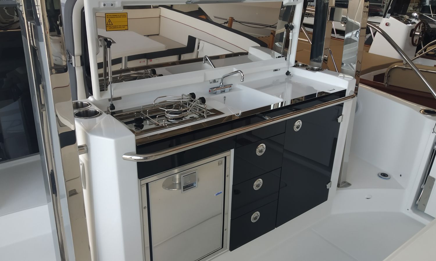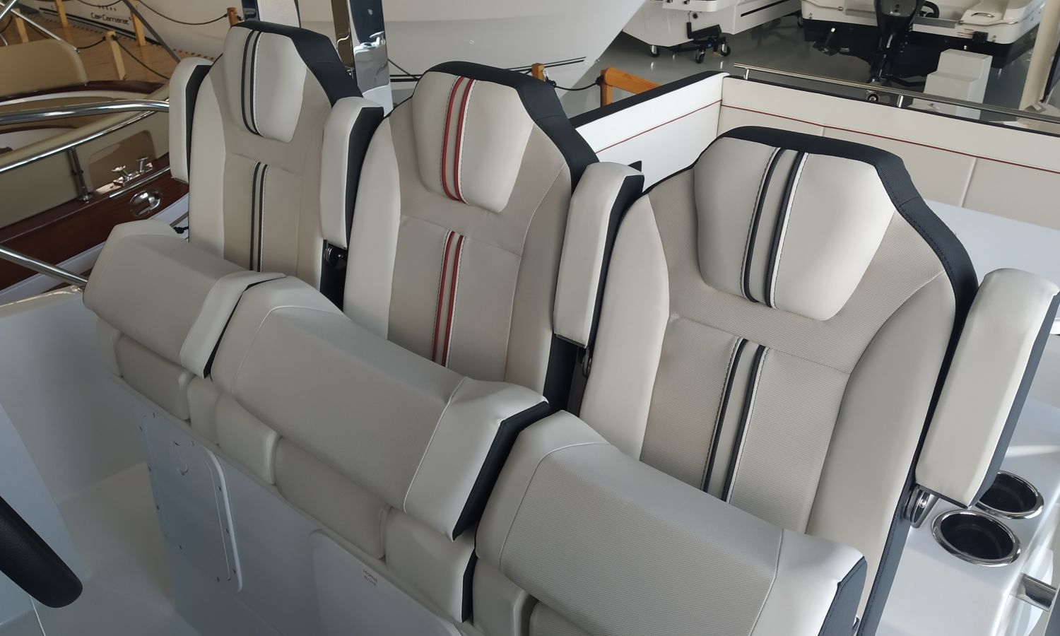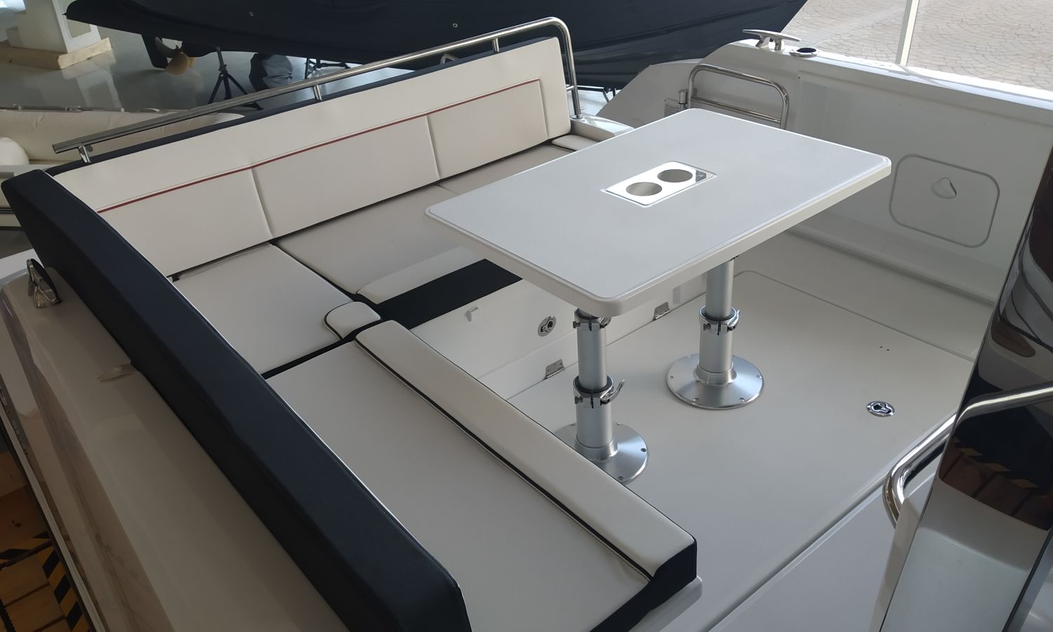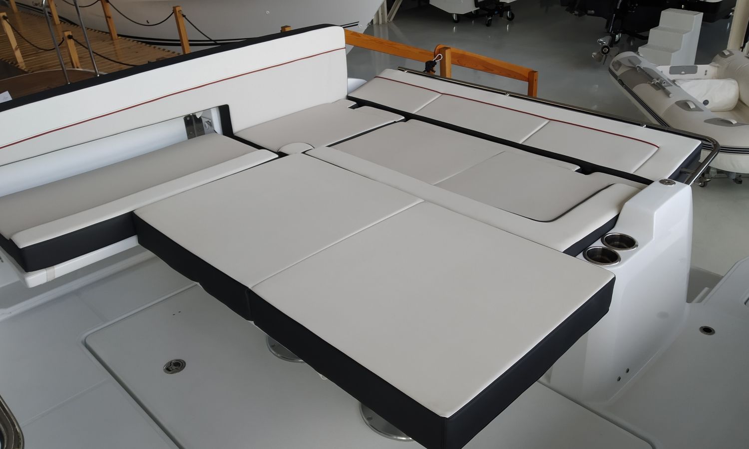 AUDIO PACK FUSIONRA70N, UPHOLSTERY INSALOONPVC MARLINPUREWHITE, ADDITIONALEXPENSESFOR CLOSEDAFT CABWITH DOOR, T-TOP, ELECTRONIC PACK GARMINUPGRADED, TRIM LEVELPREMIERE, BOWTHRUSTER, DECKWATER INLET, SKI MAST, 2 ROD HOLDERS, 2FRONT HEADLIGHTS ONTHE ROOF(2 LED LIGHT BARS), CLAXON, BOWPLATFORMWITH LADDER, POLYESTER SWIMMING PLATFORMS, WINDSCREENWIPER +SCREENWASH SYSTEM, AUTOMATIC TRIM TABSZIPWAKE, STORAGE RACK ONTHE ROOF, GASSTOVEINKITCHENCOCKPIT, POLYESTER COCKPITTABLEWITH TELESCOPIC LEGSFOR SUNPAD, EXTRAFOR BOWSUNSHINE XXL, BATHROOM LADDERAND GUARD FOR SIDEPLATFORM, FRIDGEINTUB 49L, ADJUSTABLESUNBATHING BACKRESTAFT COCKPIT, DOUBLE BERTH COMPLEMENTINSALOON, SHOWER DOORWITH TOILETSEAT, FRESHWATER ELECTRIC TOILET, DOUBLE BERTH FILLER INAFT CABIN, PRE-WIRING FOR MICROWAVE OVEN, PRE-RIGGING YAMAHAHMEX 2X250-300 SBWELECTRICAL DIRECTION, UPGRADE YAMAHAJOYSTICK TWINSBW, SHIPYARD-COAST-BRAVA TRANSPORT, INSTALLATION MOTOR INCLUDED.