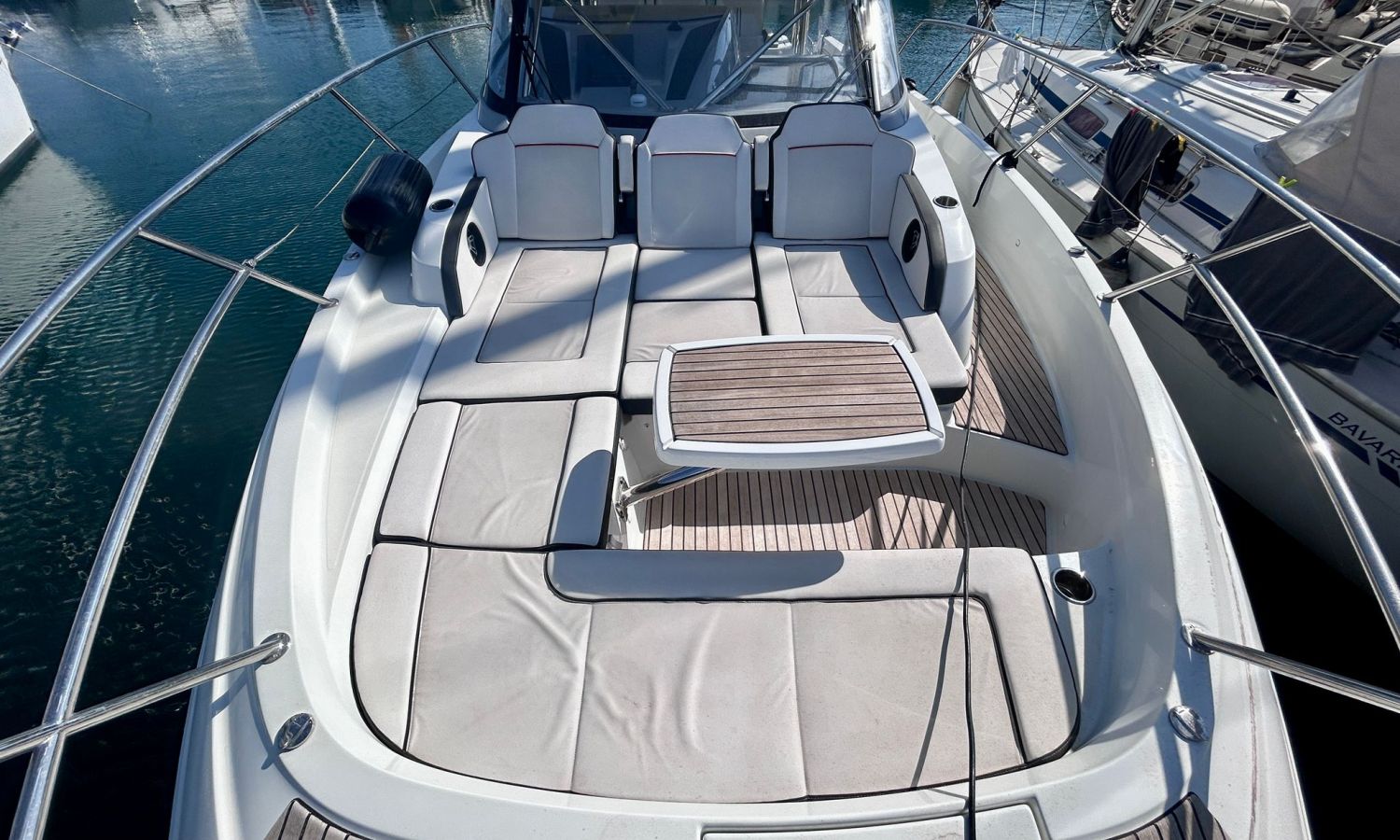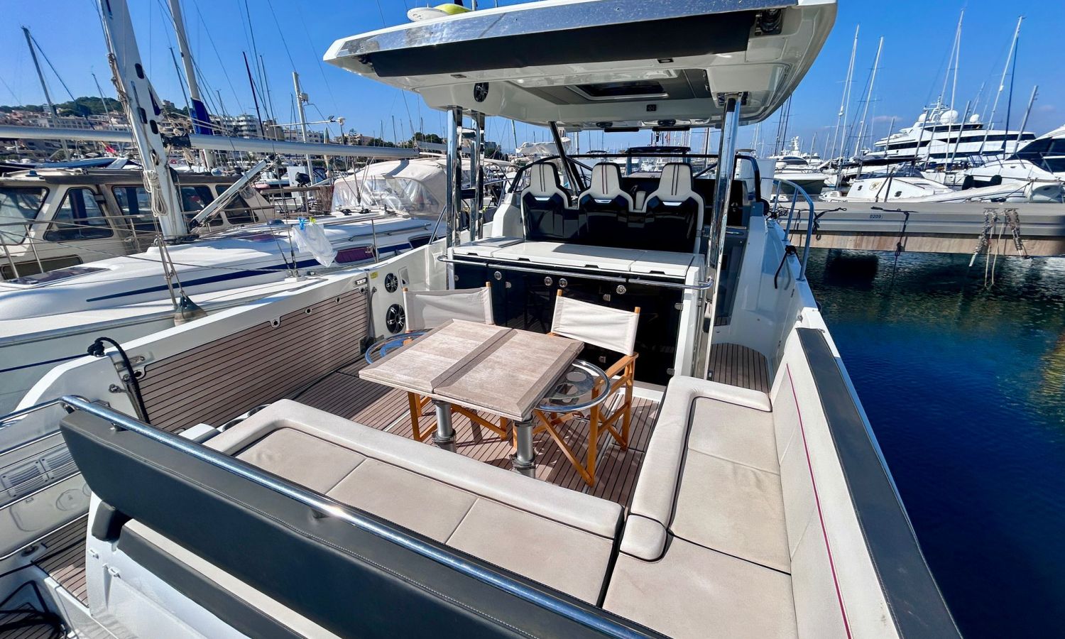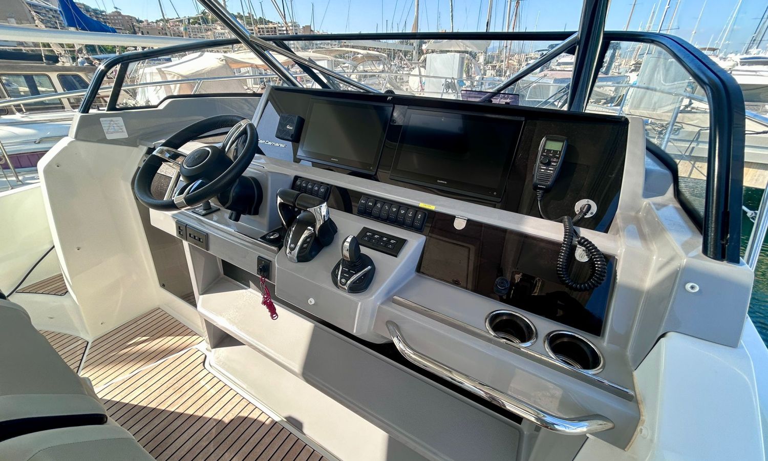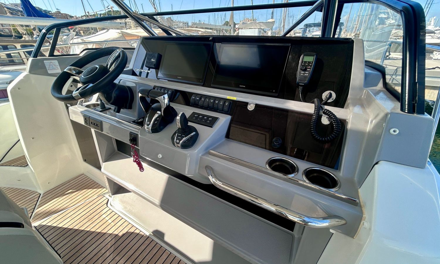 Anchoring kit - Mooring kit - Electric awning - Hard Top - Gps/Plotter/Deep finder - AIS Transponder Garmin - VHF - Radar - Bow cushions - Bathing platform - Teak - table in the bathtub - Refrigerator - Microwawe - Battery charger - Port intake - Generator set - Underwater projectors - Ski mast - Bow thruster - Joystick - Tv - Pack audioBoat description