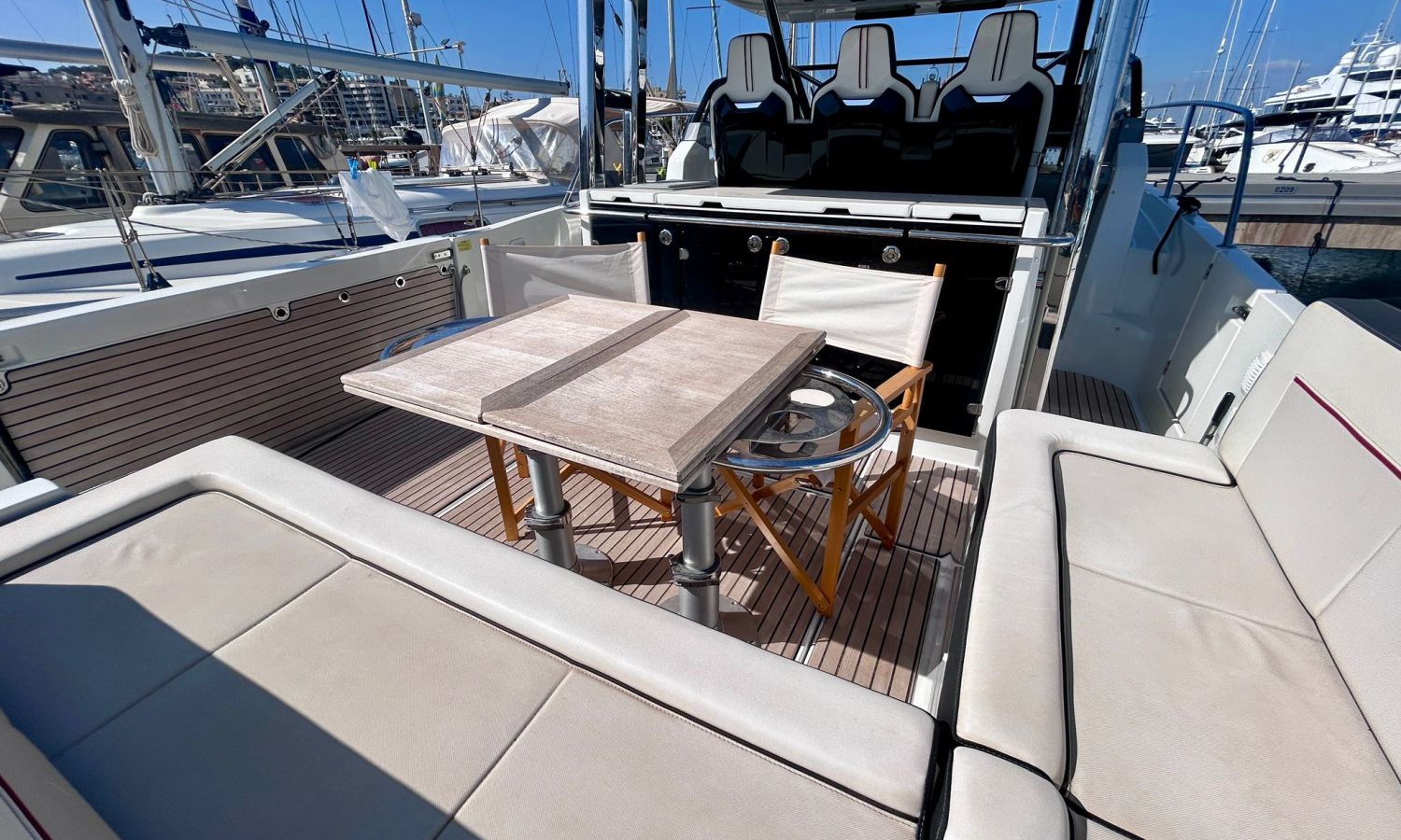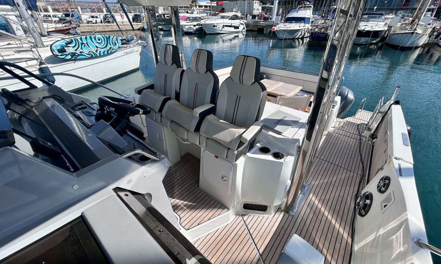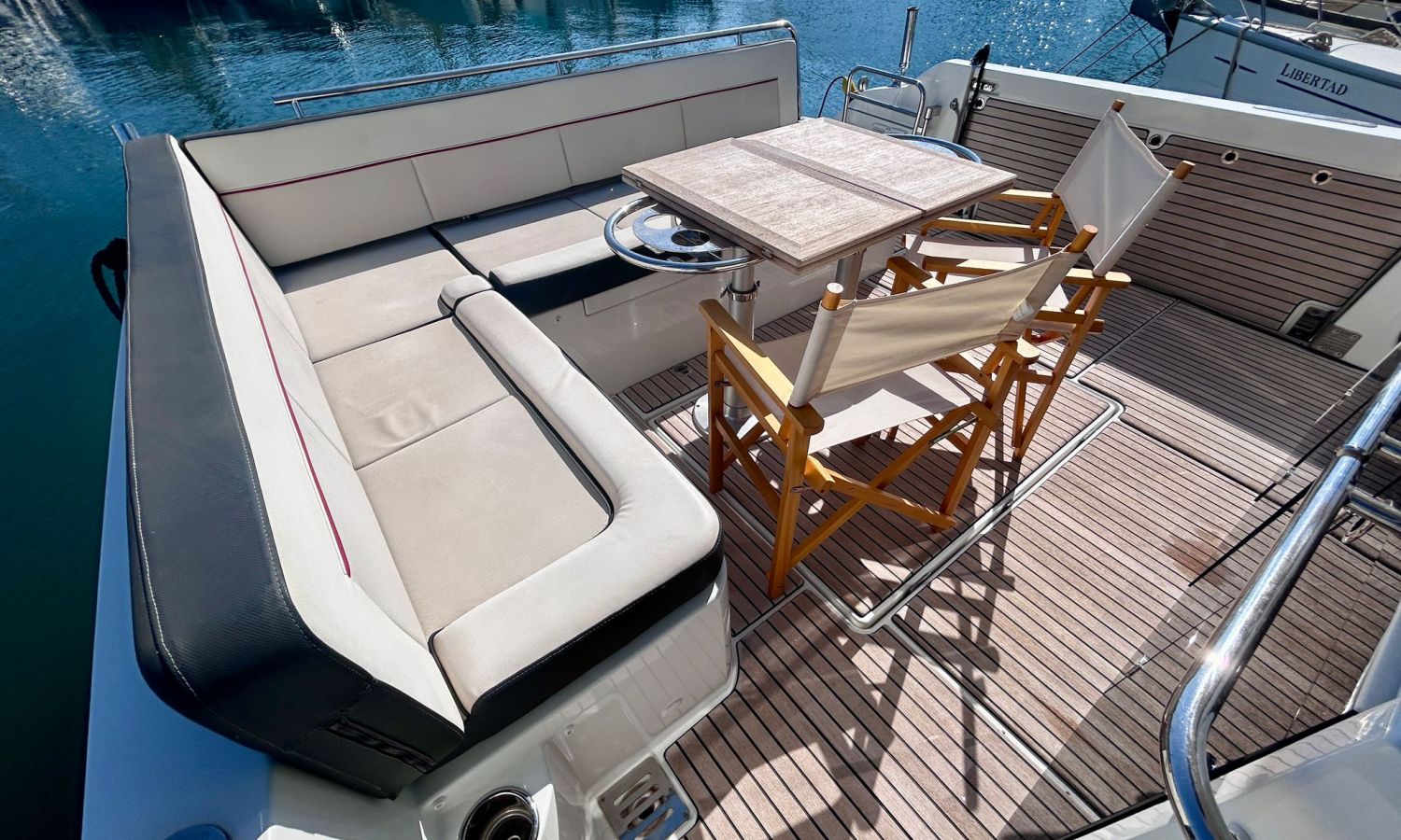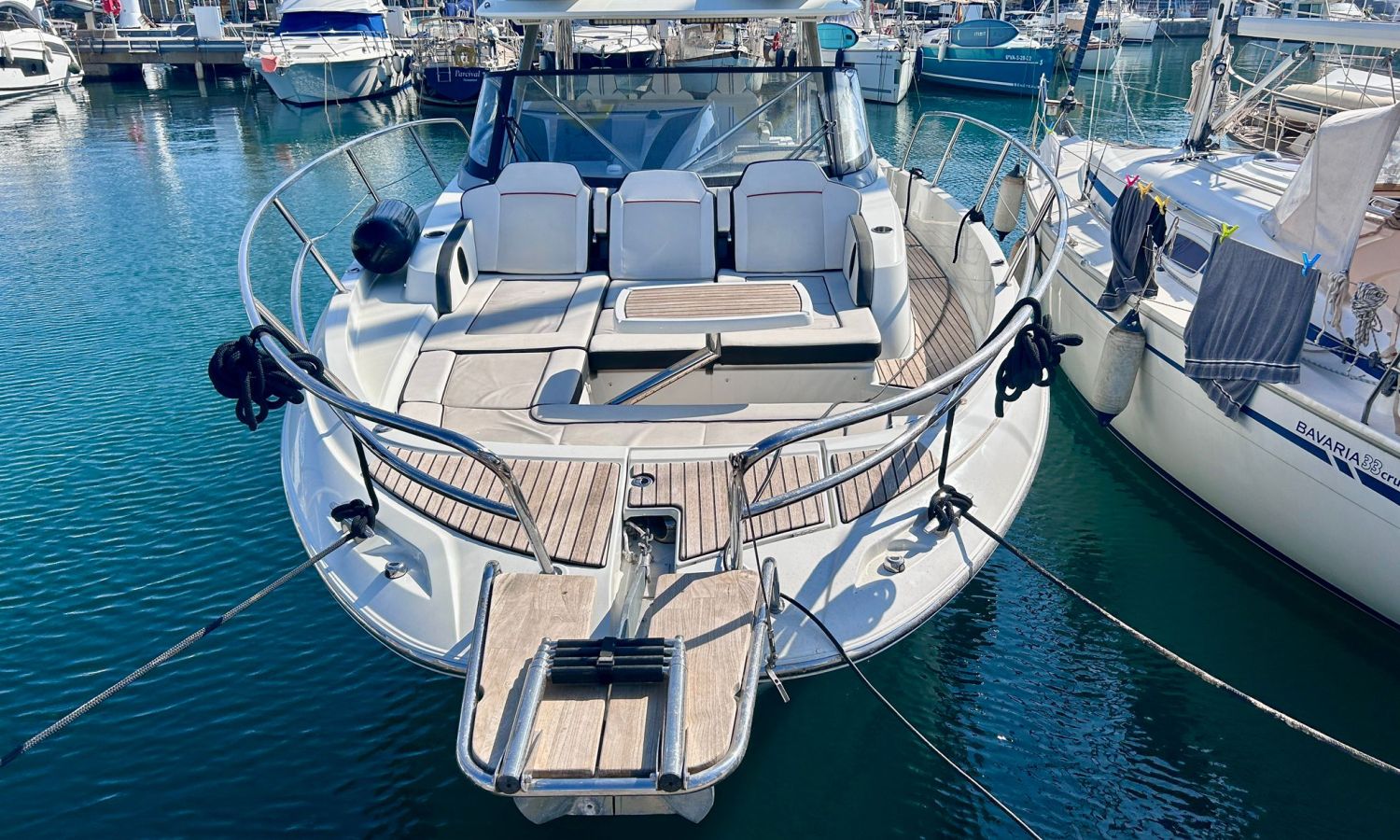 Anchoring kit - Mooring kit - Electric awning - Hard Top - Gps/Plotter/Deep finder - AIS Transponder Garmin - VHF - Radar - Bow cushions - Bathing platform - Teak - table in the bathtub - Refrigerator - Microwawe - Battery charger - Port intake - Generator set - Underwater projectors - Ski mast - Bow thruster - Joystick - Tv - Pack audioBoat description