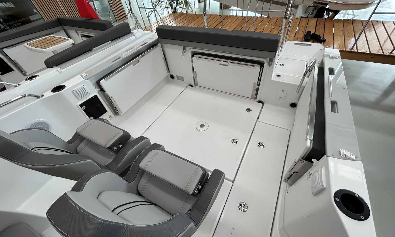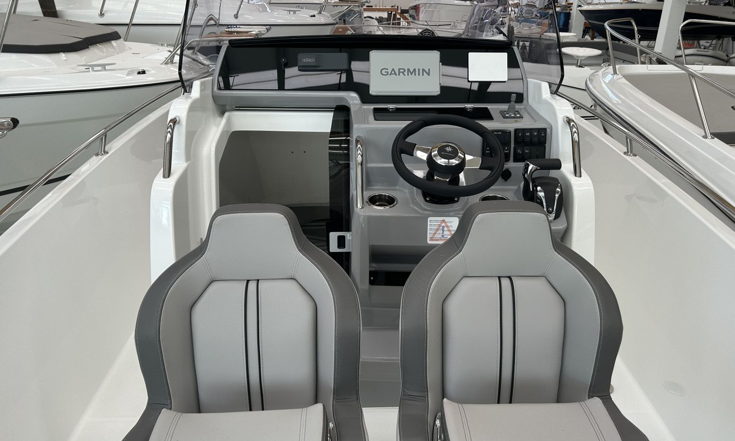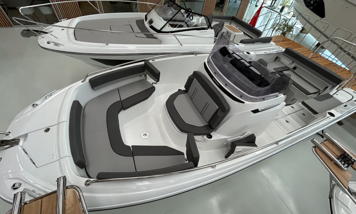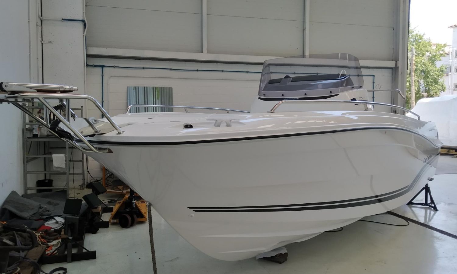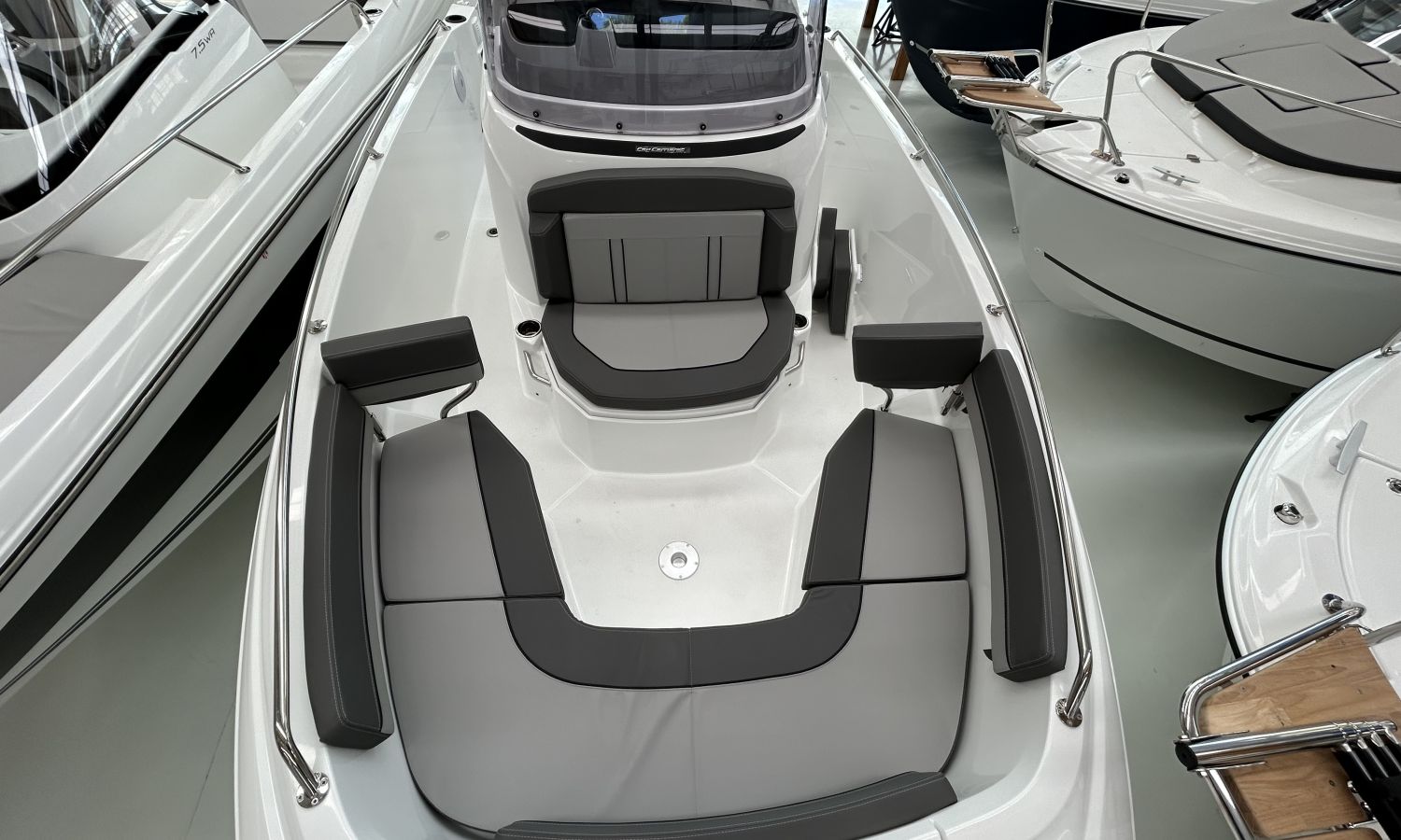 AUDIO PACK FUSION RA70N, ELECTRONIC PACK GARMIN, BOLSTER SEATS VERSION, TRIM LEVEL PREMIERE 7.5 CC, BOW THRUSTER, ELECTRICAL WINDLASS, SKI MAST(ARCH), CONTROL OF WIND LASS FROM PILOT STATION, CLAXON, 220V POWER SOCKET + CHARGER PRE-ASSEMBLY, FRONT SUNDECK, WATER SYSTEM + COCKPIT SHOWER, COCKPIT TEAK TABLE, BOW PLATFORM WITH LADDER, POLYESTER SWIMMING PLATFORMS, BACK RESTS FOR THE AFT COCKPIT SIDE SEATS LUXE, AUTOMATIC TRIM TABS ZIPWAKE, LIVING ROOM BACKREST + REMOVABLE BACKREST, FRONT CONSOLE BACKS, MARINE TOILET + HOLDING TANK, DOUBLE BERTH COMPLEMENT, MATTRESS IN THE FRONT CABIN, PRE-RIGGING YAMAHA HMEX 225 - 300 DBW, TRANSPORT FROM THE SHIPYARD - COSTA-BRAVA, INSTALLATION MOTOR INCLUDED