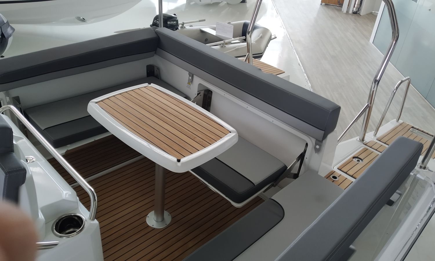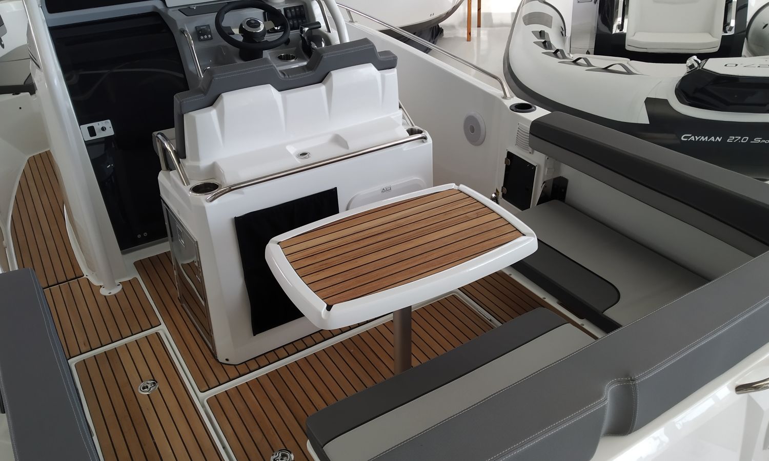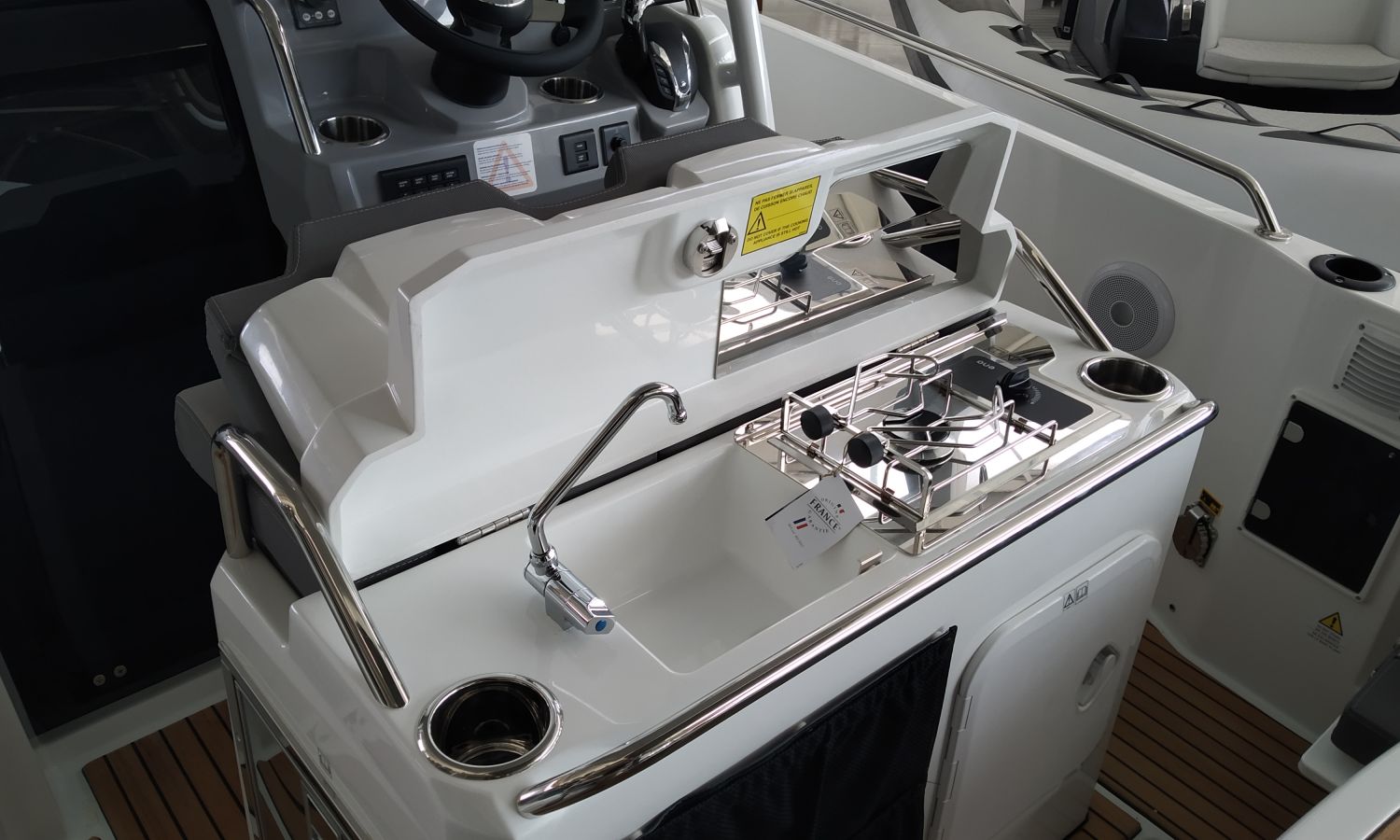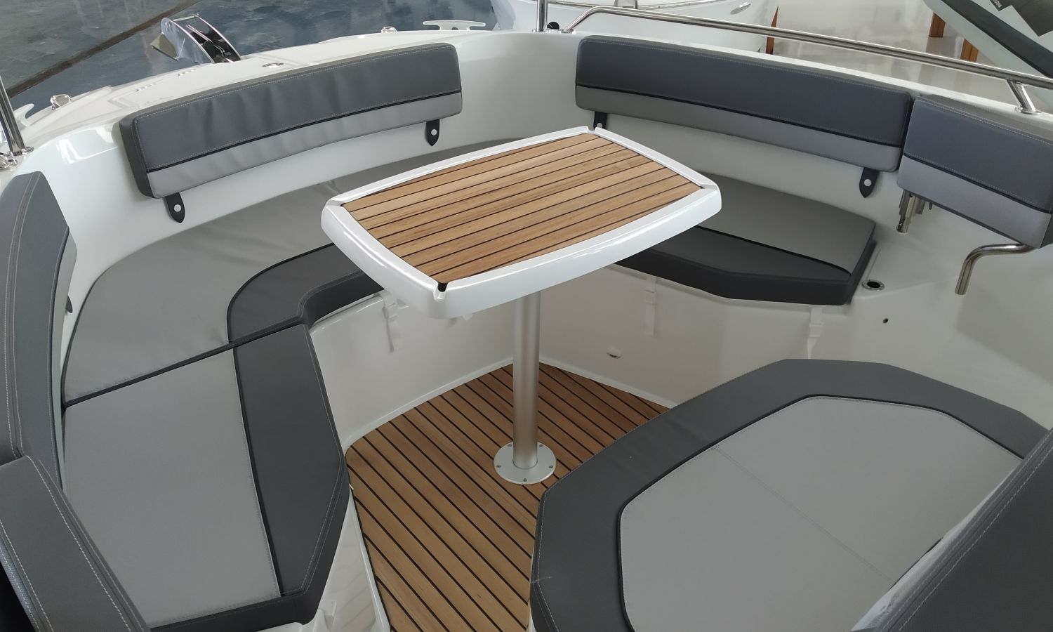 LEANING POST VERSION WITH GALLEY AND FRIDGE IN COCKPIT - RA70N FUSION AUDIO PACK - UPGRADED GARMIN ELECTRONICS PACK - T-TOP WITH POLYESTER ROOF WITH WHITE STRUCTURE - BOW COCKPIT AWNING FOR T-TOP - PREMIERE EQUIPMENT LEVEL - BOW THRUSTER - ELECTRIC WINDLASS - WINDLASS CONTROL ON DASHBOARD - SKI MAST (BOW) - 220V DOCK SOCKET + CHARGER PRE-MOUNTING - BOW SUNBATHING - "LUXE" COCKPIT TABLE - LUXE BATHING PLATFORMS WITH TEAK - BACKRESTS FOR REAR LUX COCKPIT SIDE SEATS - AUTOMATIC ZIPWAKE FLAPS - FORWARD SALOON BACKRESTS + REMOVABLE BACKRESTS - FORWARD CONSOLE BACKRESTS - MARINE WC + HOLDING TANK - DOUBLE BERTH SUPPLEMENT - FORWARD COCKPIT MATTRESS - LED COCKPIT LIGHTING - GAS COOKER AND GAS BOX IN LEANING POST - HORN - TEAK COCKPIT FLOOR IN LEANING POST VERSION - , PRE-RIGGING YAMAHA HMEX 225 - 300 SBW - TRANSPORT FROM THE SHIPYARD - COSTA-BRAVA - MOTOR INSTALLATION INCLUDED.Boat description