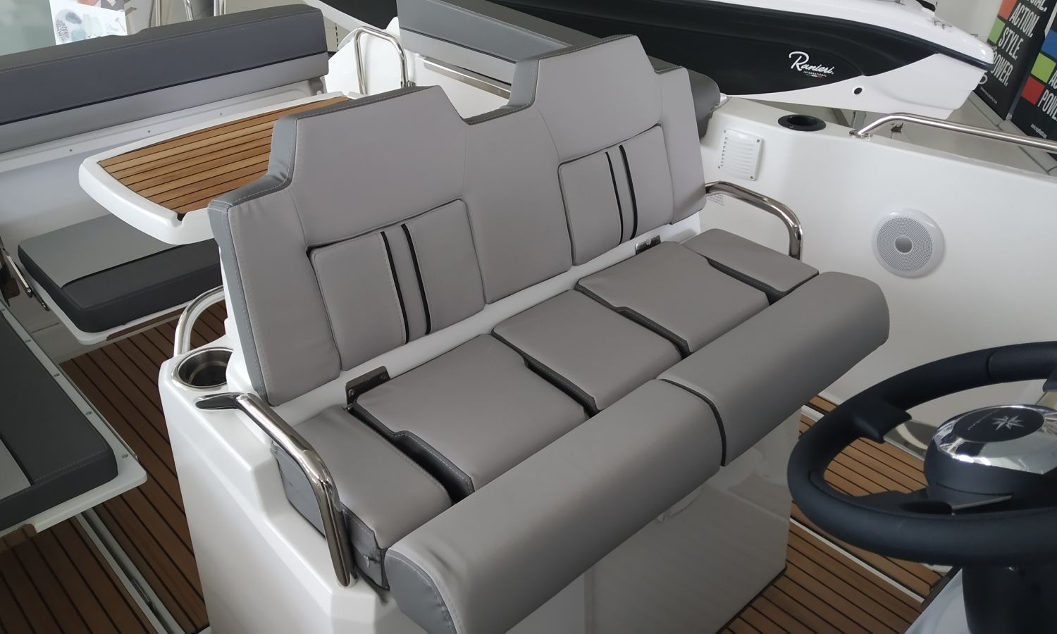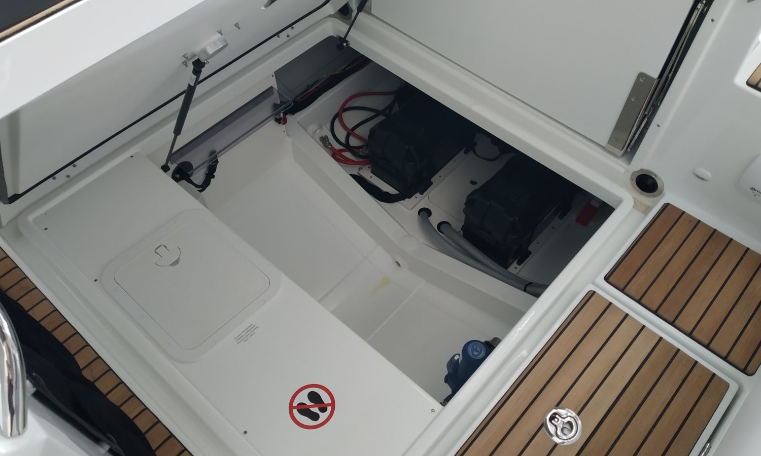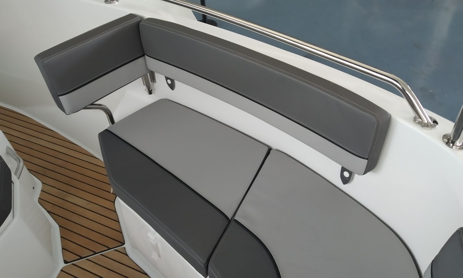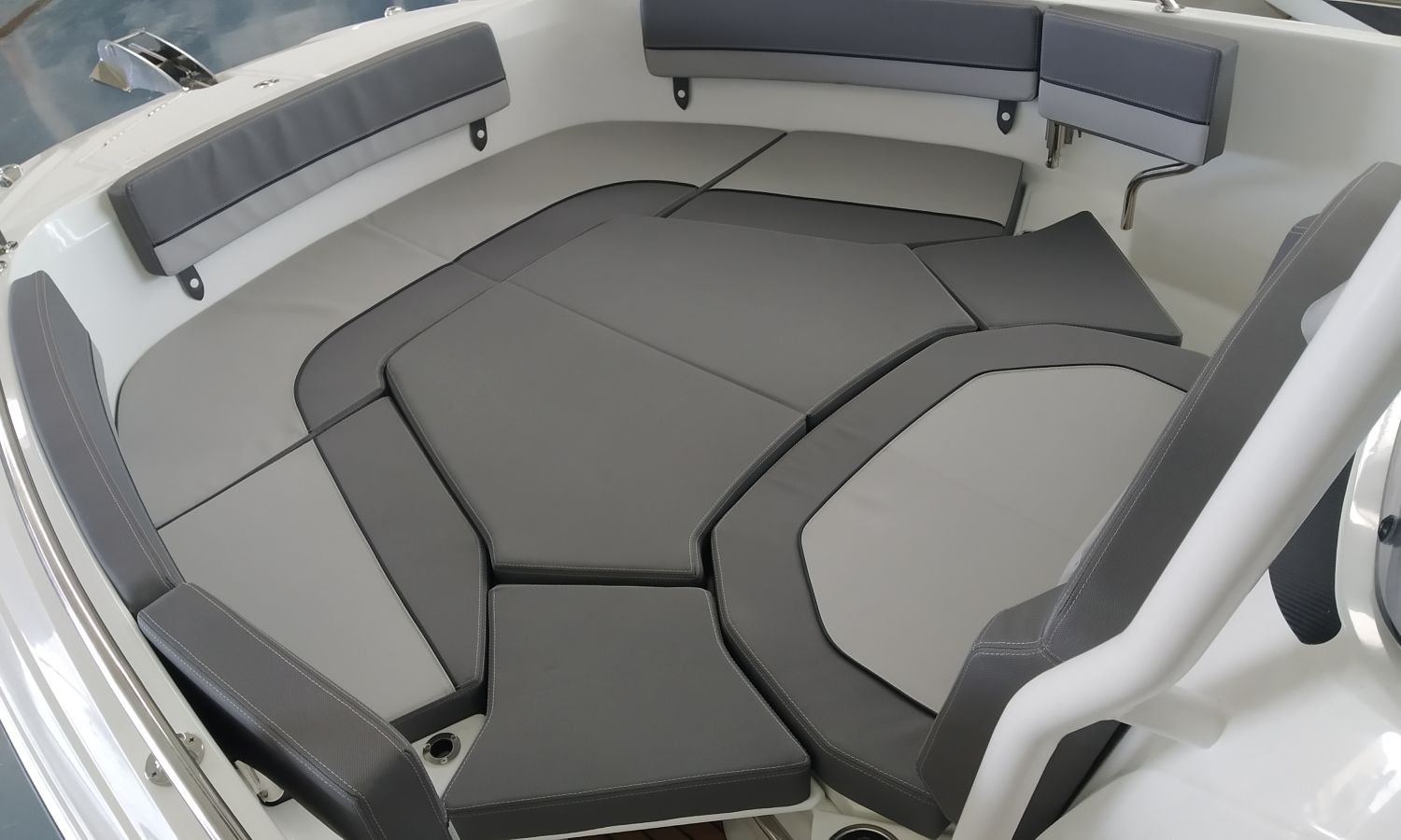 LEANING POST VERSION WITH GALLEY AND FRIDGE IN COCKPIT - RA70N FUSION AUDIO PACK - UPGRADED GARMIN ELECTRONICS PACK - T-TOP WITH POLYESTER ROOF WITH WHITE STRUCTURE - BOW COCKPIT AWNING FOR T-TOP - PREMIERE EQUIPMENT LEVEL - BOW THRUSTER - ELECTRIC WINDLASS - WINDLASS CONTROL ON DASHBOARD - SKI MAST (BOW) - 220V DOCK SOCKET + CHARGER PRE-MOUNTING - BOW SUNBATHING - "LUXE" COCKPIT TABLE - LUXE BATHING PLATFORMS WITH TEAK - BACKRESTS FOR REAR LUX COCKPIT SIDE SEATS - AUTOMATIC ZIPWAKE FLAPS - FORWARD SALOON BACKRESTS + REMOVABLE BACKRESTS - FORWARD CONSOLE BACKRESTS - MARINE WC + HOLDING TANK - DOUBLE BERTH SUPPLEMENT - FORWARD COCKPIT MATTRESS - LED COCKPIT LIGHTING - GAS COOKER AND GAS BOX IN LEANING POST - HORN - TEAK COCKPIT FLOOR IN LEANING POST VERSION - , PRE-RIGGING YAMAHA HMEX 225 - 300 SBW - TRANSPORT FROM THE SHIPYARD - COSTA-BRAVA - MOTOR INSTALLATION INCLUDED.Boat description