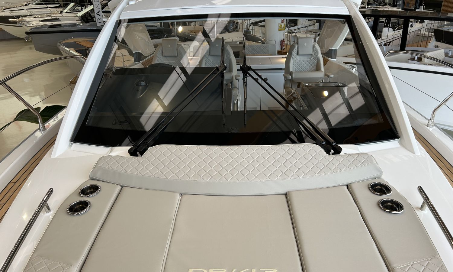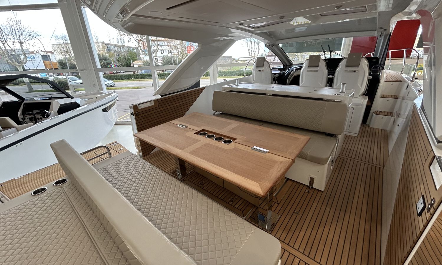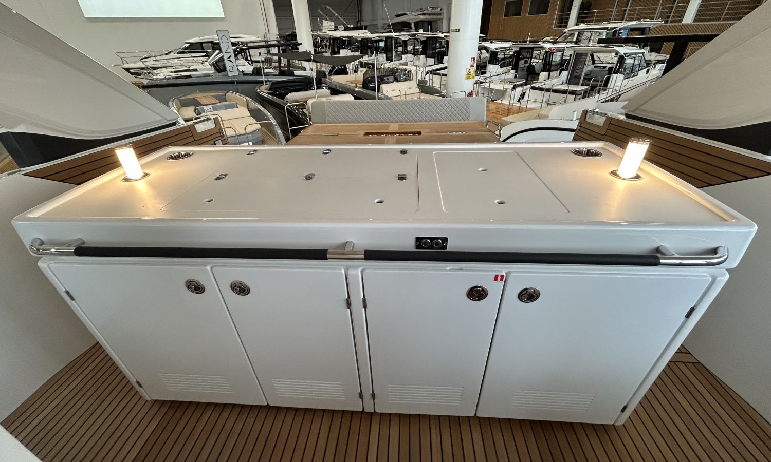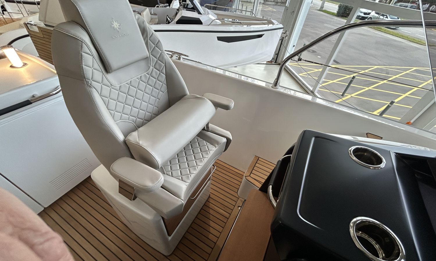 2 cabins 1 bathroom - Sportop version - Poa-deck version - Joystick - Mooring kit - Stainless steel anchor kit - Equipment level Premiere Breakfast Point - Ivory upholstery in Proa cabin - Ivory cockpit sofa - Macadamia Silvertex bathtub cushions - Pack Confort Breakfast Point White Oak - Pack electronica Raymarine Enhanced - Pack Audio Premium Fusion - Hydraulic bathing platform - Hard tank greywater 200l - 2 battery chargers 60 AH - Multifunction steering wheel - Electric pump washed in the bow (fresh and salt water) - Zipwake automatic flaps - Grill elec. + Cooking plate - Cushions in bow White Cockpit Deck and Armrests - Bow thruster - Generator for air conditioning 8.5 kW - Second refrigerator in cockpit 65l to starboard - Second refrigerator in cockpit 65l to starboard - Refrigerator Breakfast point 78l - Microwave oven - Indoor air conditioning - Converter 12/230v 2000VA - Radio VHF Raymarine RAY90 - Pilot automatic Raymarine - Raymarine control unit P70RS for autopilot - Ship control - AIS 700 transpondedror - 2 fictitious Satelite antennas - TV antenna - Hifi Fusion in bow cabin with 2 speakers - Bathtub, aisles and platform in teak - Transport Shipyard-Costa Brava - Antifouling paint - Preparation, assembly and delivery with sea trials..Boat description