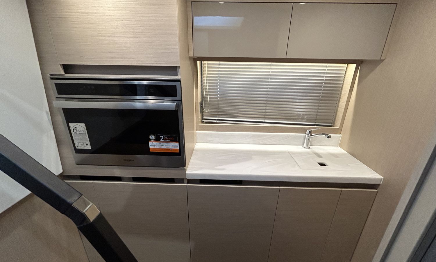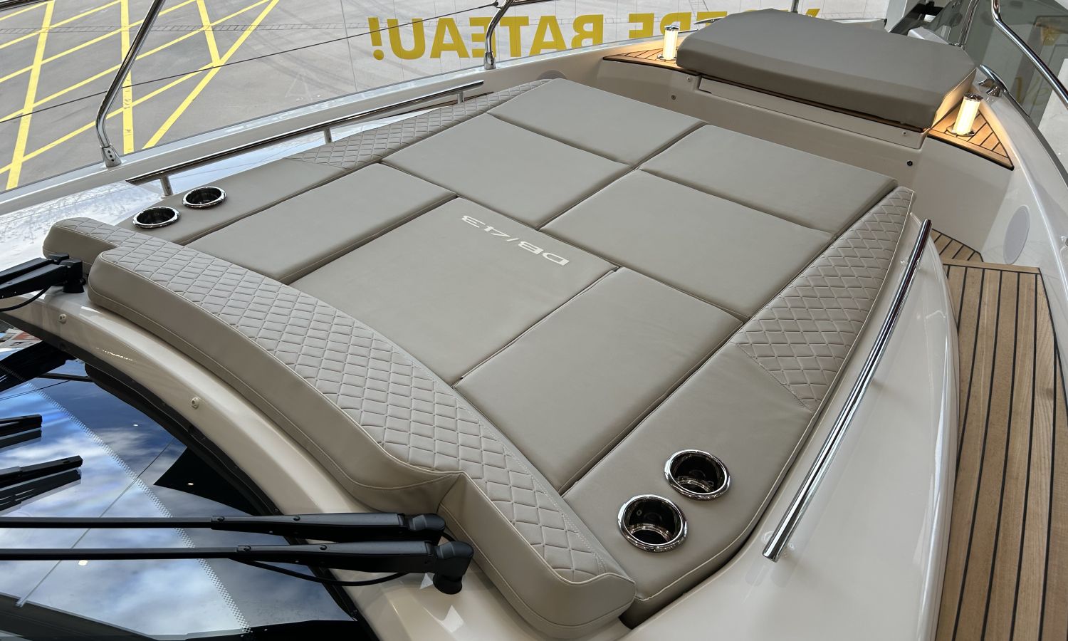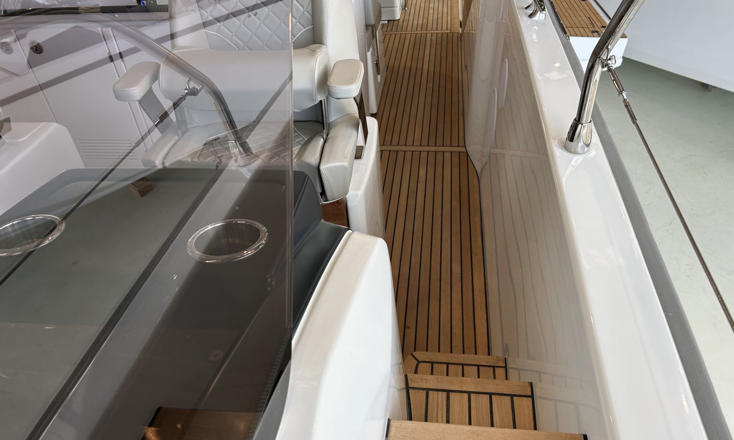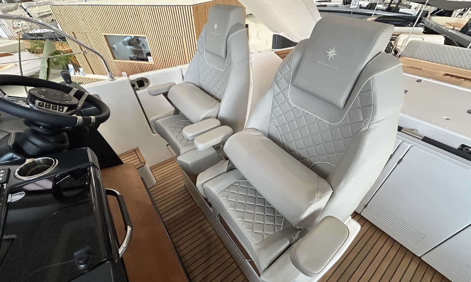 2 cabins 1 bathroom - Sportop version - Poa-deck version - Joystick - Mooring kit - Stainless steel anchor kit - Equipment level Premiere Breakfast Point - Ivory upholstery in Proa cabin - Ivory cockpit sofa - Macadamia Silvertex bathtub cushions - Pack Confort Breakfast Point White Oak - Pack electronica Raymarine Enhanced - Pack Audio Premium Fusion - Hydraulic bathing platform - Hard tank greywater 200l - 2 battery chargers 60 AH - Multifunction steering wheel - Electric pump washed in the bow (fresh and salt water) - Zipwake automatic flaps - Grill elec. + Cooking plate - Cushions in bow White Cockpit Deck and Armrests - Bow thruster - Generator for air conditioning 8.5 kW - Second refrigerator in cockpit 65l to starboard - Second refrigerator in cockpit 65l to starboard - Refrigerator Breakfast point 78l - Microwave oven - Indoor air conditioning - Converter 12/230v 2000VA - Radio VHF Raymarine RAY90 - Pilot automatic Raymarine - Raymarine control unit P70RS for autopilot - Ship control - AIS 700 transpondedror - 2 fictitious Satelite antennas - TV antenna - Hifi Fusion in bow cabin with 2 speakers - Bathtub, aisles and platform in teak - Transport Shipyard-Costa Brava - Antifouling paint - Preparation, assembly and delivery with sea trials..Boat description