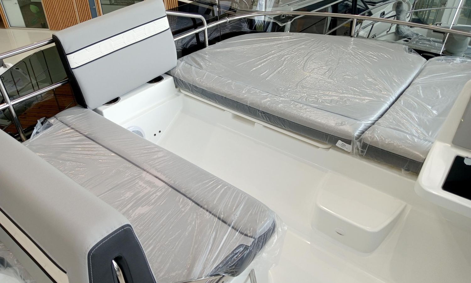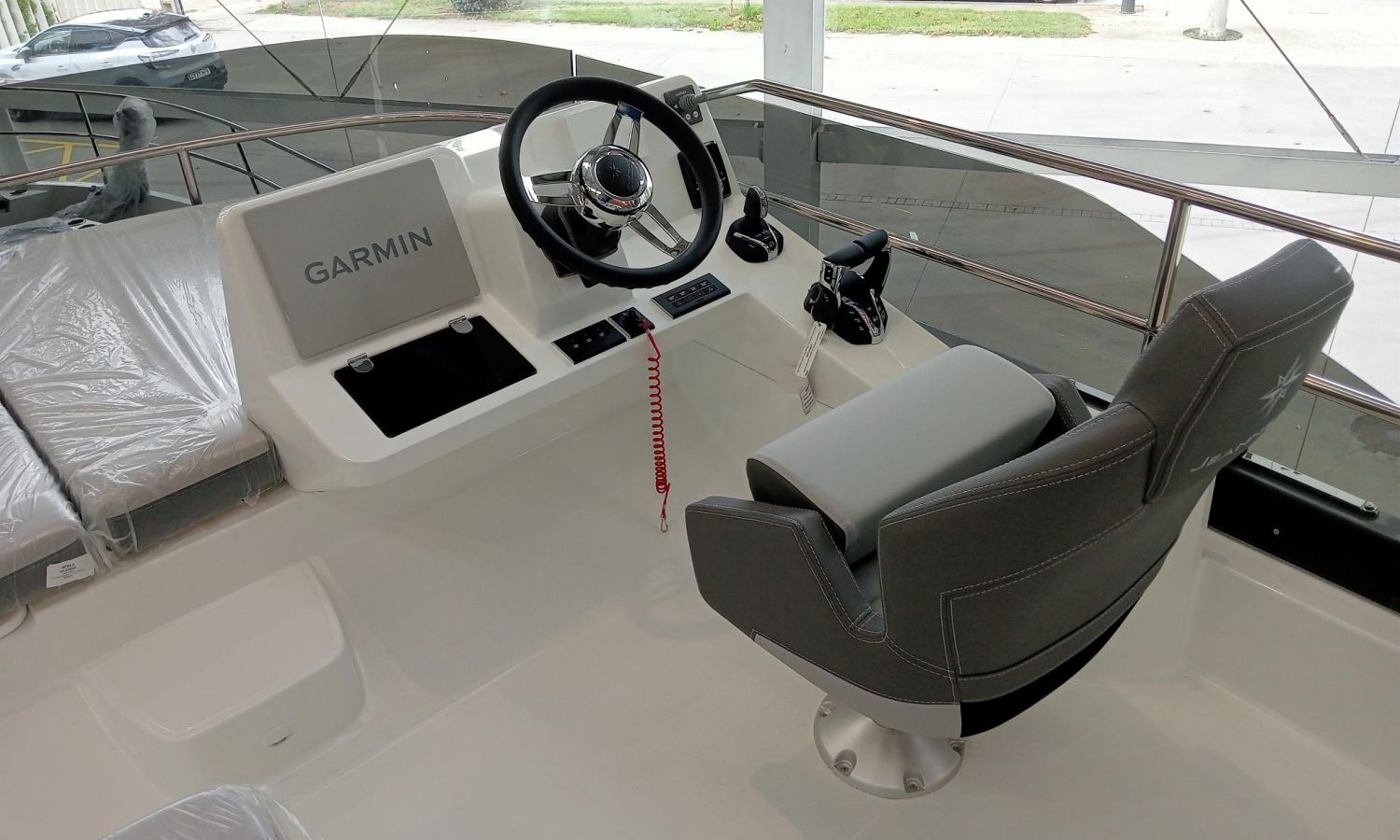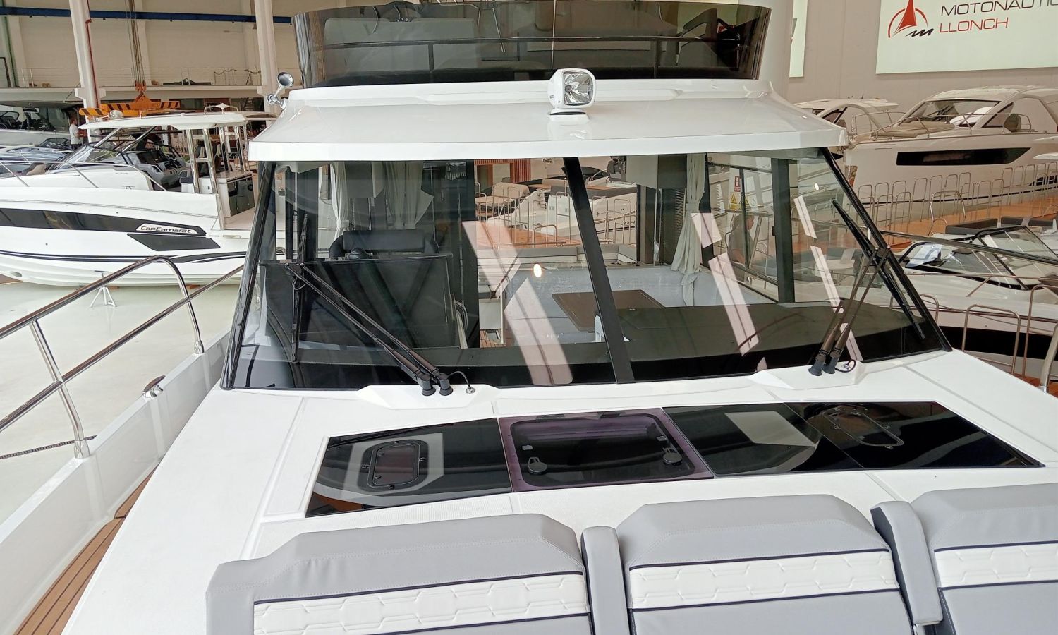 JOYSTICK - SYSTEMA AUDIO FUSION RA210 - UPHOLSTERY SALON JUMBO SILVER - FLYING BRIDGE BIMINI - ELECTRONIC PACK GARMIN IMPROVED FLY - VHF RADIO - EQUIPMENT LEVEL PREMIERE FLY - COMFORT PACK VERSION FLY - MOORING KIT - ANCHORAGE KIT - PROTECTIVE COVERS SET FOR THE FLY, - GENERATOR GROUP PANDA DIESEL 9KVA 230V-50HZ - DOUBLE-CONTROLLED BOW THRUSTER - TABLE OF POLYESTER BATH SUN PROA IN FLYBRIDGE + COVER - EXTRA FOR BATH SUN PROA XXL - TABLE OF BATH PROA POLYESTER - CUSHIONS FOR SEATS PROA - FRIDGE DRAWER FLY - ELECTRIC KITCHEN 230V (OVEN AND HOB) - REFRIGERATOR/FREEZER IN STAINLESS STEEL WITH 2 DRAWERS 144l - DOUBLE BED COMPLEMENT IN THE LIVING ROOM - SCALE OF BOW WITH PLATFORM IN WOOD - CLIMATIZACION 36KBTU 220V50HZ TO DOCK AND GENERATOR - AUTOMATIC FLAPS COS ZIPWAKE - BATHROOM LADDER FOR SIDE PLATFORM BATH - MOSQUITO NETS IN PORTILLONES - CARPET IN THE HALL AND THE STAIRCASE - CARPET IN CORRIDOR AND CABINS - FLOOR OF BATHTUB AND TERRACE IN TEAK - TEAK IN EASTERLY WALKWAY AND FLOOR OF BATHTUB TO PROA - CAMARA RETROVISORA GARMIN PROTECTION OF STAINLESS STEEL STRAINER - SHIPPING YARD-COSTA BRAVA - PREPARATION, ASSEMBLY, LAUNCHING WITH TESTS IN THE SEA - ANTIFOULING PAINT.Boat description