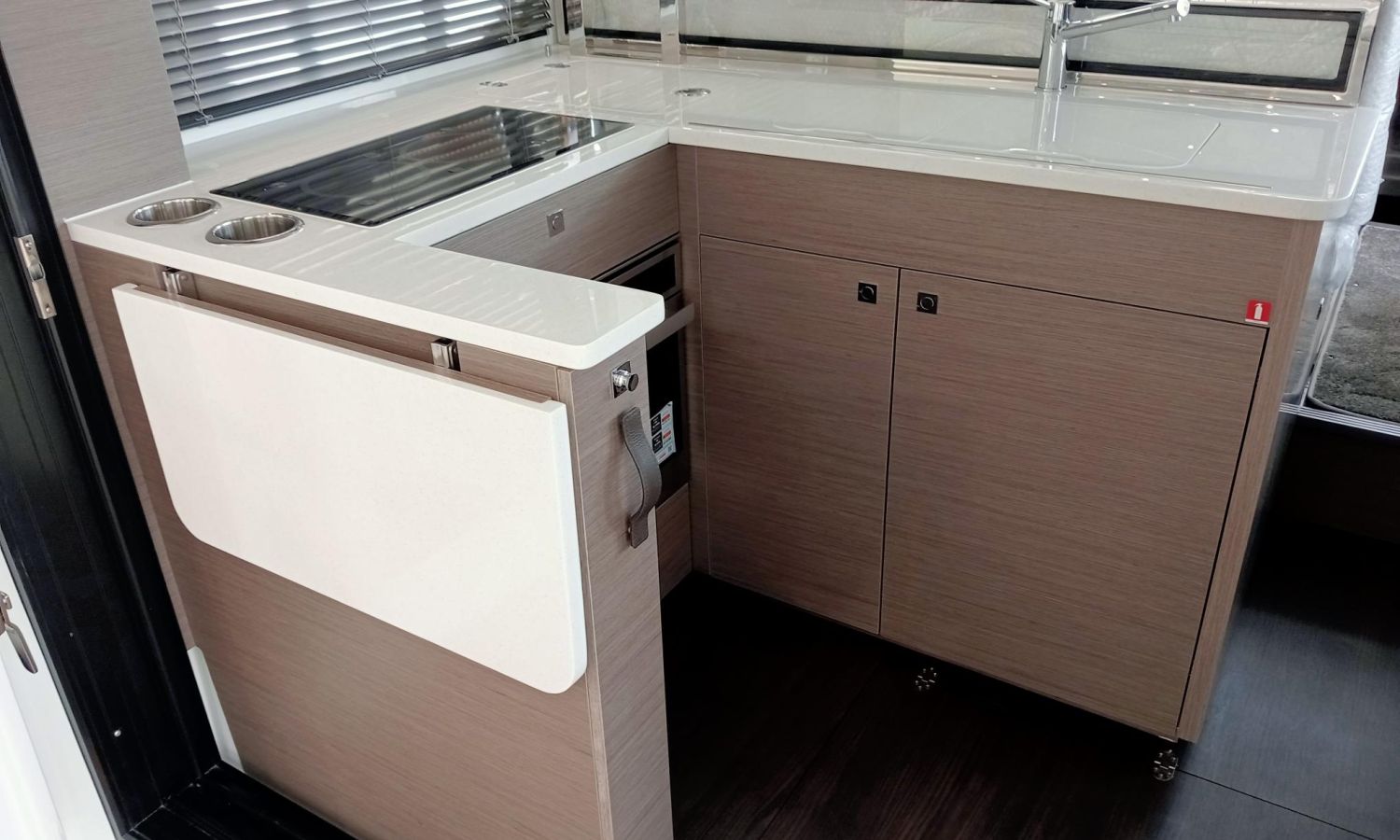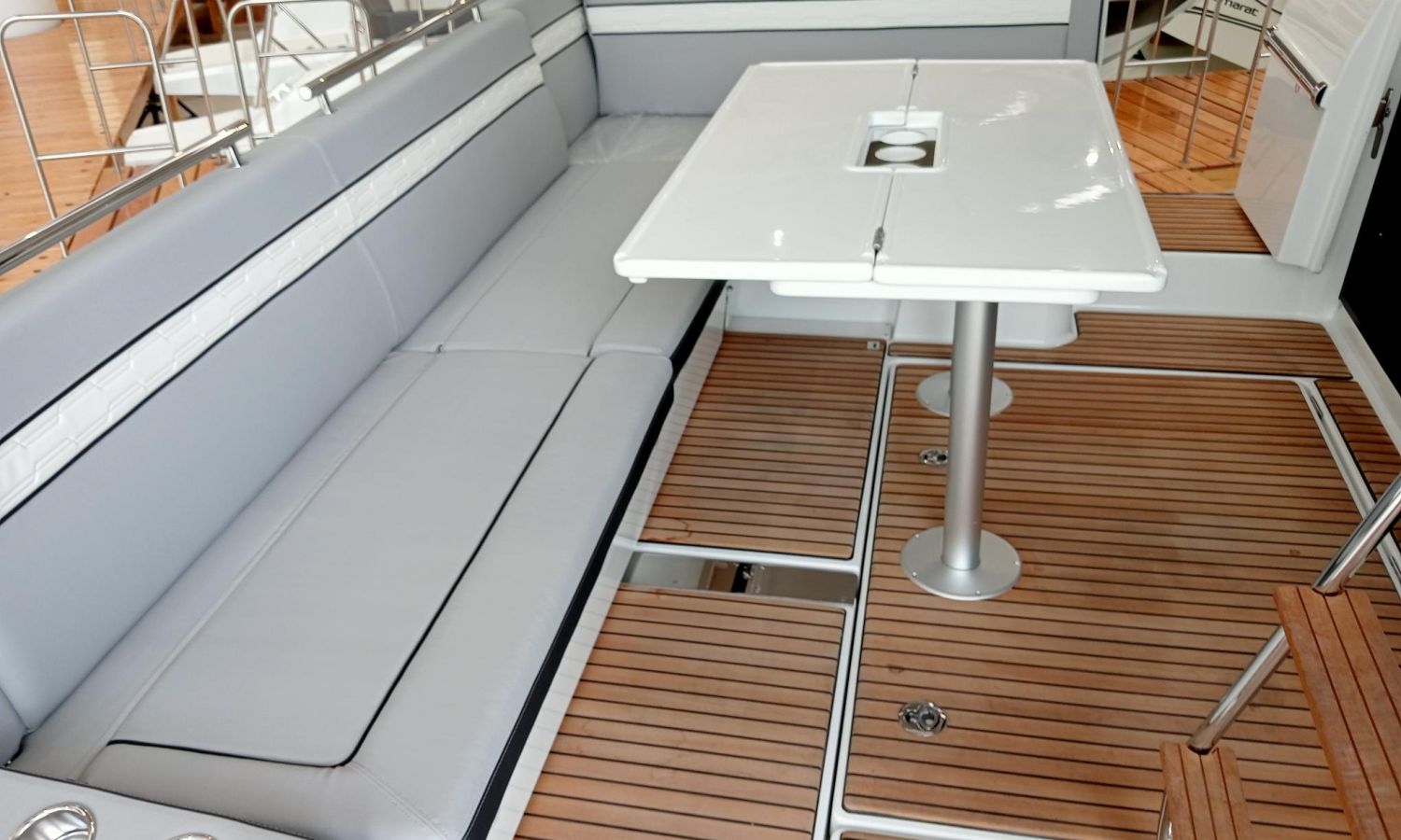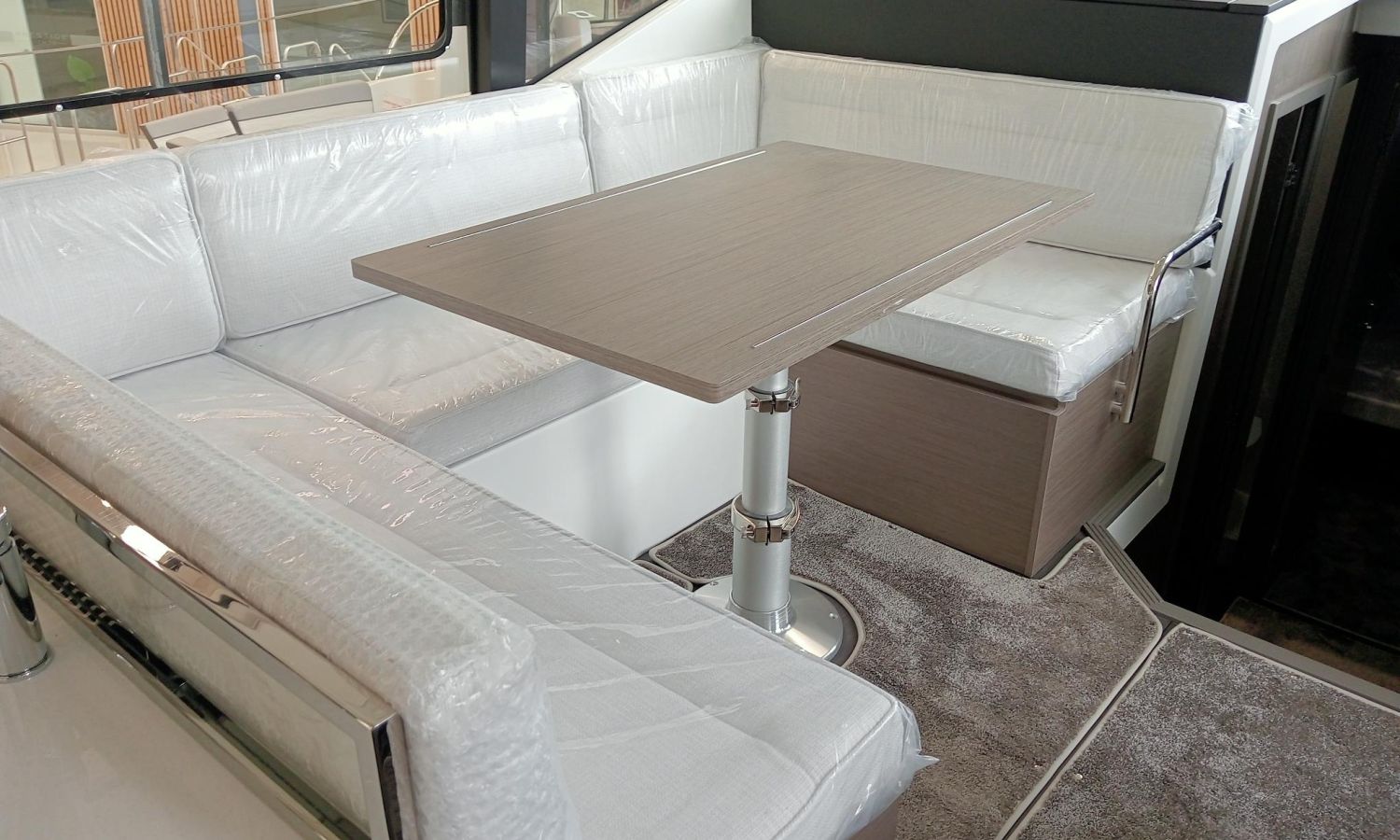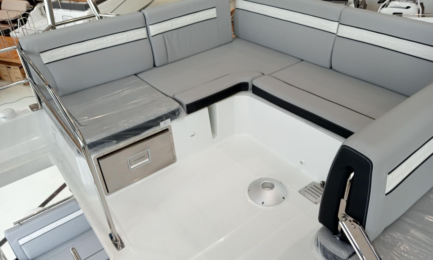 JOYSTICK - SYSTEMA AUDIO FUSION RA210 - UPHOLSTERY SALON JUMBO SILVER - FLYING BRIDGE BIMINI - ELECTRONIC PACK GARMIN IMPROVED FLY - VHF RADIO - EQUIPMENT LEVEL PREMIERE FLY - COMFORT PACK VERSION FLY - MOORING KIT - ANCHORAGE KIT - PROTECTIVE COVERS SET FOR THE FLY, - GENERATOR GROUP PANDA DIESEL 9KVA 230V-50HZ - DOUBLE-CONTROLLED BOW THRUSTER - TABLE OF POLYESTER BATH SUN PROA IN FLYBRIDGE + COVER - EXTRA FOR BATH SUN PROA XXL - TABLE OF BATH PROA POLYESTER - CUSHIONS FOR SEATS PROA - FRIDGE DRAWER FLY - ELECTRIC KITCHEN 230V (OVEN AND HOB) - REFRIGERATOR/FREEZER IN STAINLESS STEEL WITH 2 DRAWERS 144l - DOUBLE BED COMPLEMENT IN THE LIVING ROOM - SCALE OF BOW WITH PLATFORM IN WOOD - CLIMATIZACION 36KBTU 220V50HZ TO DOCK AND GENERATOR - AUTOMATIC FLAPS COS ZIPWAKE - BATHROOM LADDER FOR SIDE PLATFORM BATH - MOSQUITO NETS IN PORTILLONES - CARPET IN THE HALL AND THE STAIRCASE - CARPET IN CORRIDOR AND CABINS - FLOOR OF BATHTUB AND TERRACE IN TEAK - TEAK IN EASTERLY WALKWAY AND FLOOR OF BATHTUB TO PROA - CAMARA RETROVISORA GARMIN PROTECTION OF STAINLESS STEEL STRAINER - SHIPPING YARD-COSTA BRAVA - PREPARATION, ASSEMBLY, LAUNCHING WITH TESTS IN THE SEA - ANTIFOULING PAINT.Boat description