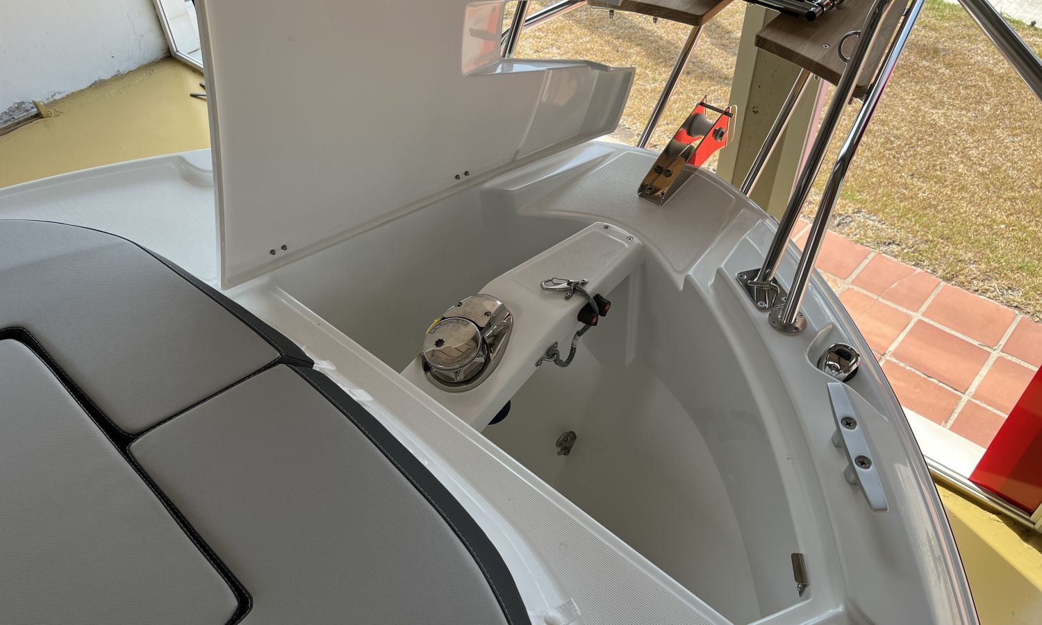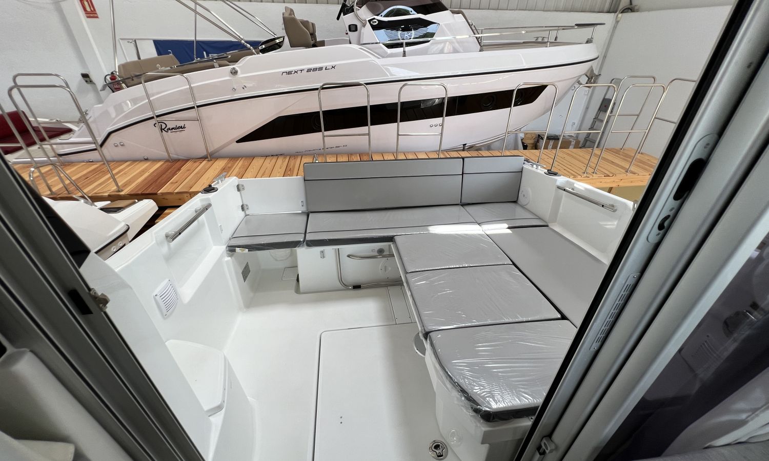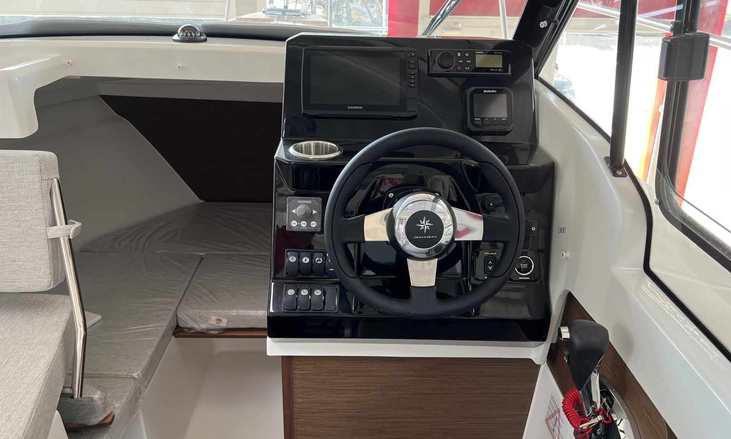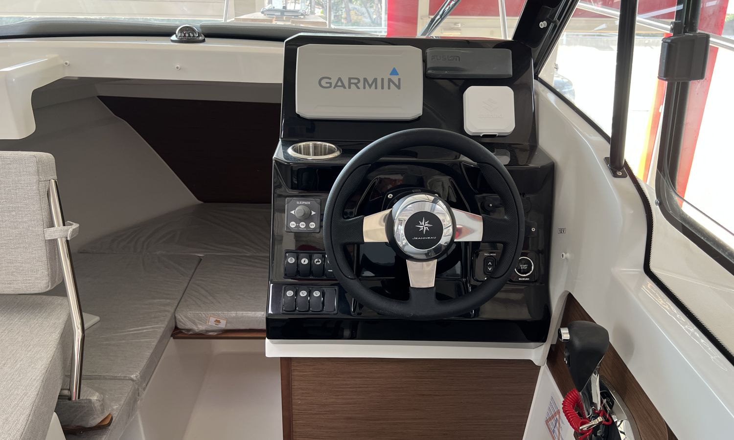 AUDIO PACK FUSION RA70N, WHEEL HOUSE INTERIOR CURTAINS, SUPPLEMENT FOR SEPARATE COMPARTMENT WITH DOOR AND PORT HOLE, ELECTRONIC PACK GARMIN, MERRY FISHER 695 VERSIÓN LEGENDE, TRIM LEVEL PREMIERE, BOW THRUSTER, ELECTRICAL WINDLASS, 220V POWER SOCKET+ CHARGER PRE-ASSEMBLY, WATER SYSTEM + COCKPIT SHOWER + TAPIN SINK, U-SHAPE COCKPIT SALOON & SUNDECK COMPLEMENT, BOW LADDER WITH WOODEN PLATFORM, FRONT SUNDECK MATTRESS, SCREEN WASH SYSTEM, STORAGE RACK ON THE ROOF, POLYESTER BATHROOM PLATFORMS, MARINE TOILET+ HOLDING TANK, REFRIGERATOR 42L, LUXURY GALLEY, BERTH COMPLEMENT SALOON+CABIN FOR CLOSED COMPARTMENT, VERSION, TRANSPORT SHIPYARD-COAST-BRAVA, ELECTRONIC PRE-RIGGING SUZUKI, ENGINE INSTALLATION.