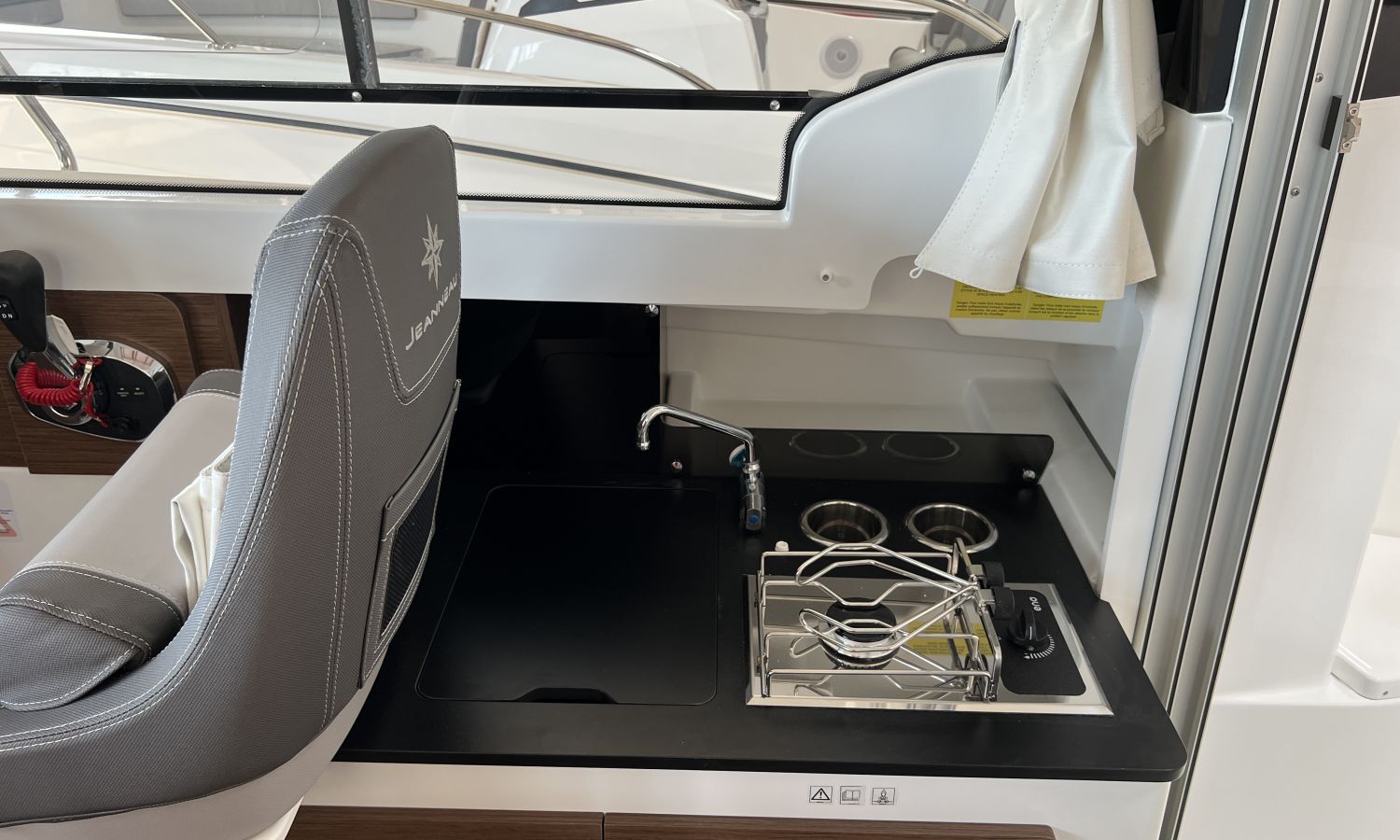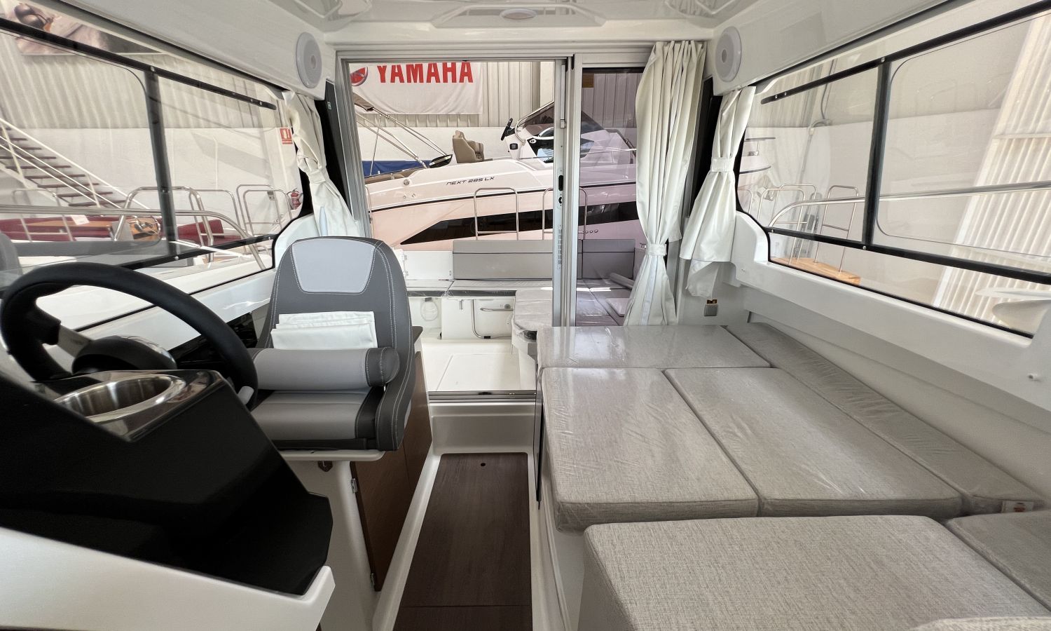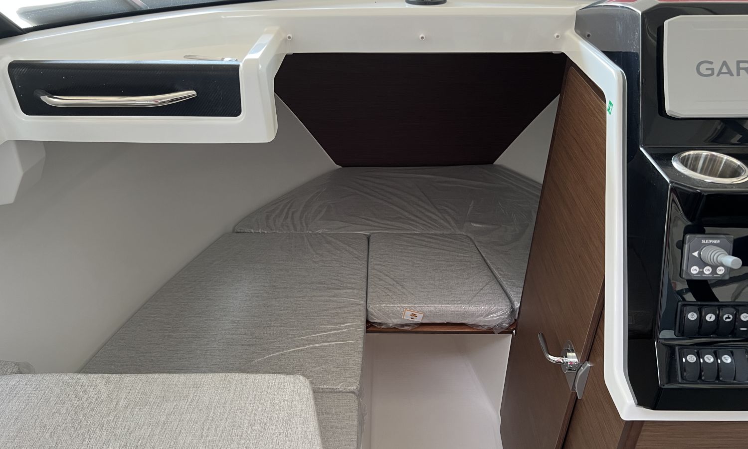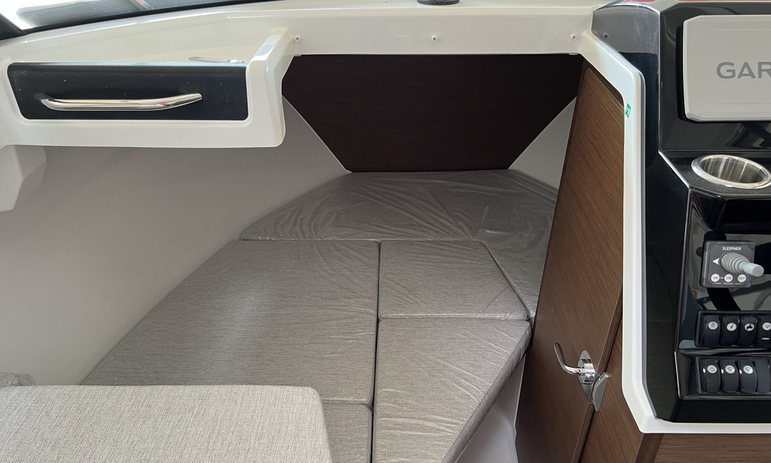 AUDIO PACK FUSION RA70N, WHEEL HOUSE INTERIOR CURTAINS, SUPPLEMENT FOR SEPARATE COMPARTMENT WITH DOOR AND PORT HOLE, ELECTRONIC PACK GARMIN, MERRY FISHER 695 VERSIÓN LEGENDE, TRIM LEVEL PREMIERE, BOW THRUSTER, ELECTRICAL WINDLASS, 220V POWER SOCKET+ CHARGER PRE-ASSEMBLY, WATER SYSTEM + COCKPIT SHOWER + TAPIN SINK, U-SHAPE COCKPIT SALOON & SUNDECK COMPLEMENT, BOW LADDER WITH WOODEN PLATFORM, FRONT SUNDECK MATTRESS, SCREEN WASH SYSTEM, STORAGE RACK ON THE ROOF, POLYESTER BATHROOM PLATFORMS, MARINE TOILET+ HOLDING TANK, REFRIGERATOR 42L, LUXURY GALLEY, BERTH COMPLEMENT SALOON+CABIN FOR CLOSED COMPARTMENT, VERSION, TRANSPORT SHIPYARD-COAST-BRAVA, ELECTRONIC PRE-RIGGING SUZUKI, ENGINE INSTALLATION.