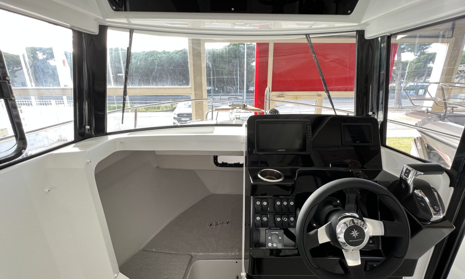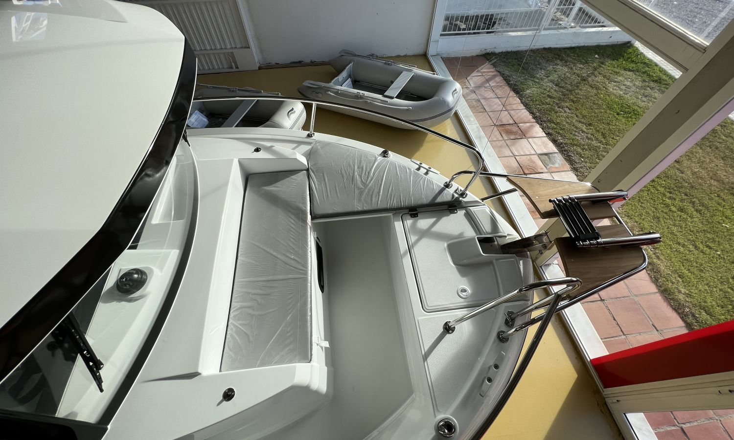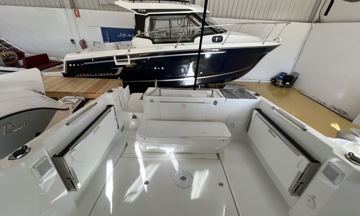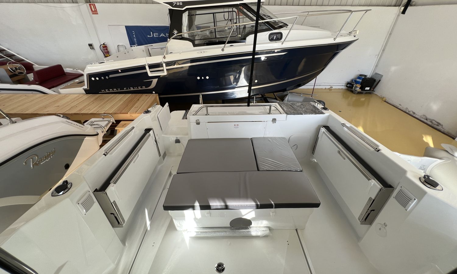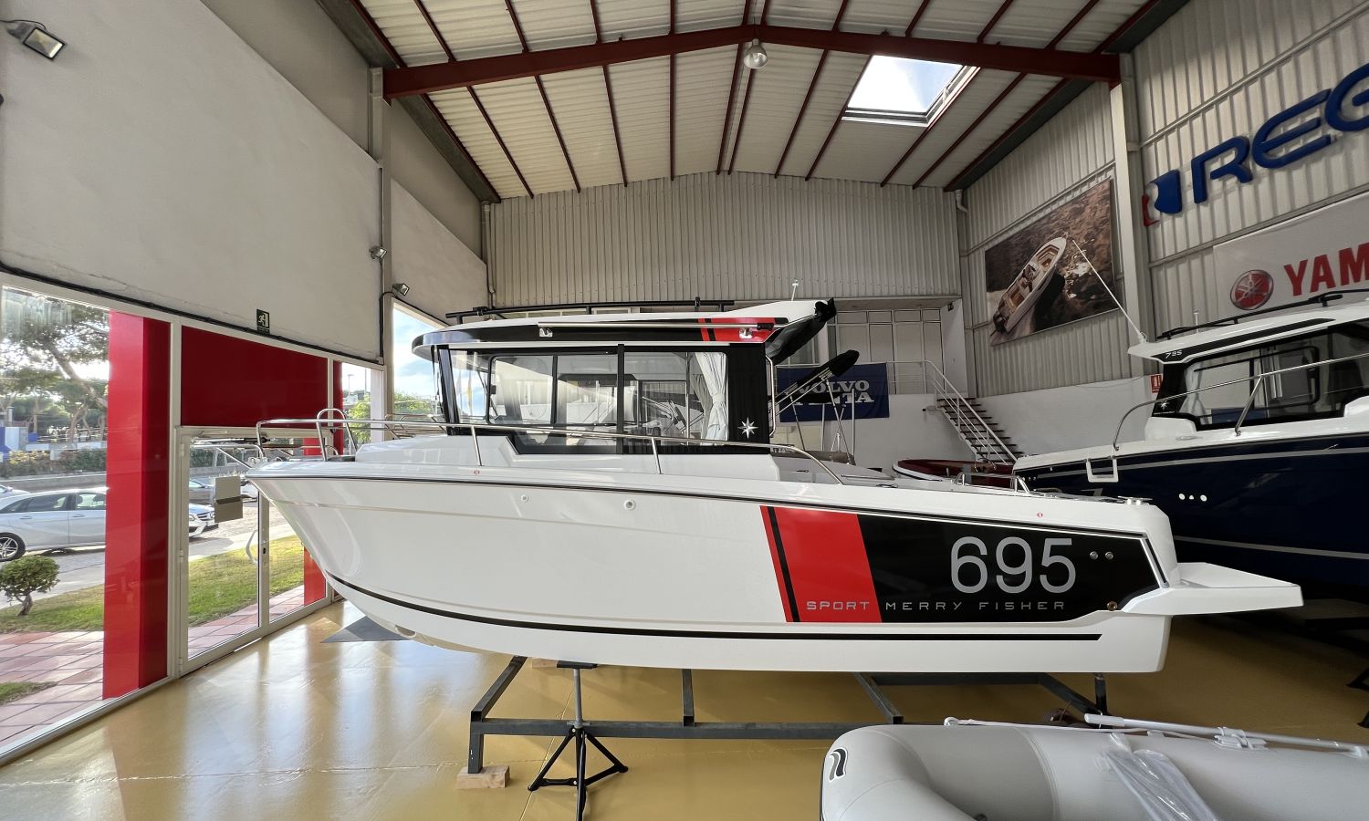 WHEELHOUSE INSIDE CURTAINS, SUPPLEMENT FOR SEPARATE COMPARTMENT WITH DOOR AND PORTHOLE, INTERIOR CUSHIONS FOR 2 DOORS VERSION WITH COMPARTMENT, SLIDING AFT COCKPIT SUNEPROTECTION, ELECTRONIC PACK GARMIN, MERRY FISHER 695 MARLIN 2 DOORS VERSION (STARBOARD & AFT), TRIM LEVEL PREMIERE, BOW THRUSTER, ELECTRICAL WINDLASS, 220V SHORE POWER SOCKET + BATTERY CHARGER PRE-INSTALLATION , CONTROL OF WINDLASS FROM PILOT STATION, 2 WORKLIGHTS IN AFT COCKPIT, COCKPIT SUNDECK COMPLEMENT, BOW LADDER WITH WOODEN PLATFORM, COCKPIT TABLE + AFT BENCH BOX + CUSHION, FRONT COCKPIT CUSHIONS, POLYESTER SWIMMING PLATFORMS, PRESSURED FRESH WATER SYSTEM + TANK + COCKPIT SHOWER, STORAGE RACK ON THE ROOF, FRIDGE 40L, LUXURY FOLDING SIDE BENCH ON STARBOARD SIDE + CUSHION, LUXURY PORTSIDE FOLDING SIDE BENCH + CUSHION, MARINE TOILET + HOLDING TANK, FOLDING SALOON TABLE, OPENING PORTHOLE IN THE CABIN, FISHING KIT, ELECTRONIC PRE-RIGGING YAMAHA, TRANSPORT FROM THE SHIPYARD - COSTA-BRAVA, INSTALLATION MOTOR INCLUDED.