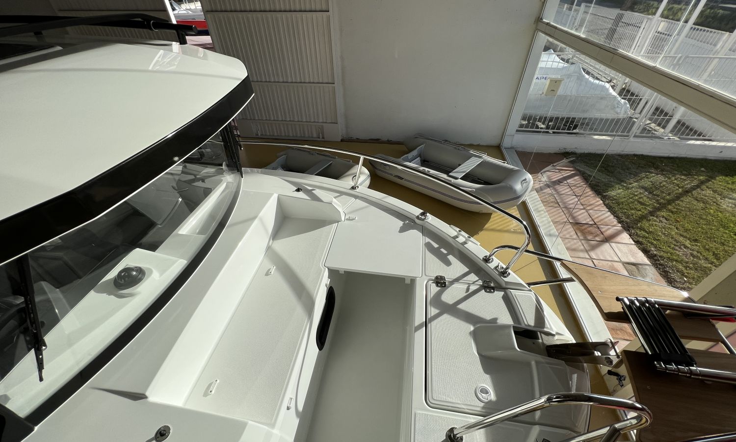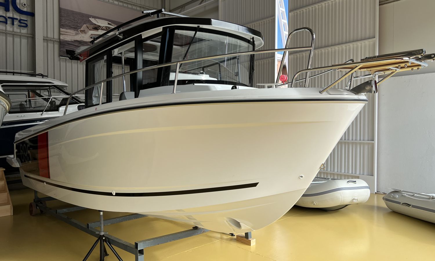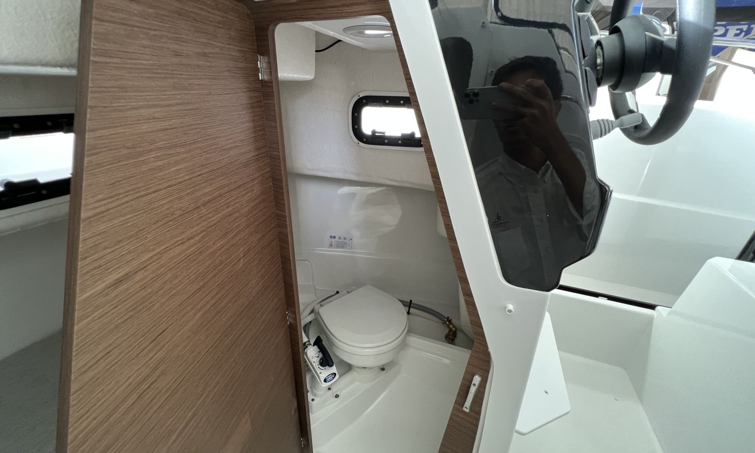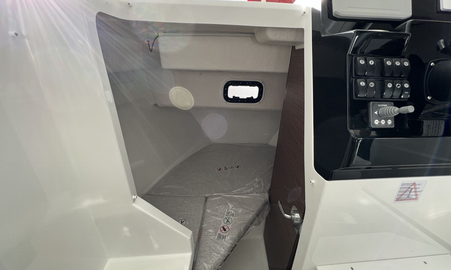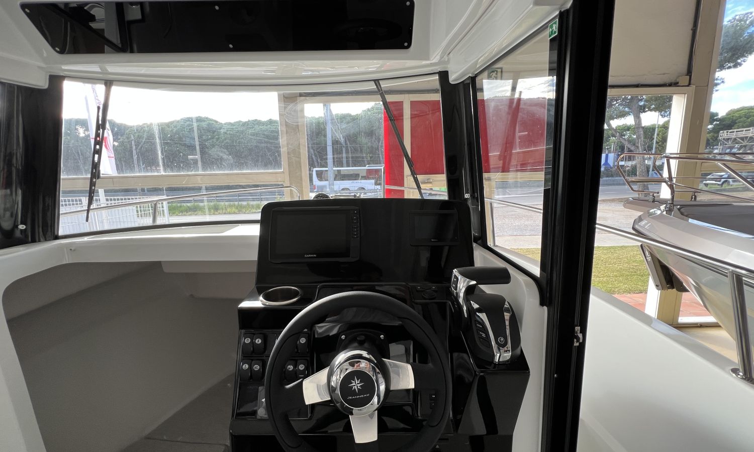 WHEELHOUSE INSIDE CURTAINS, SUPPLEMENT FOR SEPARATE COMPARTMENT WITH DOOR AND PORTHOLE, INTERIOR CUSHIONS FOR 2 DOORS VERSION WITH COMPARTMENT, SLIDING AFT COCKPIT SUNEPROTECTION, ELECTRONIC PACK GARMIN, MERRY FISHER 695 MARLIN 2 DOORS VERSION (STARBOARD & AFT), TRIM LEVEL PREMIERE, BOW THRUSTER, ELECTRICAL WINDLASS, 220V SHORE POWER SOCKET + BATTERY CHARGER PRE-INSTALLATION , CONTROL OF WINDLASS FROM PILOT STATION, 2 WORKLIGHTS IN AFT COCKPIT, COCKPIT SUNDECK COMPLEMENT, BOW LADDER WITH WOODEN PLATFORM, COCKPIT TABLE + AFT BENCH BOX + CUSHION, FRONT COCKPIT CUSHIONS, POLYESTER SWIMMING PLATFORMS, PRESSURED FRESH WATER SYSTEM + TANK + COCKPIT SHOWER, STORAGE RACK ON THE ROOF, FRIDGE 40L, LUXURY FOLDING SIDE BENCH ON STARBOARD SIDE + CUSHION, LUXURY PORTSIDE FOLDING SIDE BENCH + CUSHION, MARINE TOILET + HOLDING TANK, FOLDING SALOON TABLE, OPENING PORTHOLE IN THE CABIN, FISHING KIT, ELECTRONIC PRE-RIGGING YAMAHA, TRANSPORT FROM THE SHIPYARD - COSTA-BRAVA, INSTALLATION MOTOR INCLUDED.